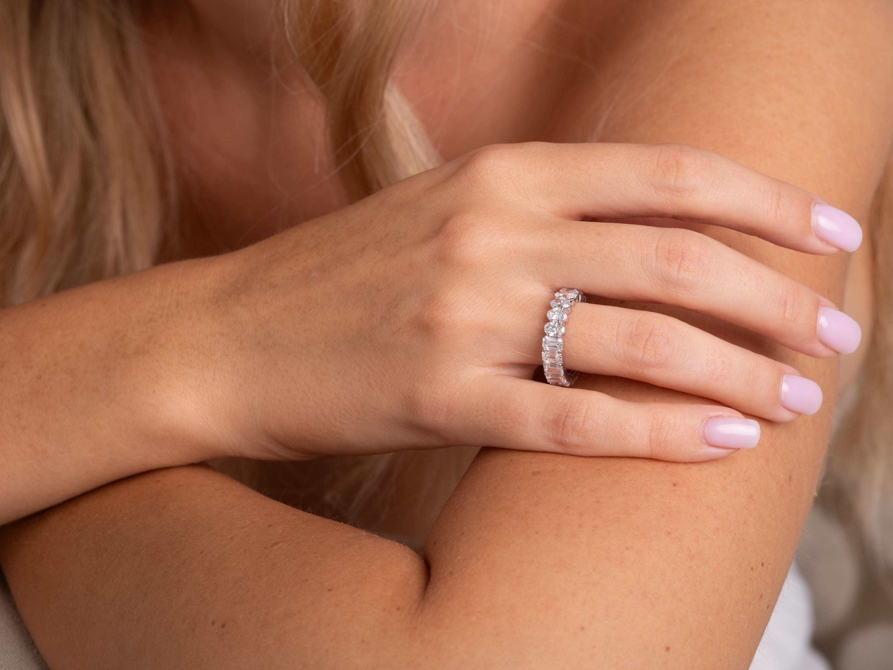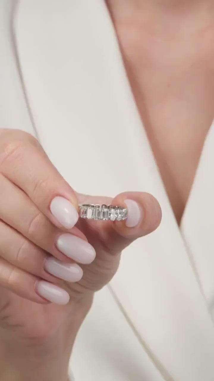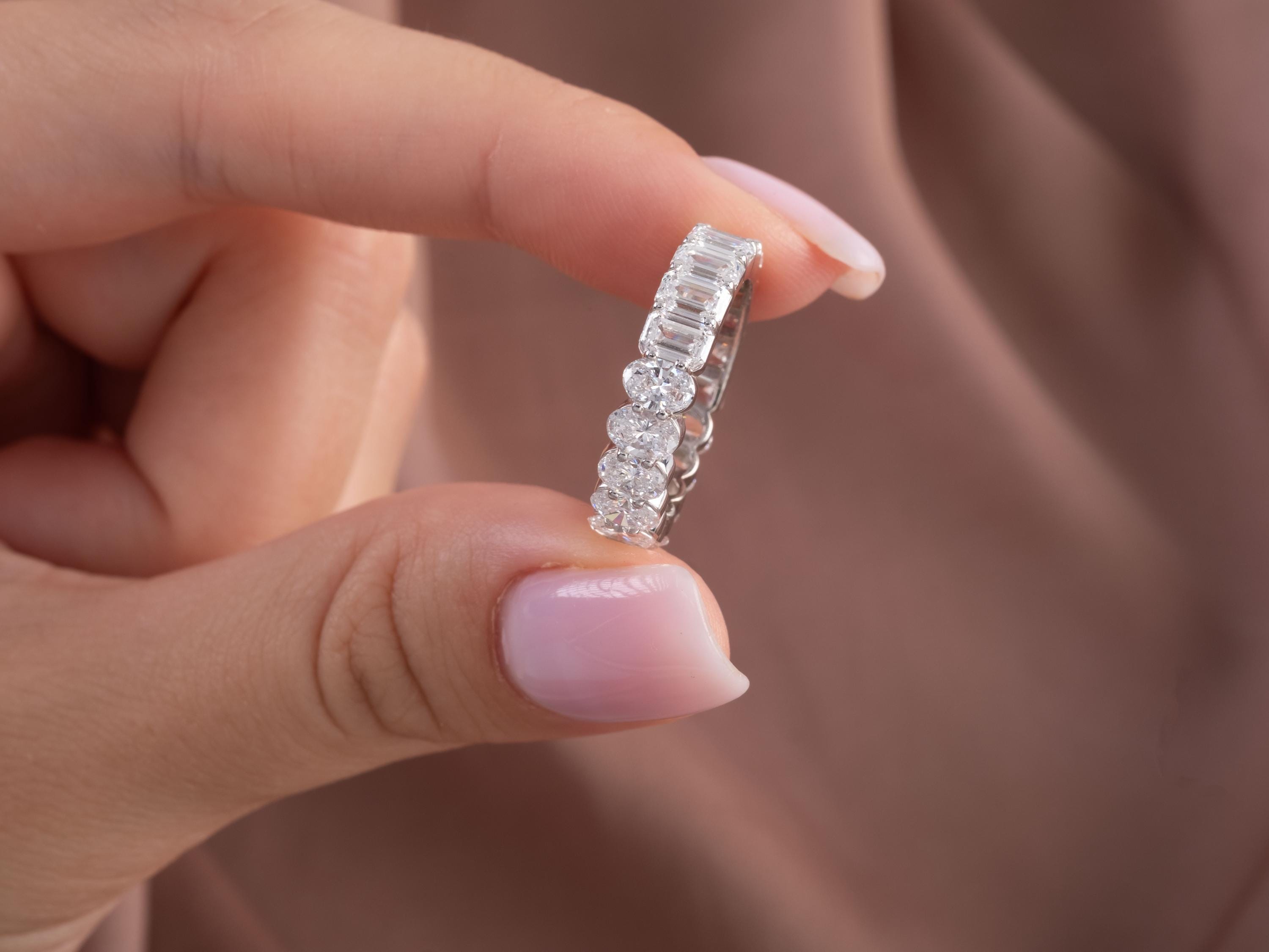 This half oval and half emerald cut 5 cts diamond band is a stunning expression of your distinctive style and the deep, one-of-a-kind connection between you.