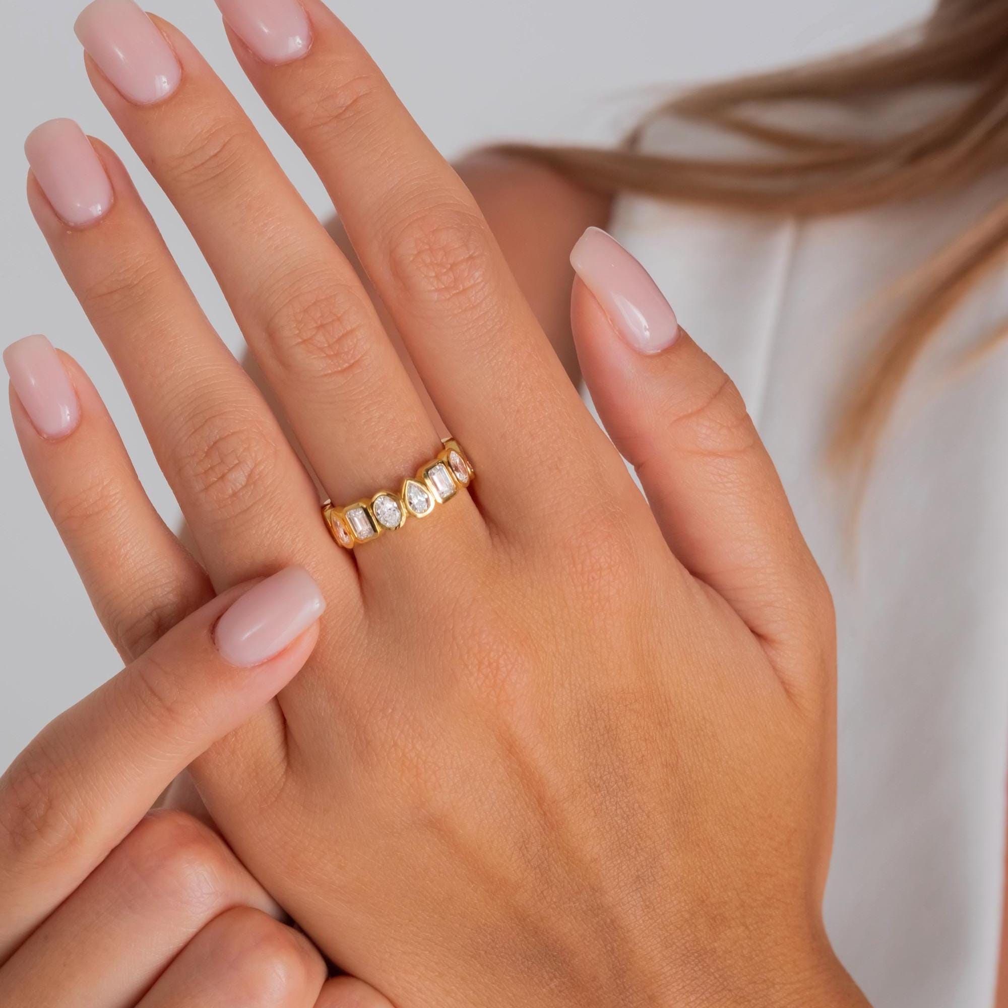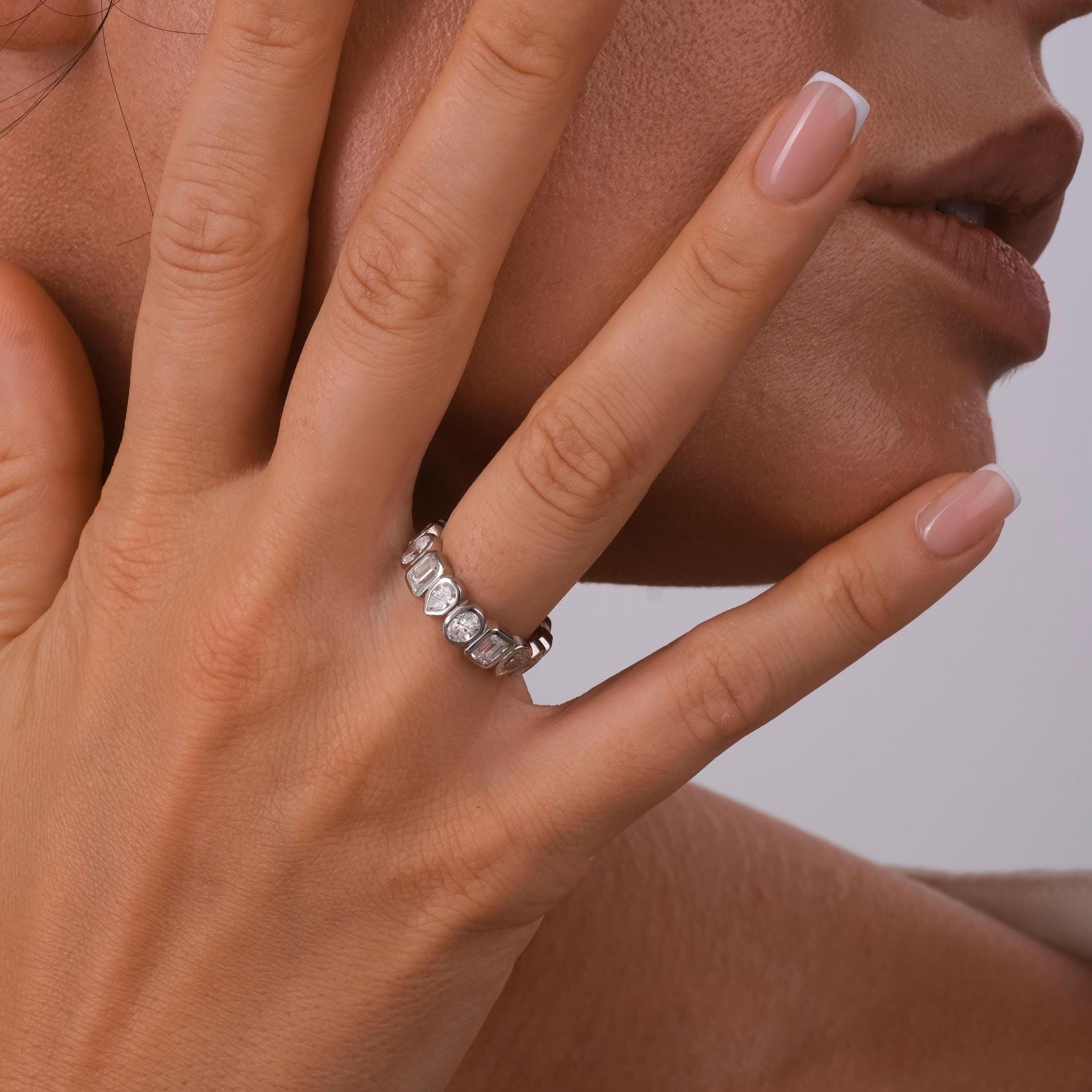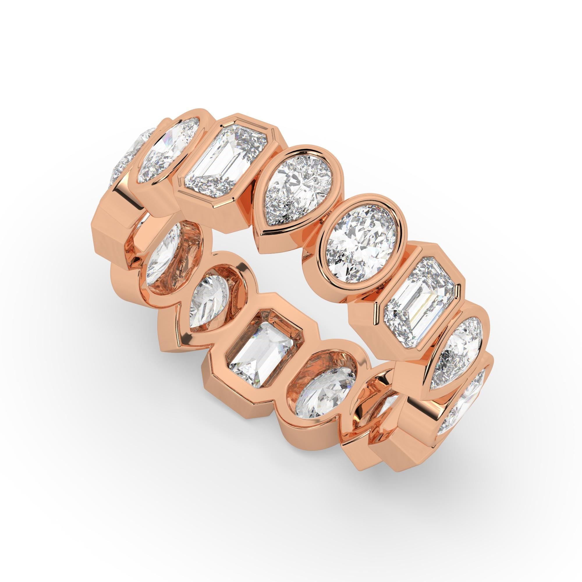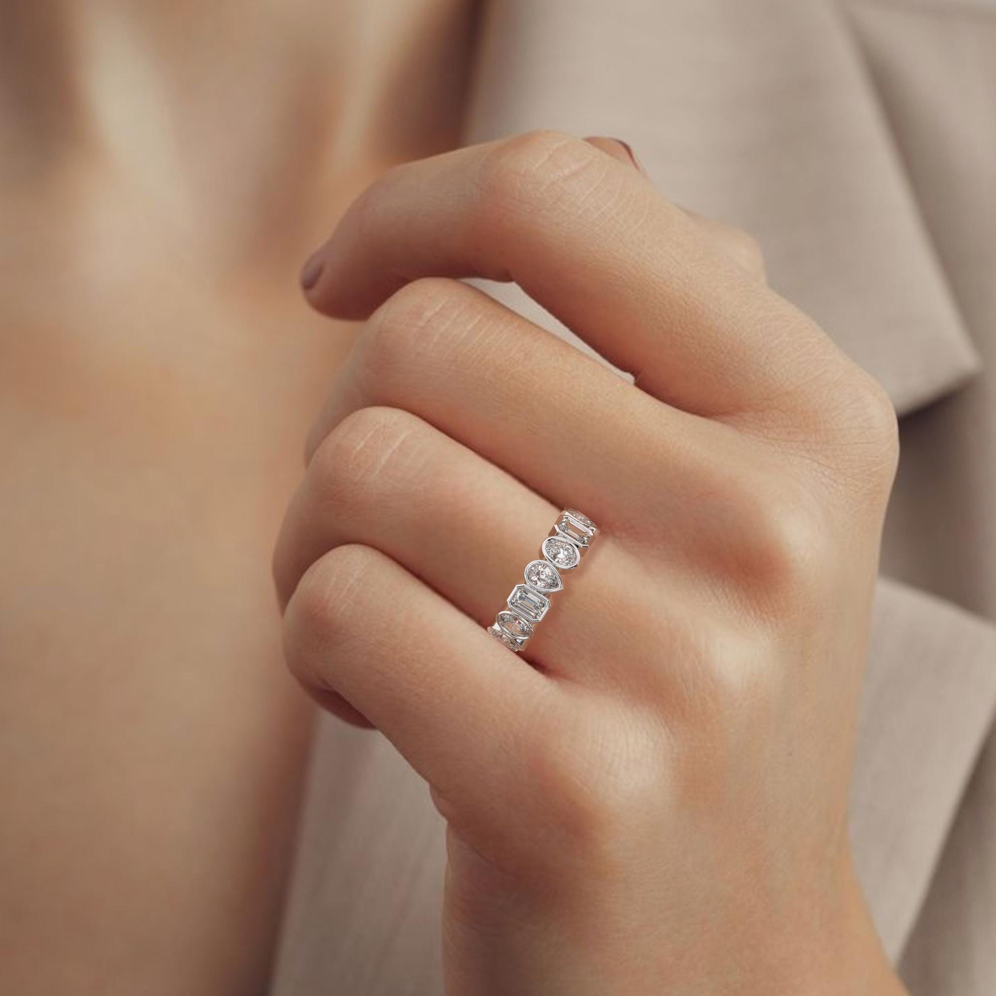 Alternating Bezel Set Emerald, Oval, Pear Shape Diamond Eternity Wedding Band / 3.3 CT Diamond Eternity Ring / Natural & Lab Diamond options