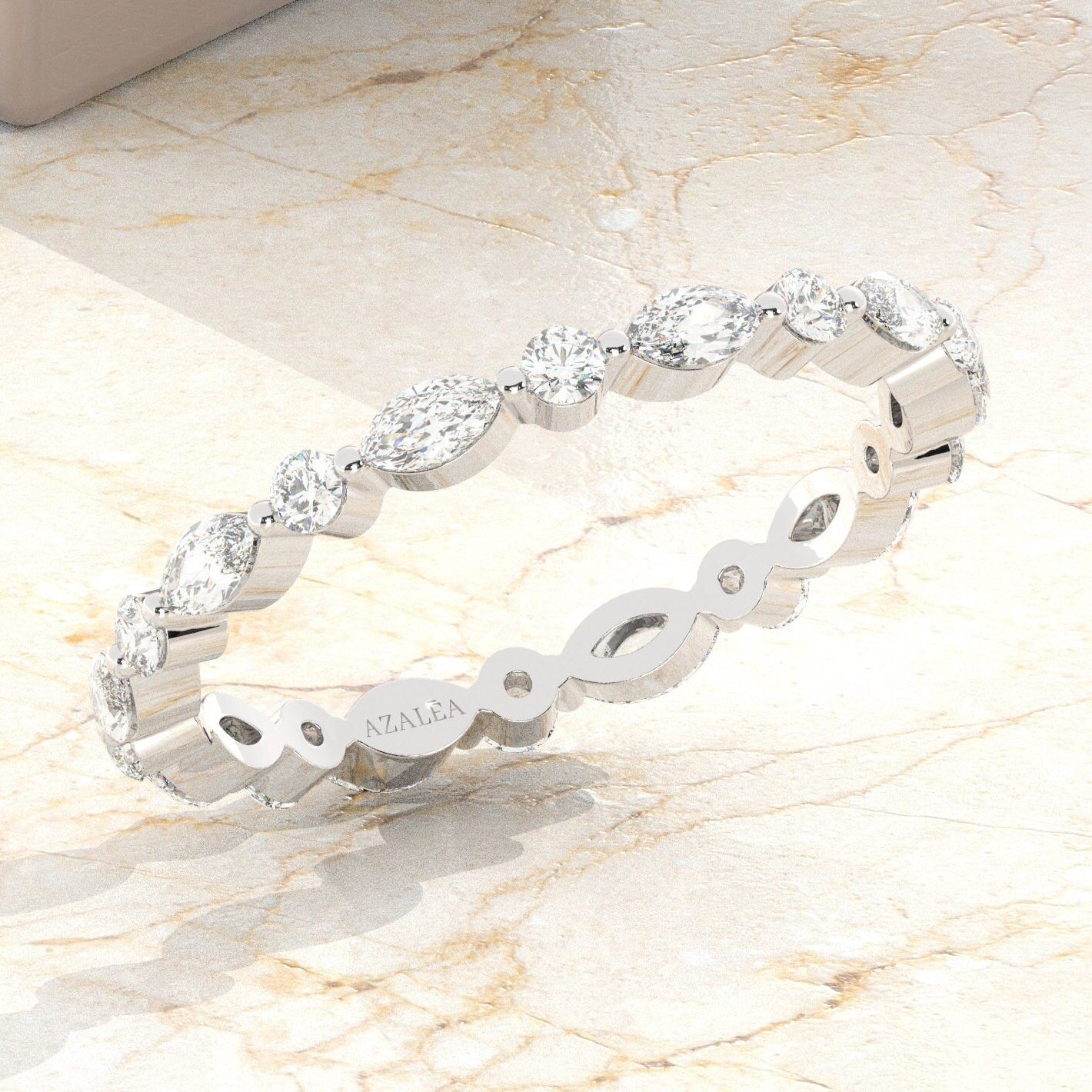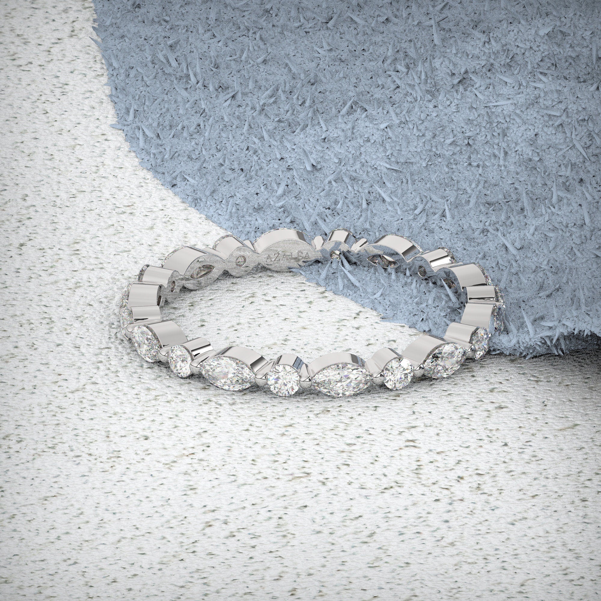 Alternating Diamond Eternity Wedding Band / 14k Marquise and Round Diamond Eternity Wedding Ring / Stacking Ring / Diamond Bridal Gift Ideas