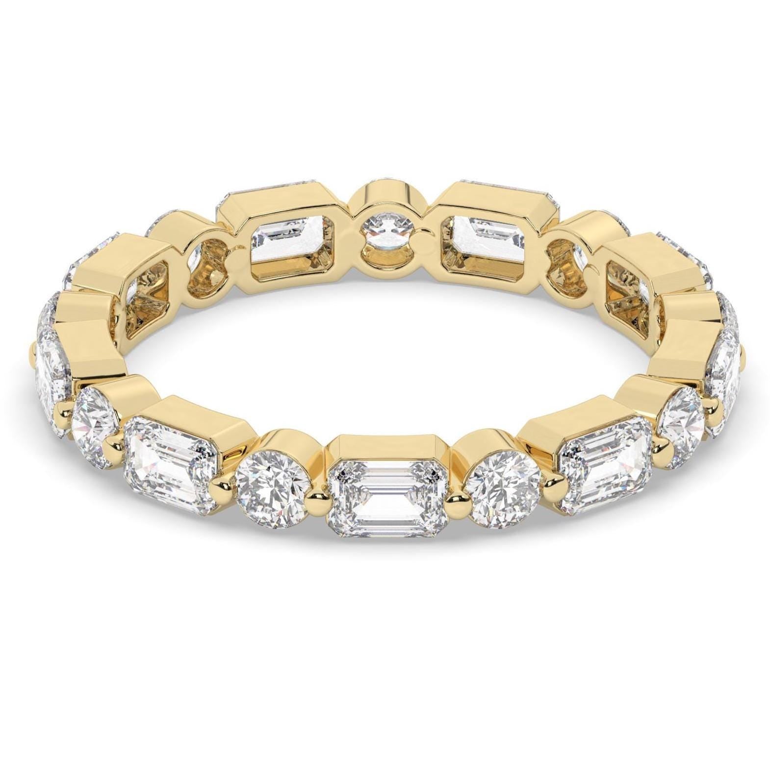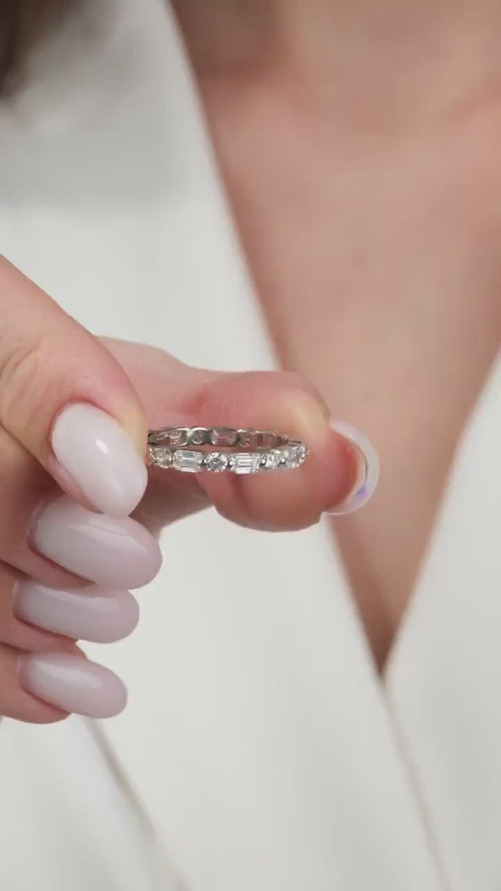 This alternating emerald cut and round diamond band is a stunning expression of your distinctive style and the deep, one-of-a-kind connection between you.