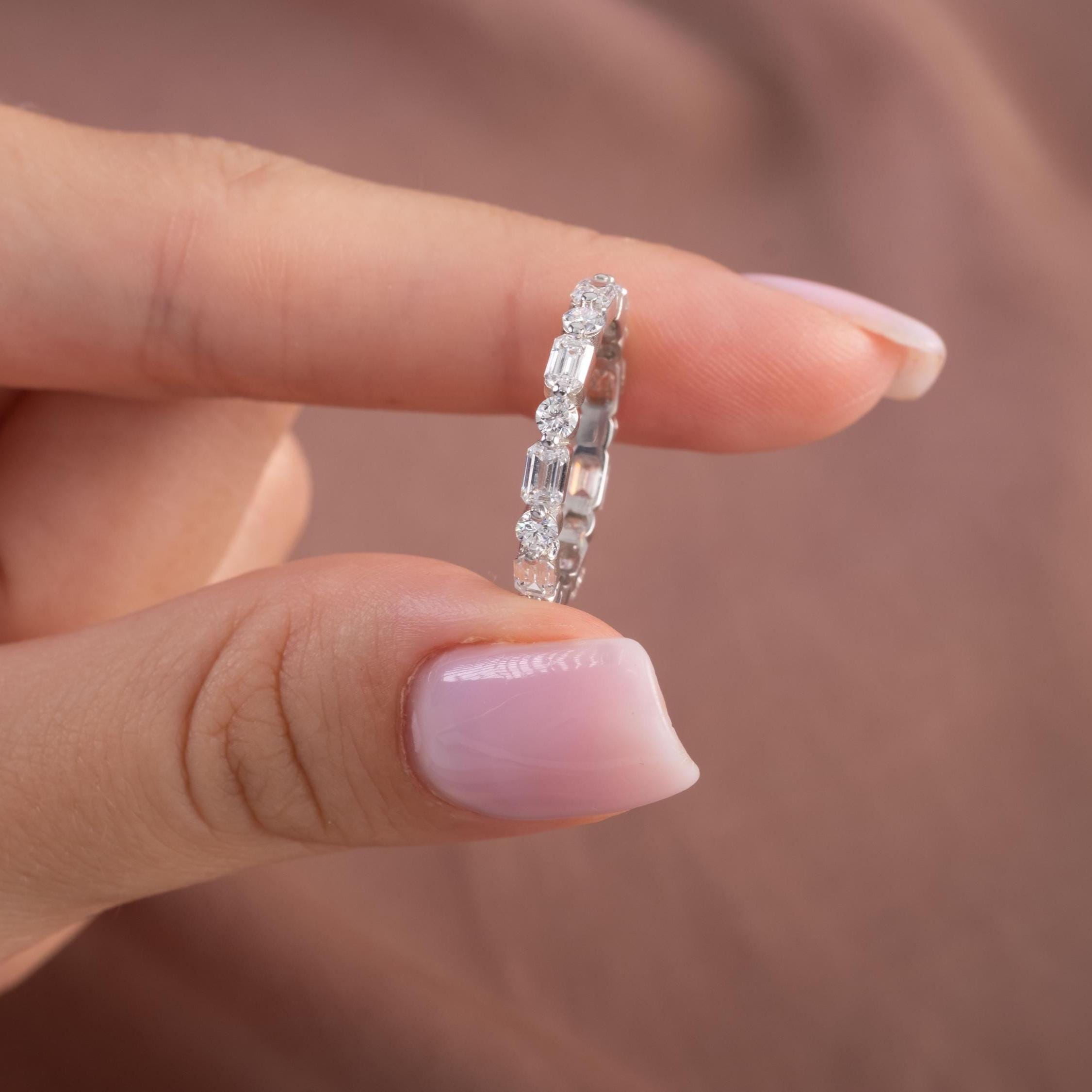 Alternating Emerald and Round Diamond Wedding Band / 1.9 CT Eternity Ring / Anniversary Ring / Natural & Lab Diamond Options