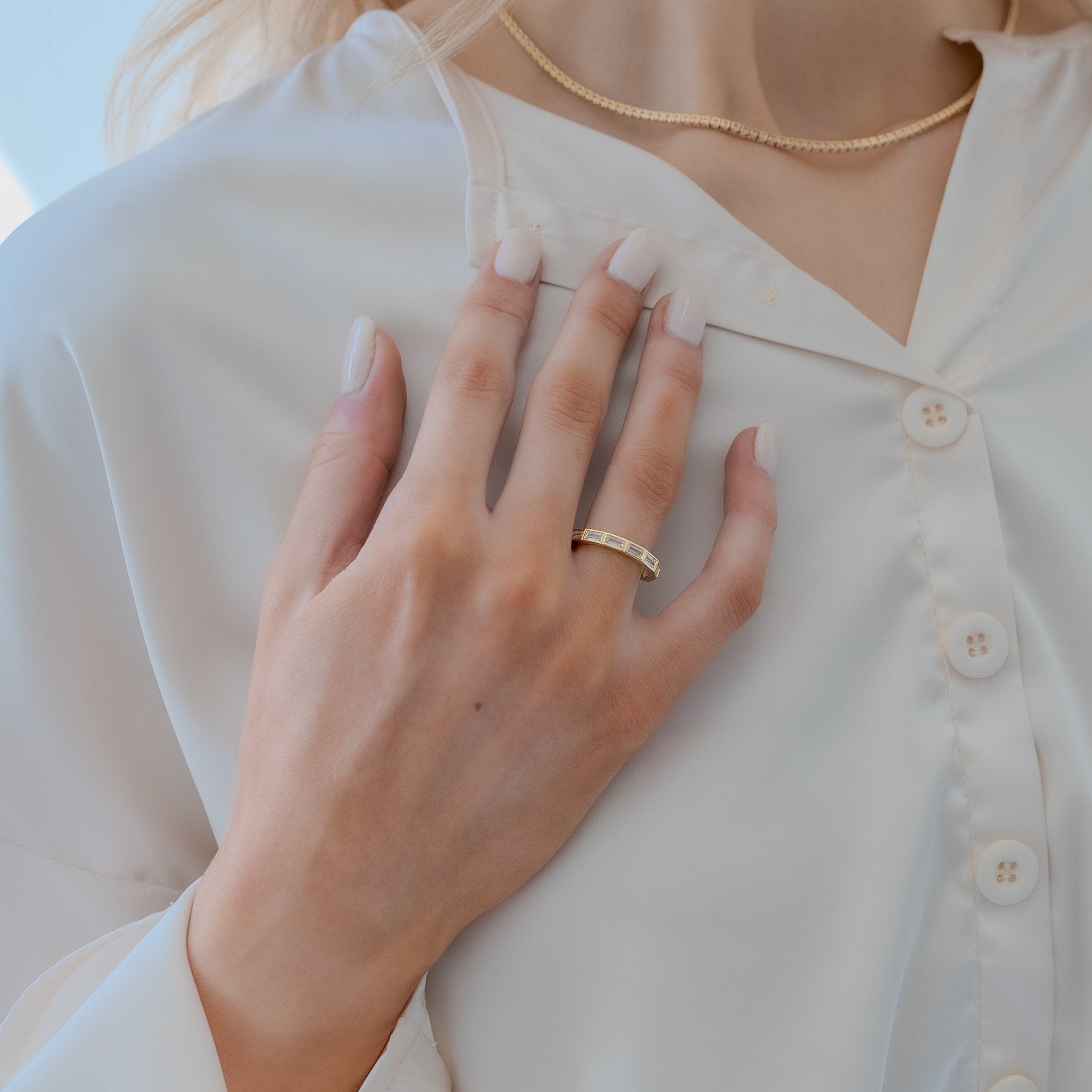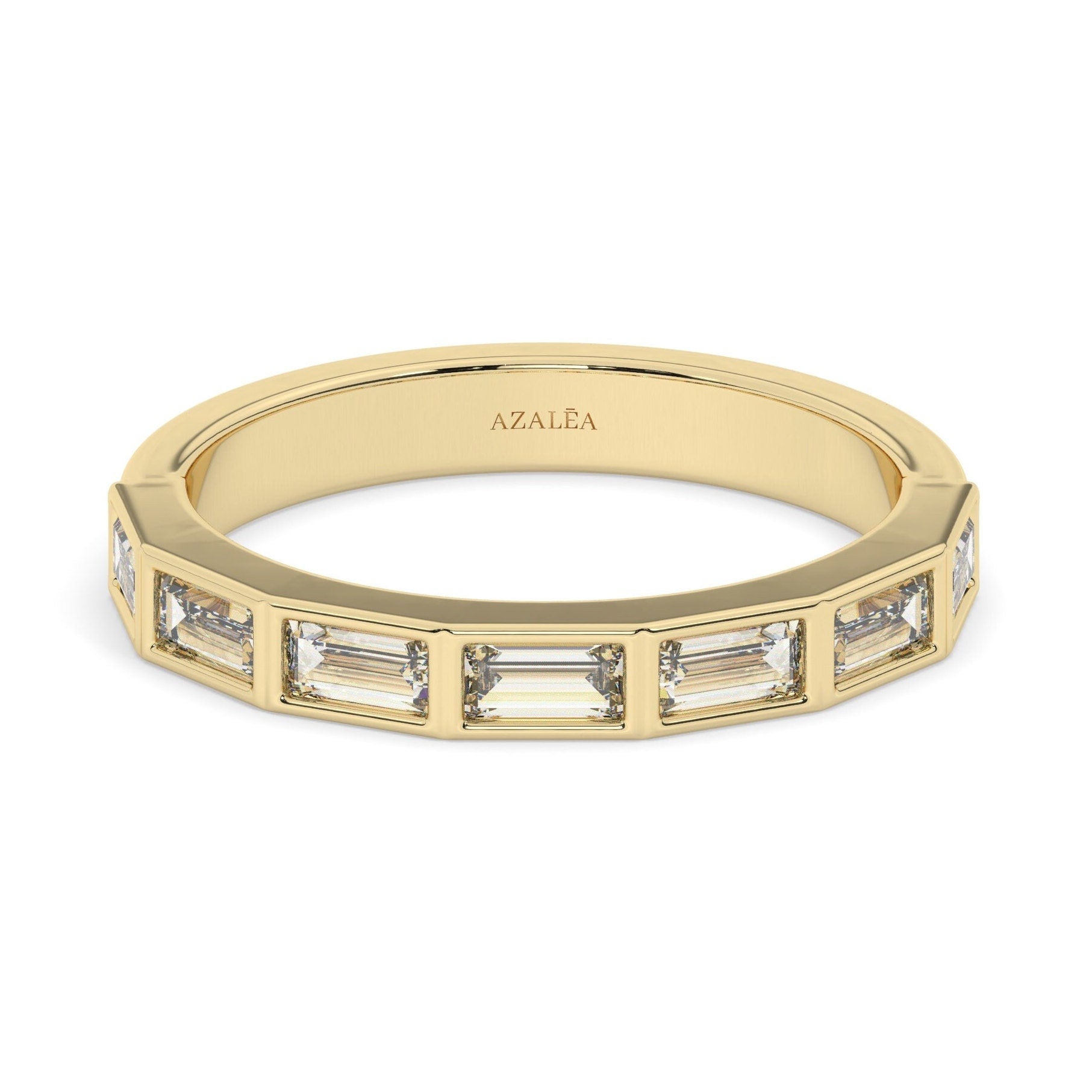 Baguette Diamond Wedding Band: 14k Gold Half Eternity Ring