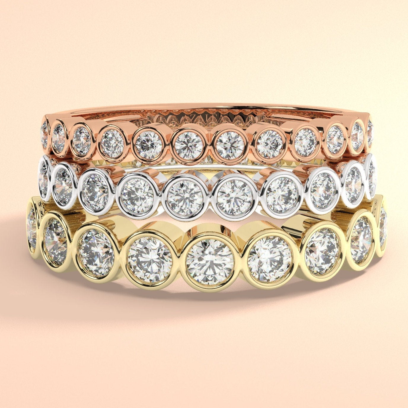 Bezel Set Diamond Wedding Band / 0.25 - 1 CT Bezel Set Halfwaty Eternity Wedding Ring / Diamond Anniversary Ring / Wedding Gift