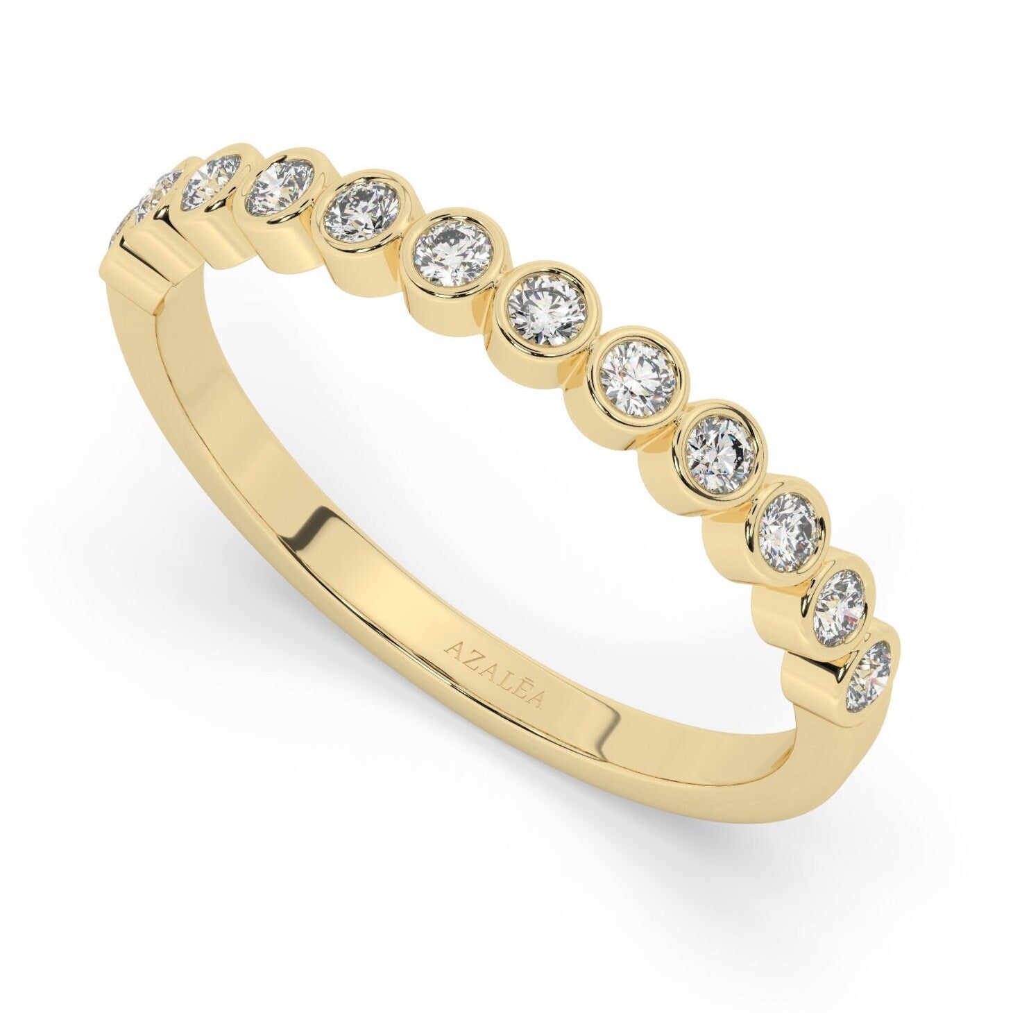 Crafted with both style and comfort in mind, this bezel set halfway eternity ring features a low-profile bezel setting that ensures a snug and comfortable fit for everyday wear. Its durability is built to last for generations.