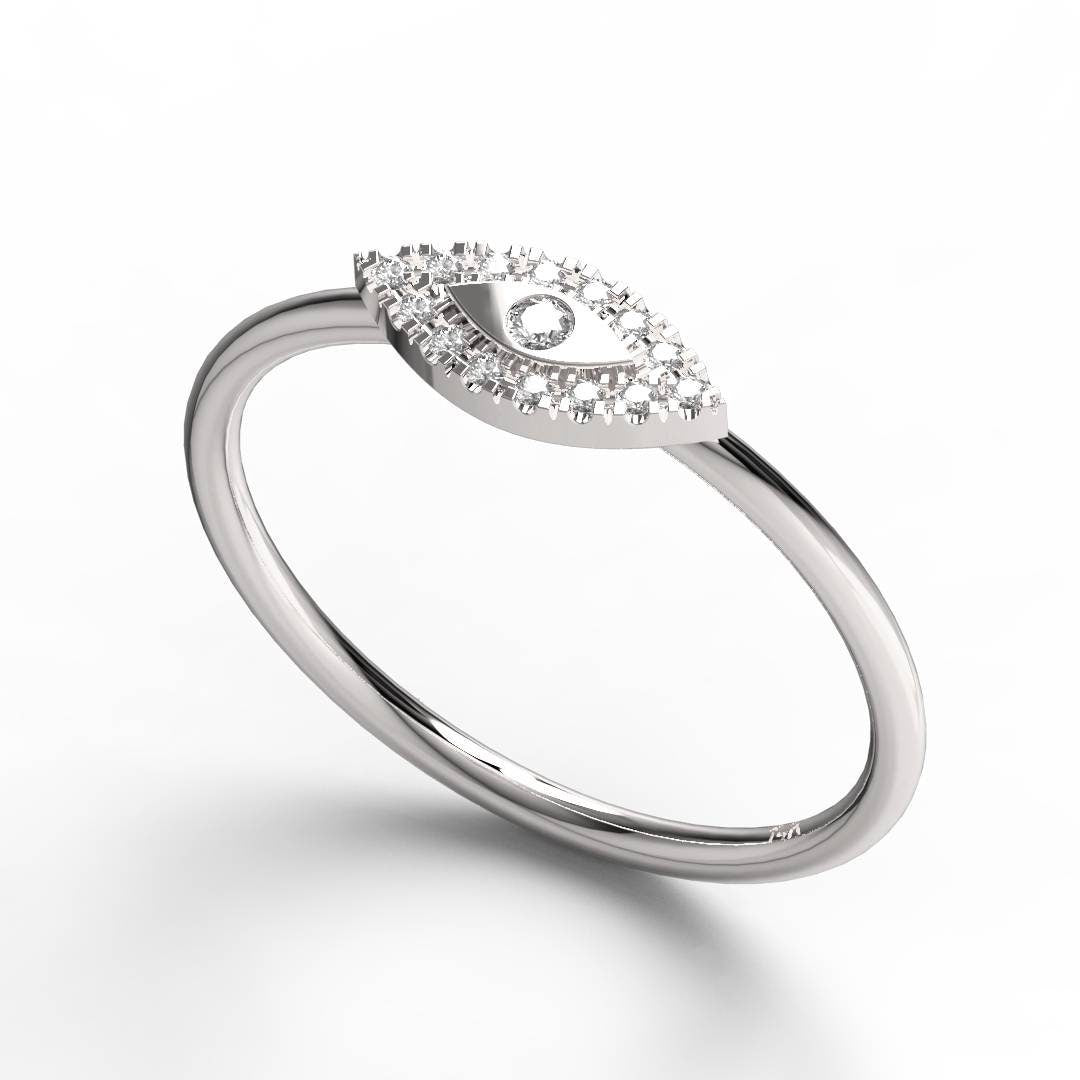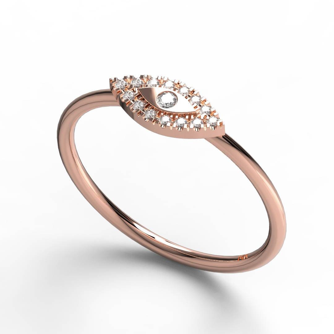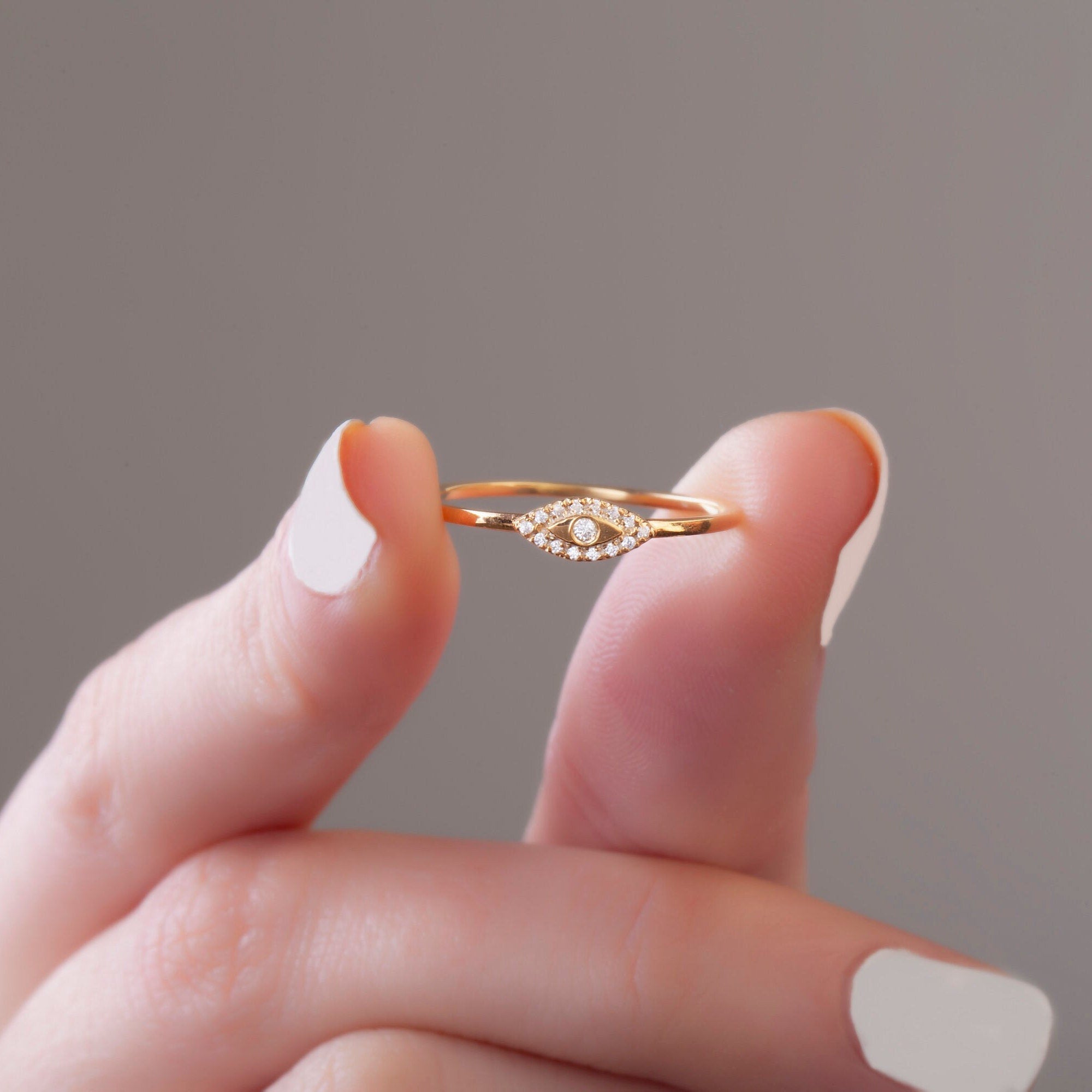 Diamond Evil Eye Stacking Ring / 14k Gold Diamond Evil Eye Stacking Ring / Diamond Protection Ring / Graduation Gift / Evil Eye Gift Ideas