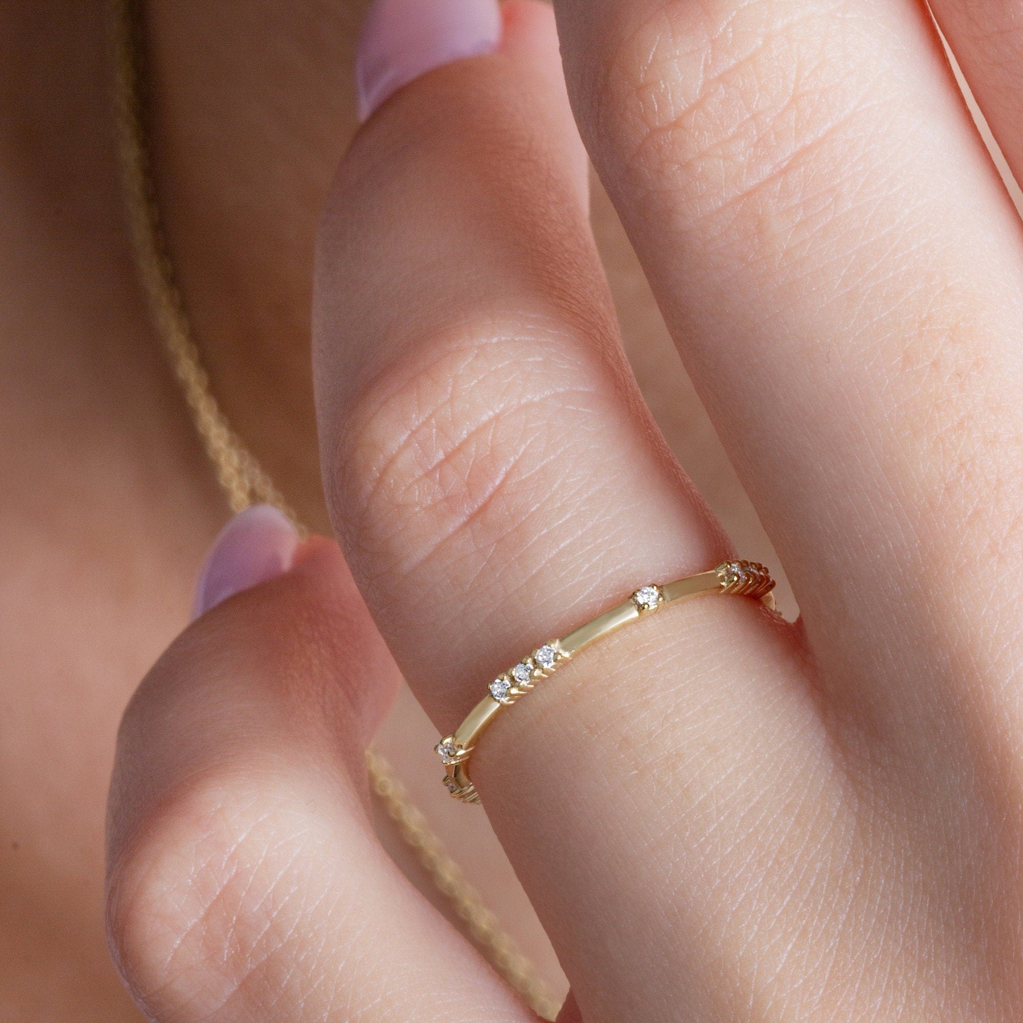 Diamond Stacking Ring / 14k Gold Round Diamond Eternity Band / Round Diamond Stacking Ring / Dainty Stacking Ring / Anniversary Gift