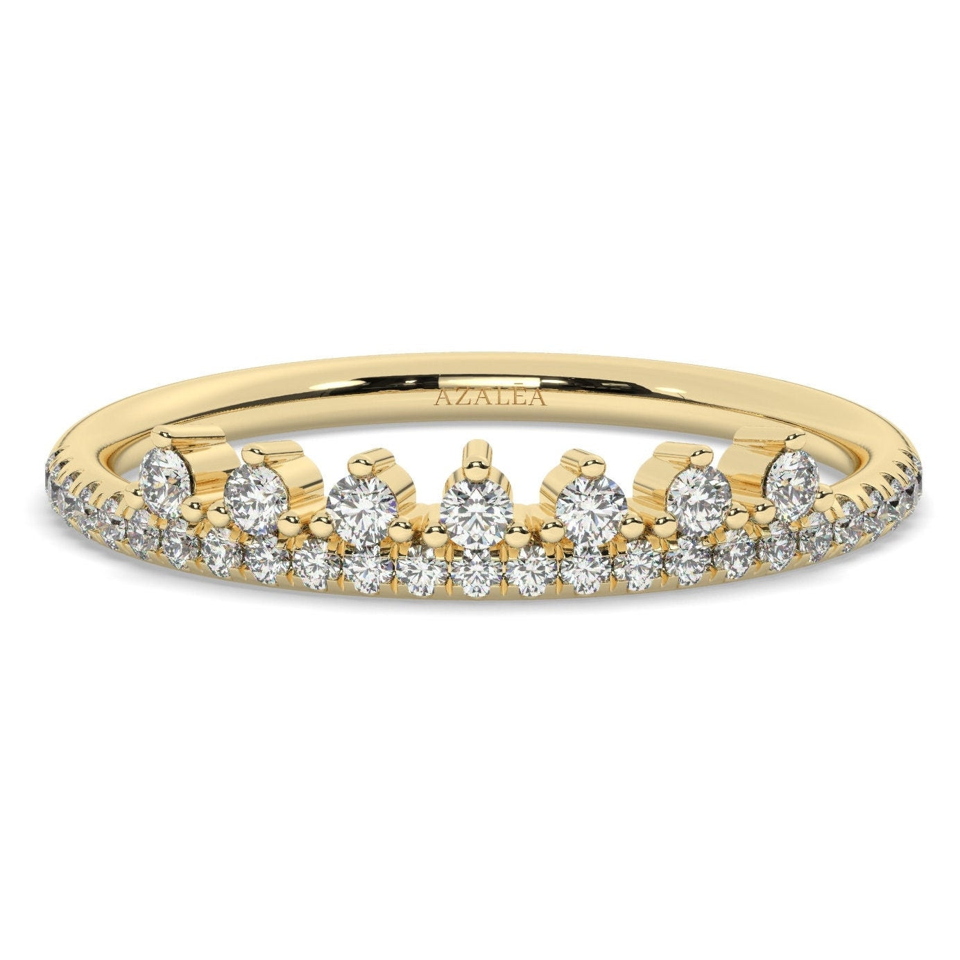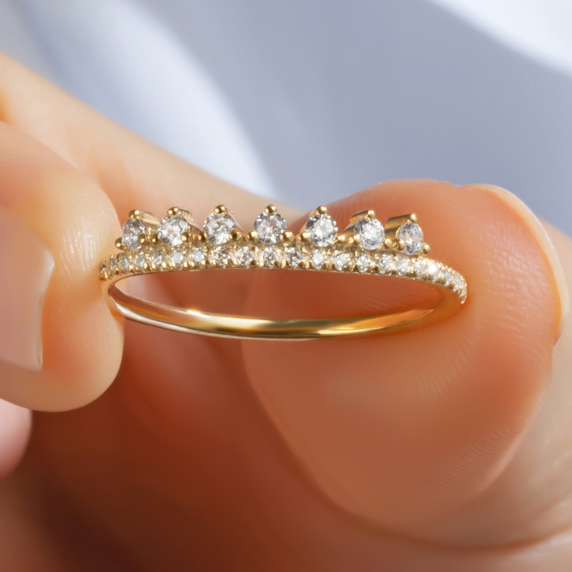 Diamond Wedding Band / 14k Gold Crown Shape Diamond Ring / Stackable Ring / Anniversary Gift / Birthday Gift / Graduation Gift / Bridal Gift