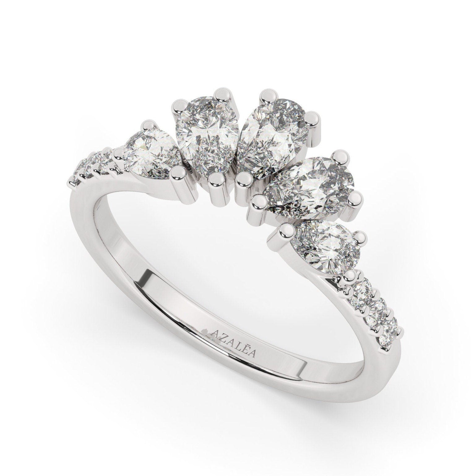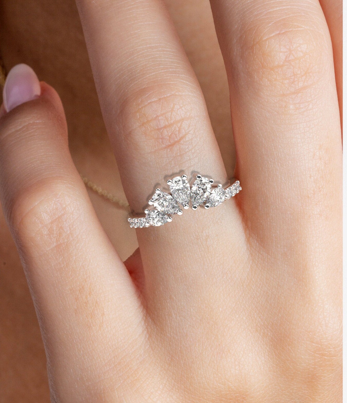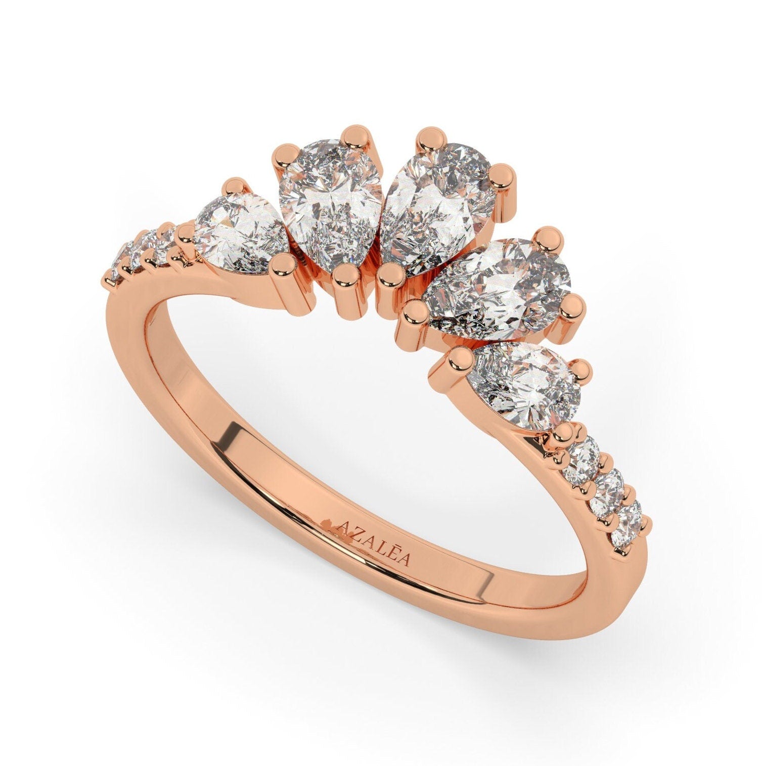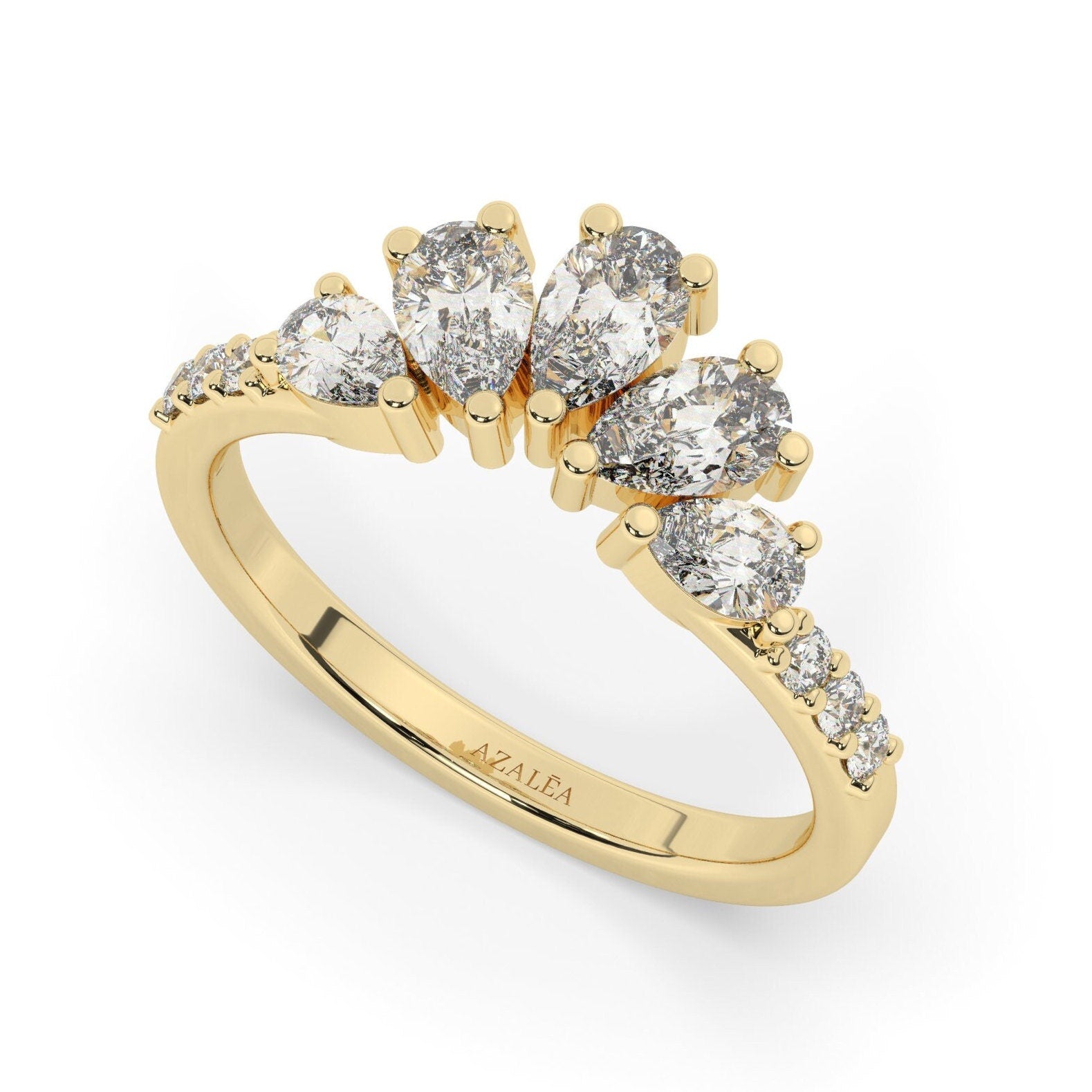 Elegant 14k Pear Diamond Wedding Band / Anniversary Bridal Birthday Gift / Engagement, Promise, Statement Ring / Natural& Lab Diamond Option