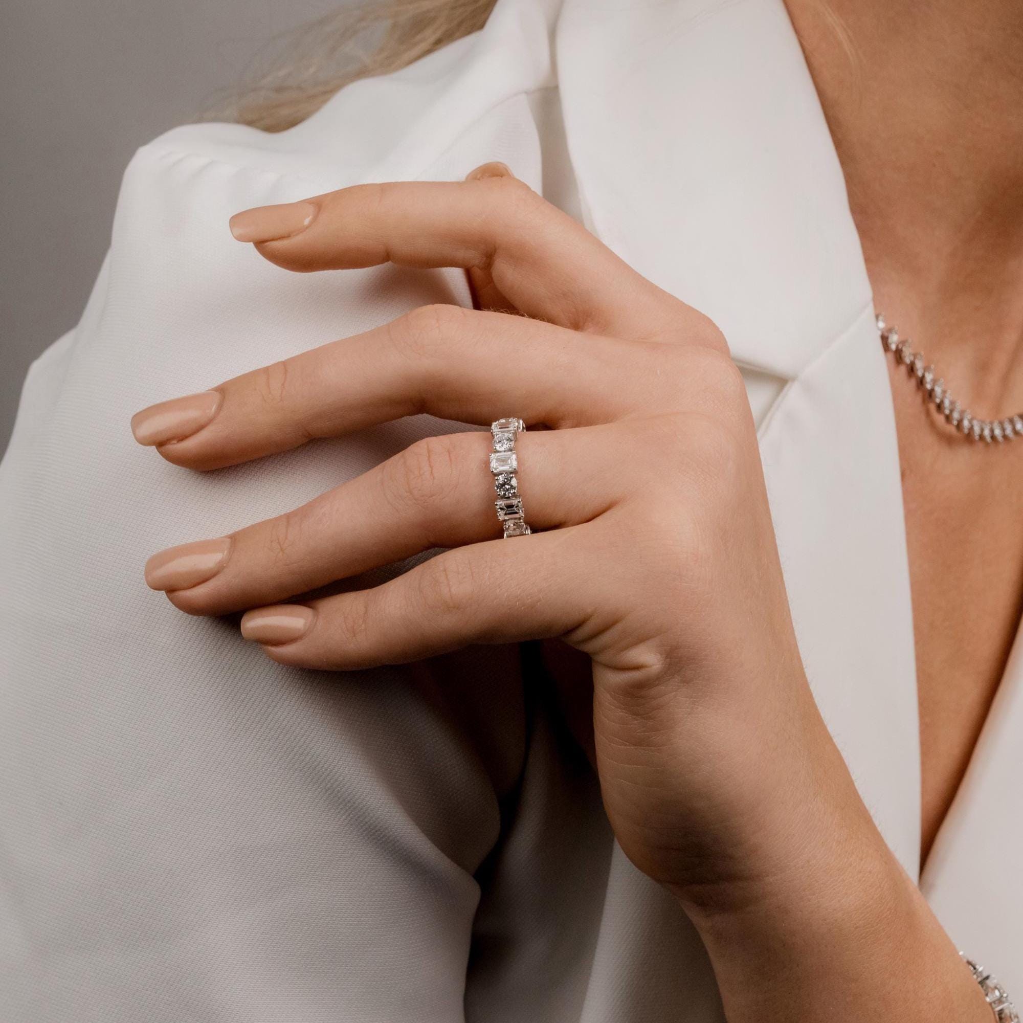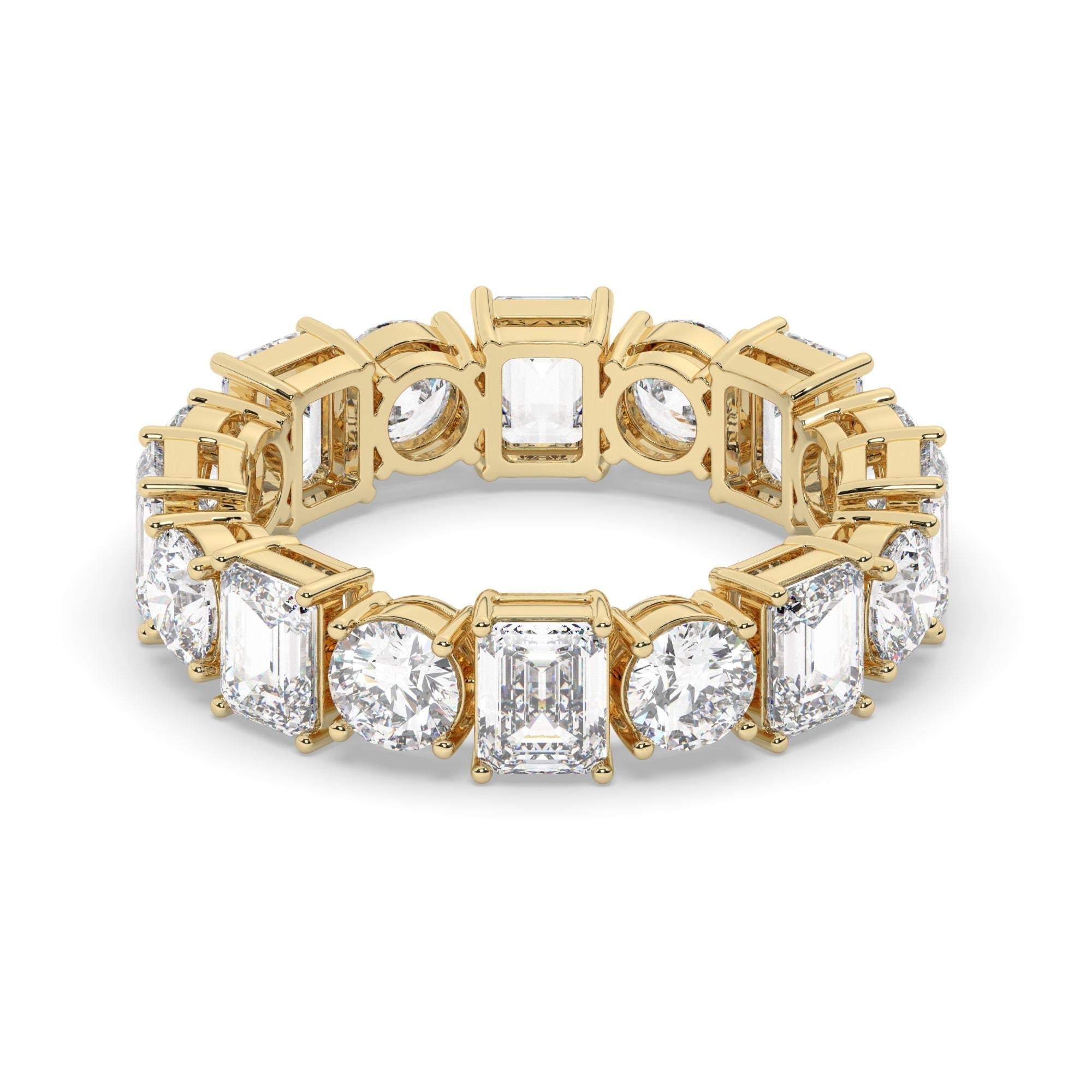 Indulge in the brilliance of our Emerald and Round Cut Diamond Full Eternity Wedding Band. With a stunning 2.8 ct prong-set design, this exquisite ring features a continuous row of emerald-cut diamonds, creating a breathtaking display of elegance