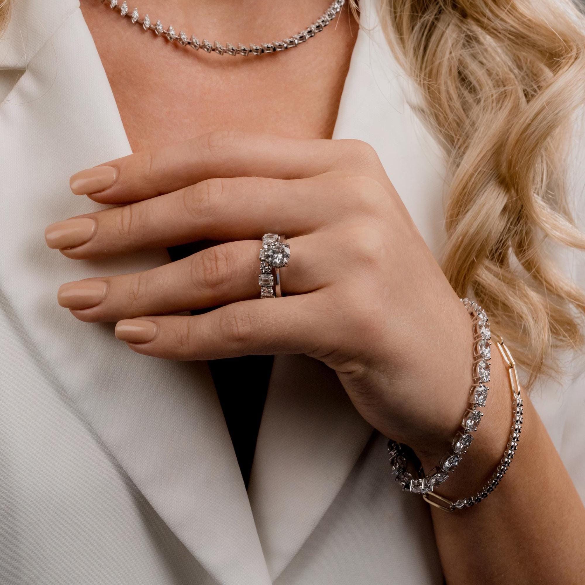 Alternatively, choose from our options of sustainable lab-grown diamonds or dazzling moissanites at three different price points to fit your unique preferences and budget.