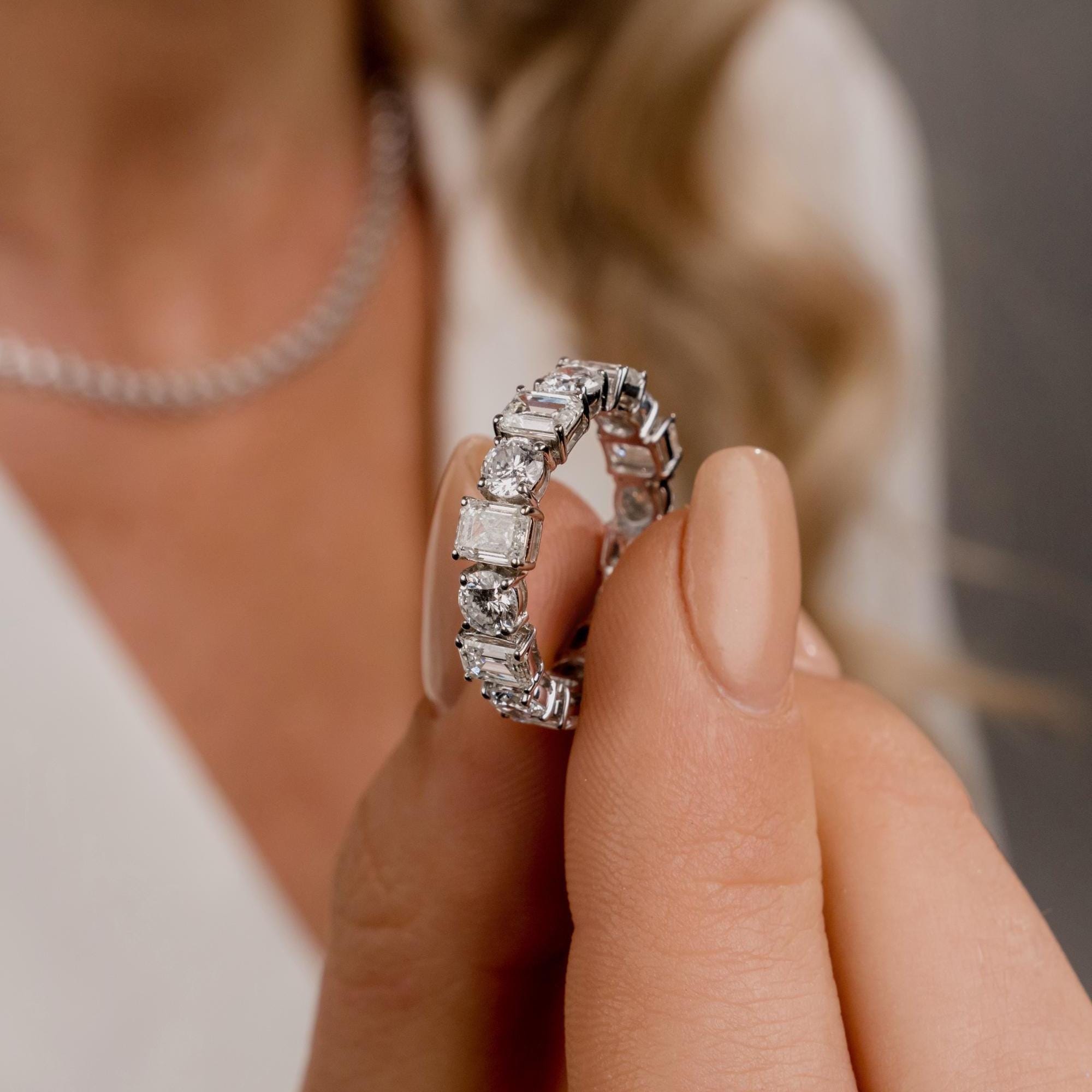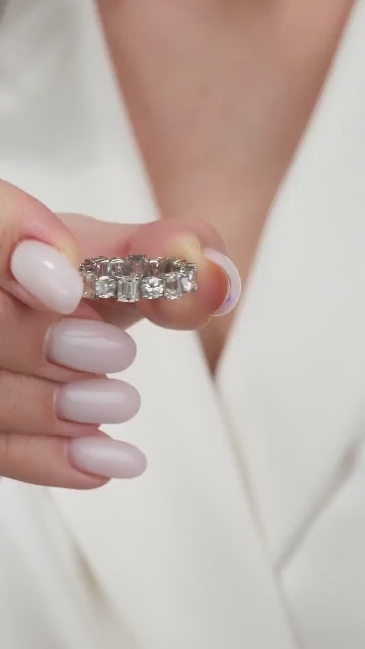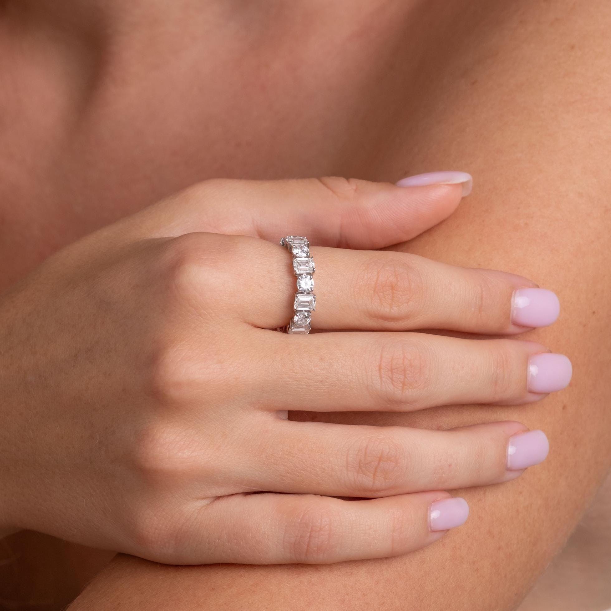 Emerald and Round Cut Diamond Full Eternity Wedding Band / 2.8 CTS Ct Prong Set Emerald Cut Eternity Ring / Diamond Wedding Ring
