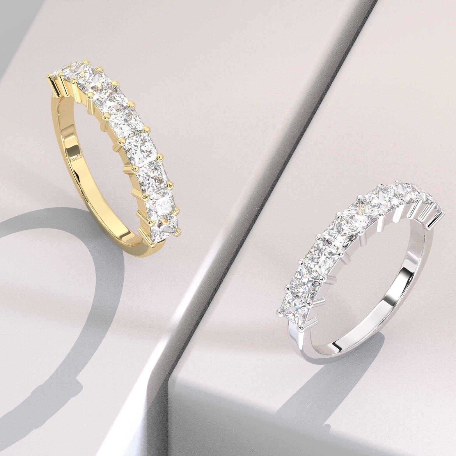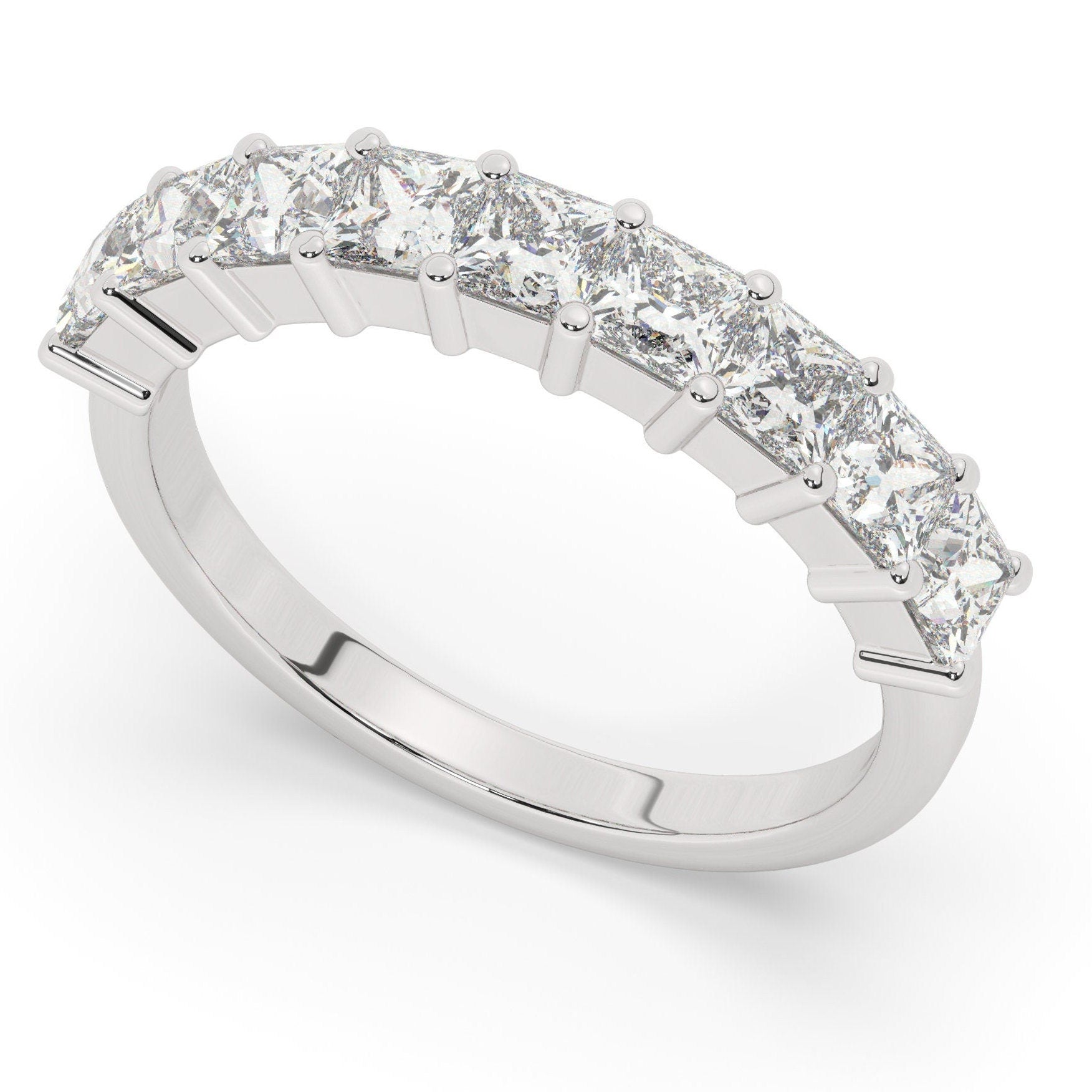 Princess Cut Diamond Wedding Band: 1.35 CT Half Eternity Ring