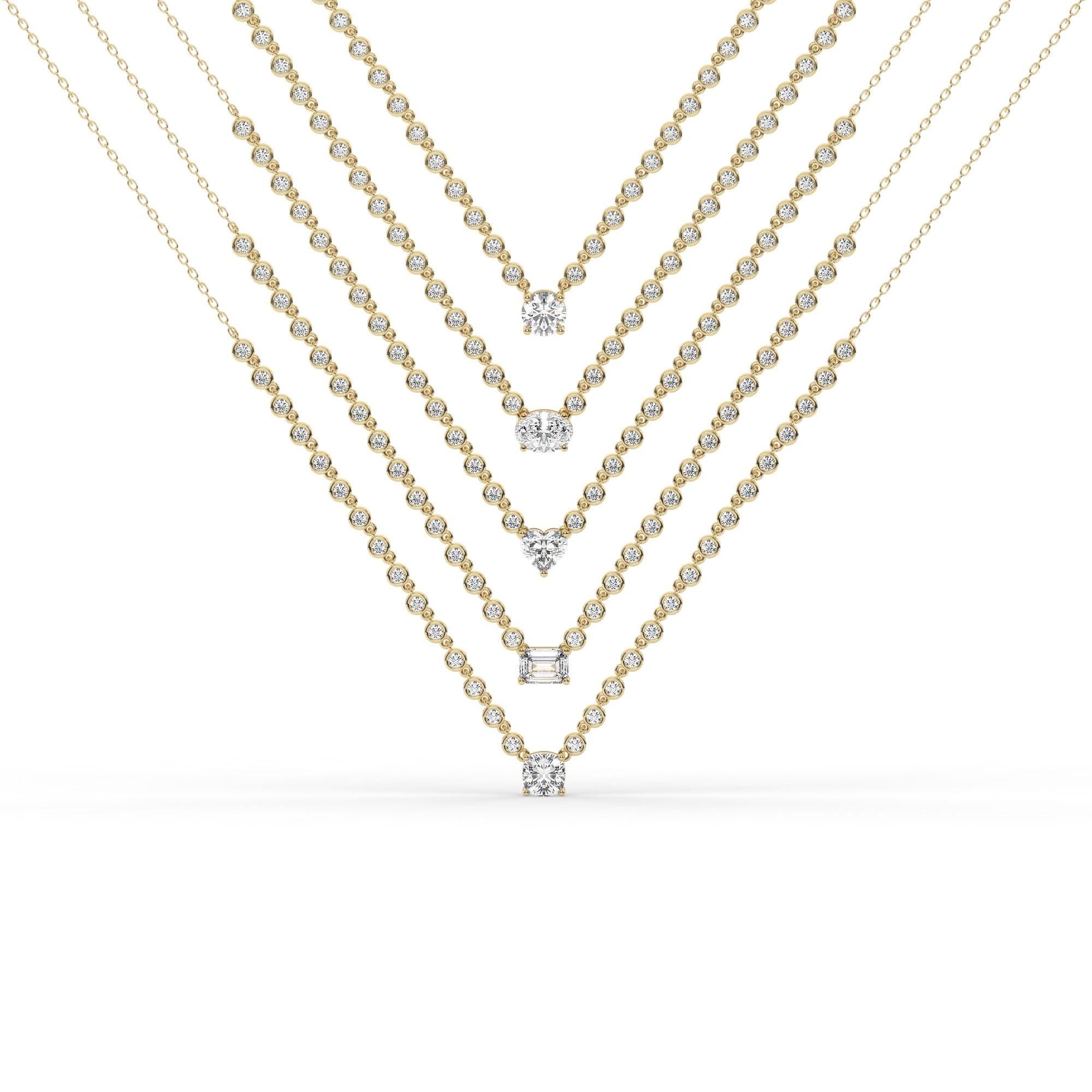 1.1 CT Diamond Station Segment Necklace / Oval, Round, Heart, Cushion and Emerald cut Center Stone Options Diamond On Chain Prong Set