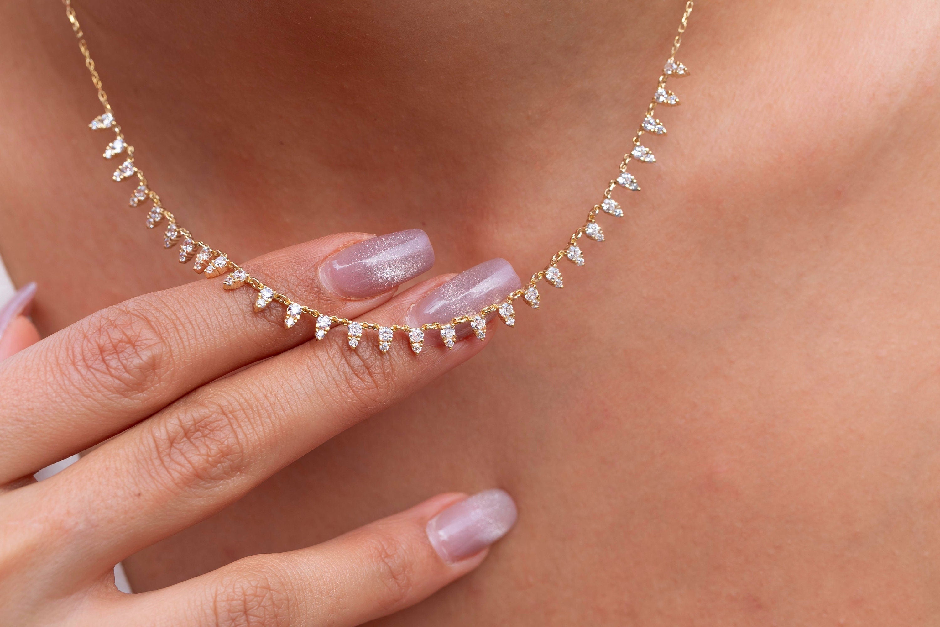 14k Gold Diamond Spike Necklace: Minimalist Statement Choker