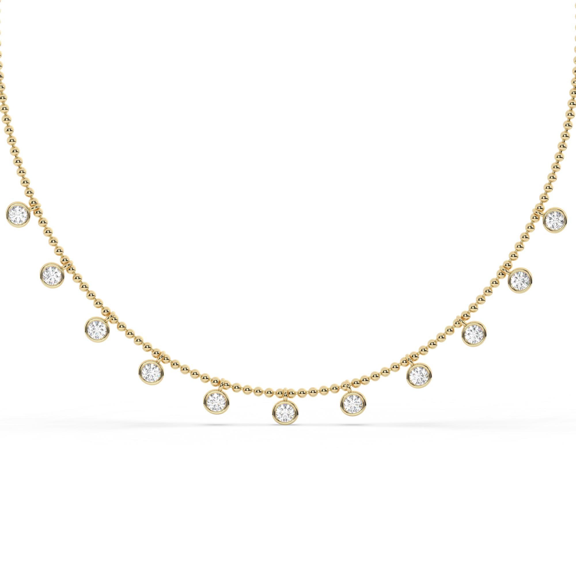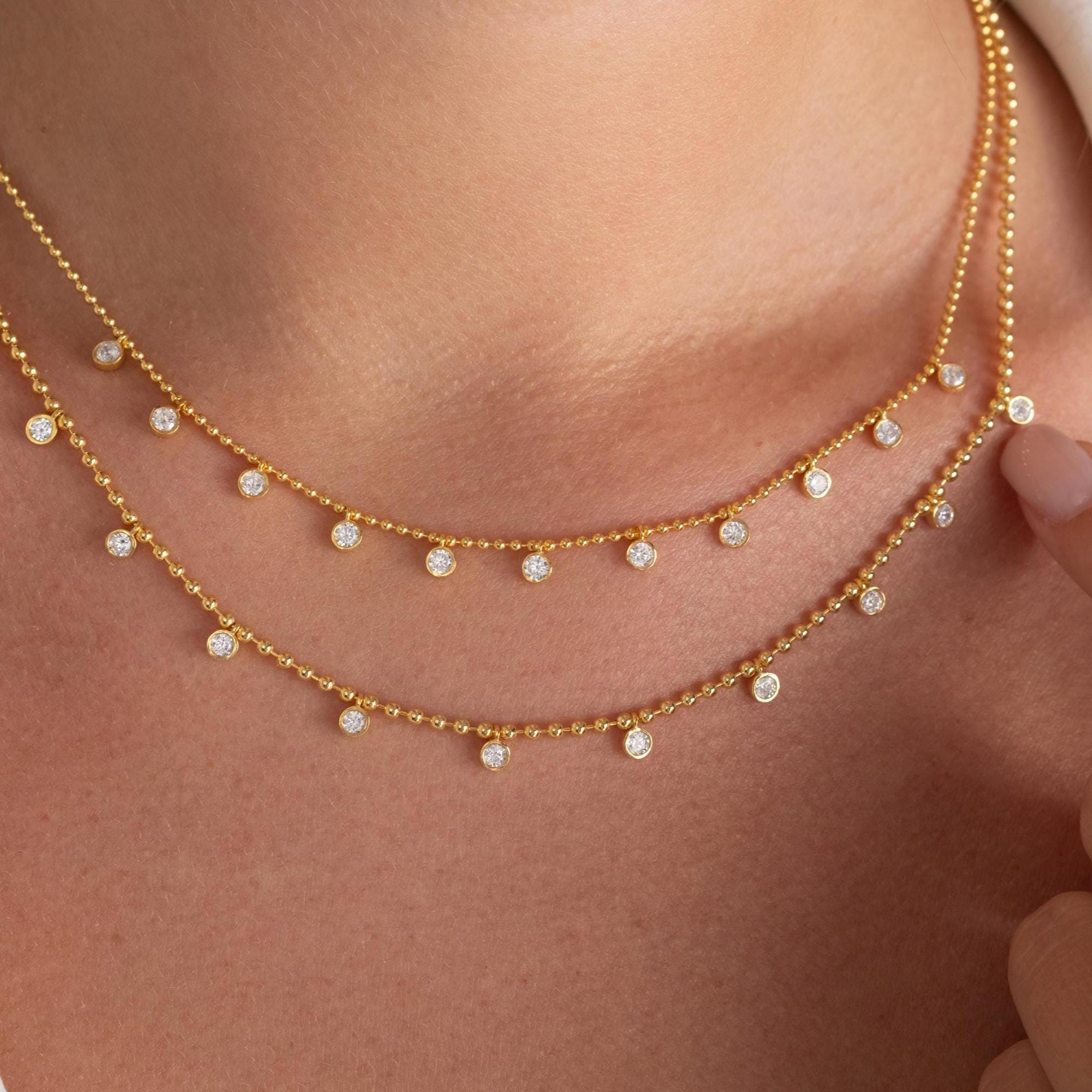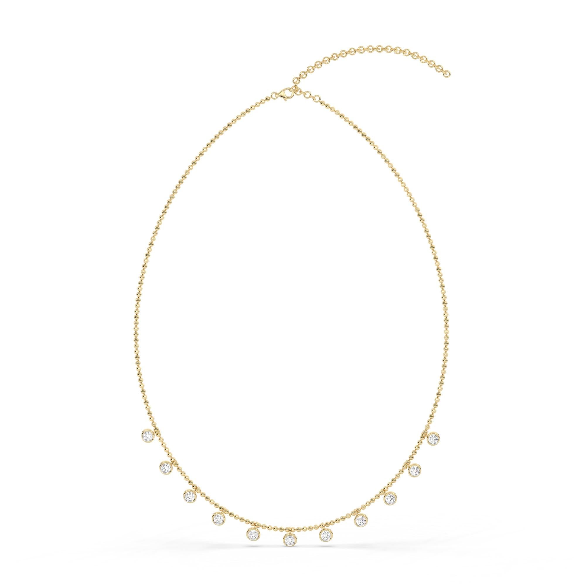 14k Gold Diamond Station Necklace: Bezel Set Ball Chain