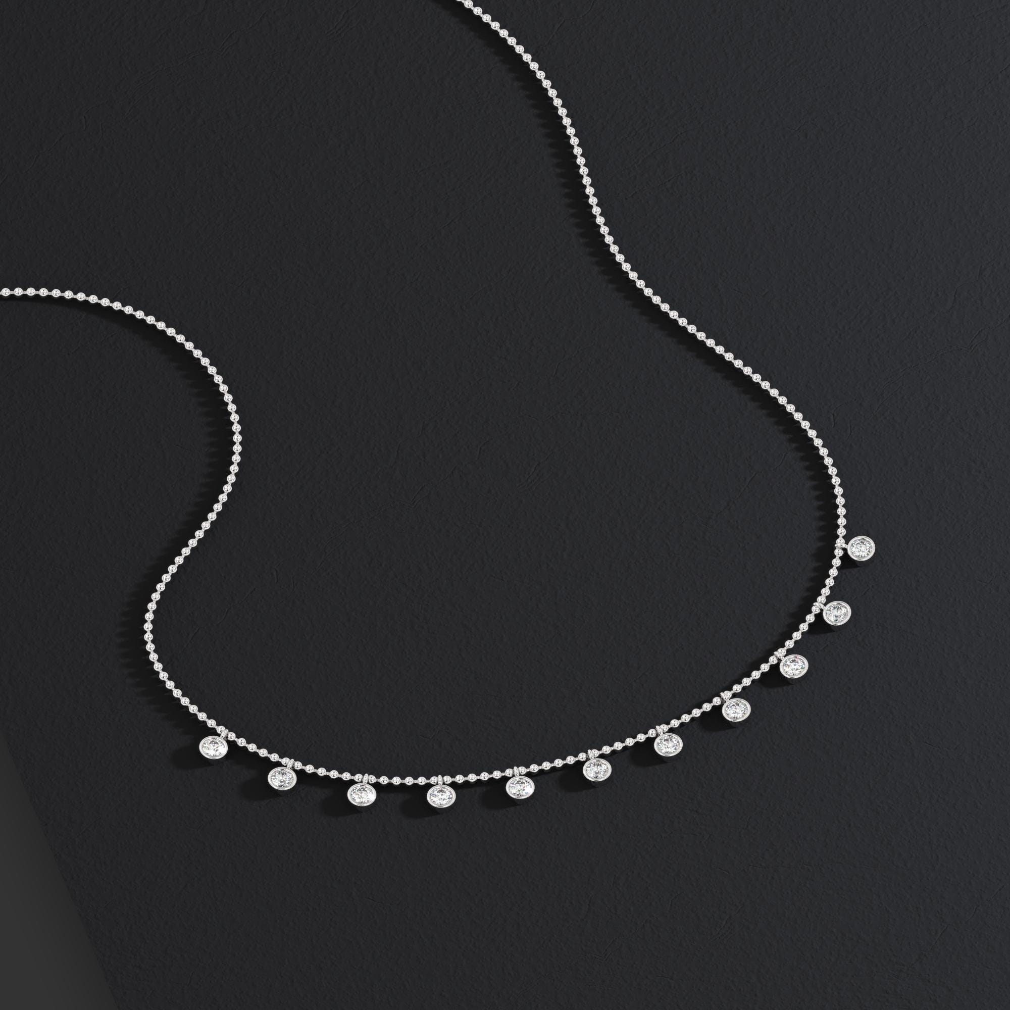 This beautiful, dainty bezel set round cut diamond station necklace is perfect just by itself or layering.