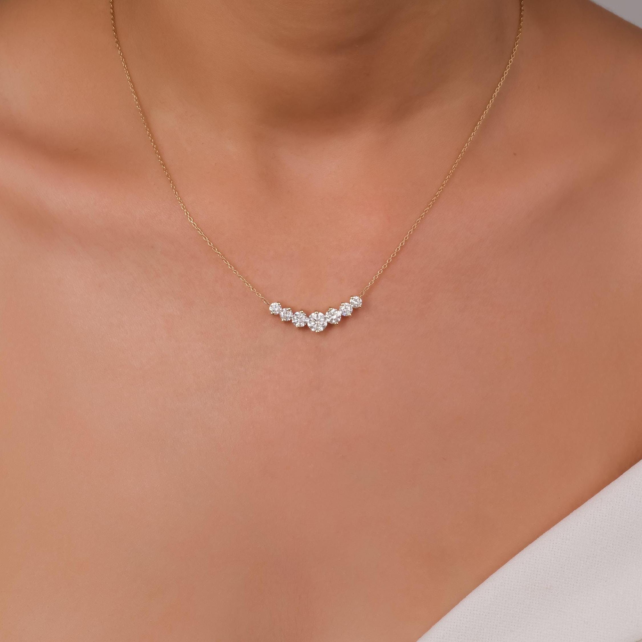 1.7 CT Graduated Diamond Curved Necklace: 14k Gold Minimalist Layering Jewelry