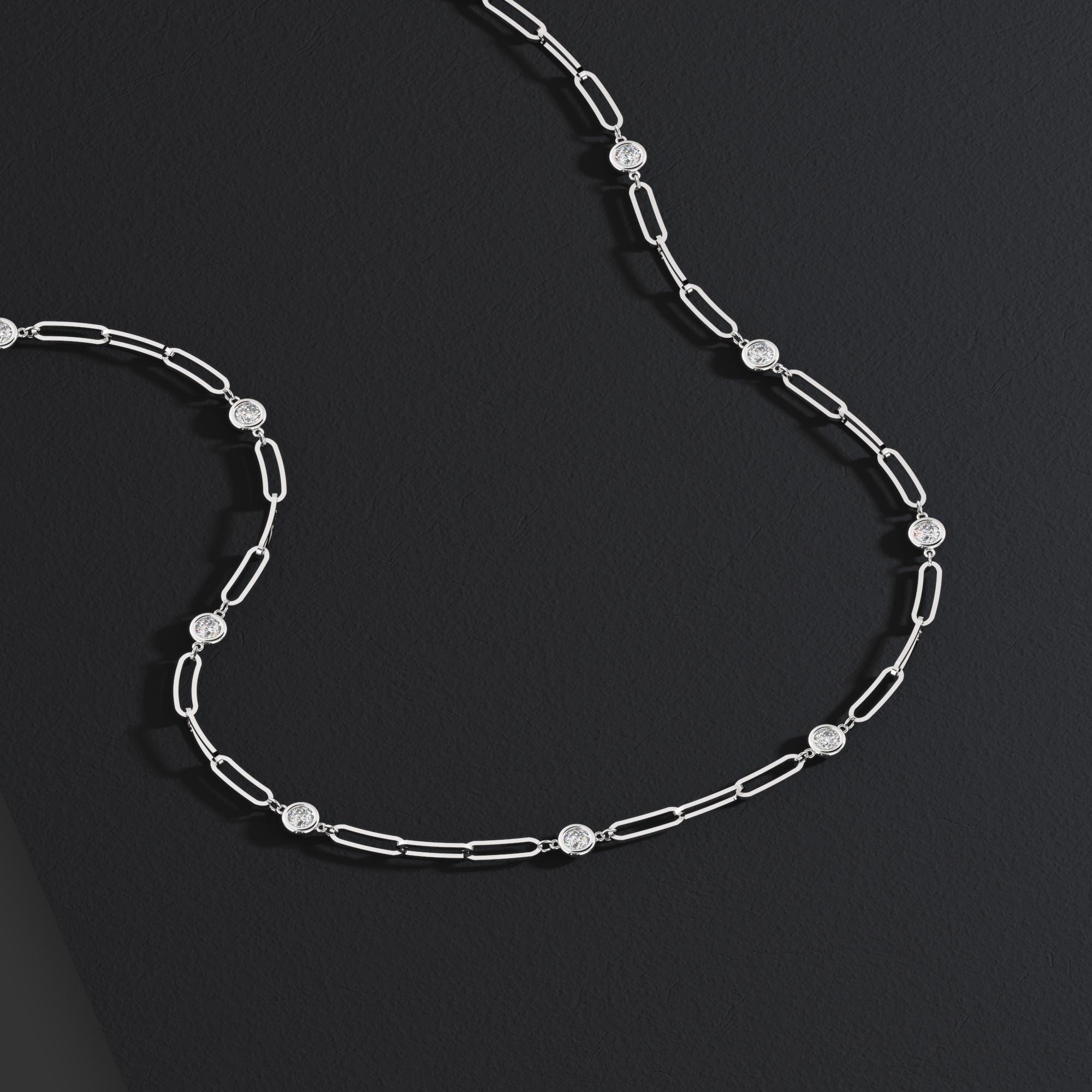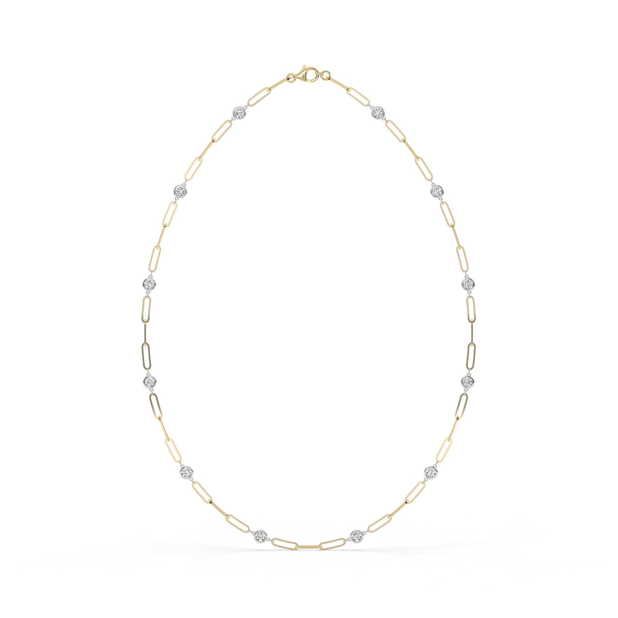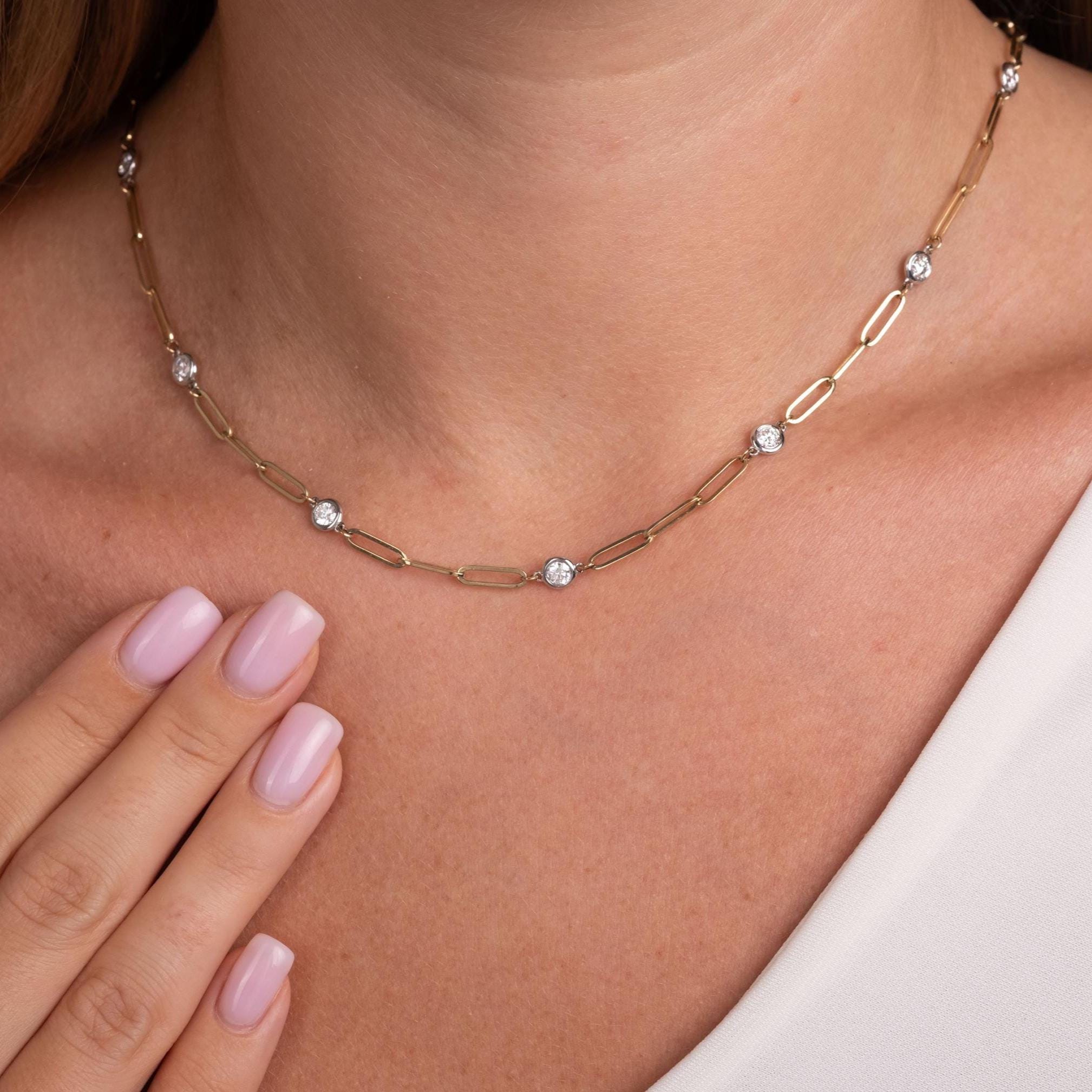 This beautiful, paperclip chain diamond station necklace is perfect just by itself or layering.