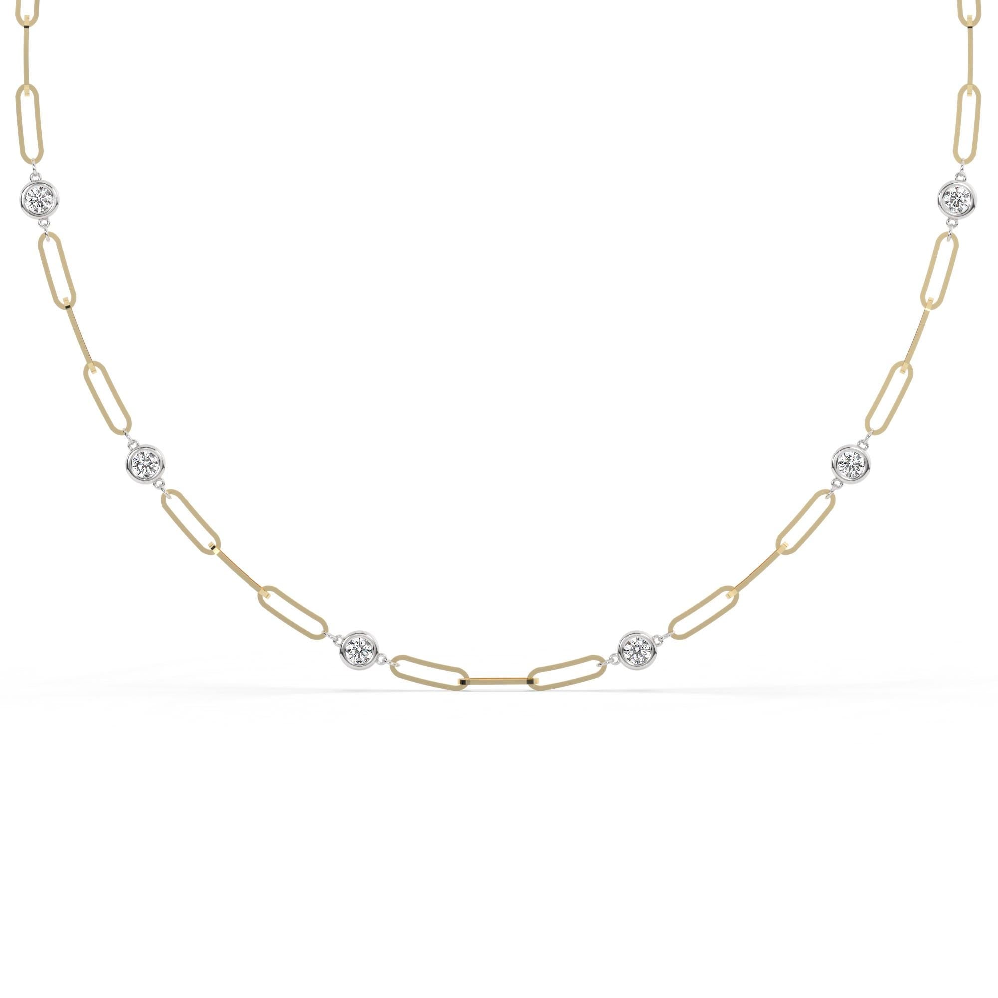 1.8 CT Diamond Station Necklace: 14k Gold Paperclip Chain