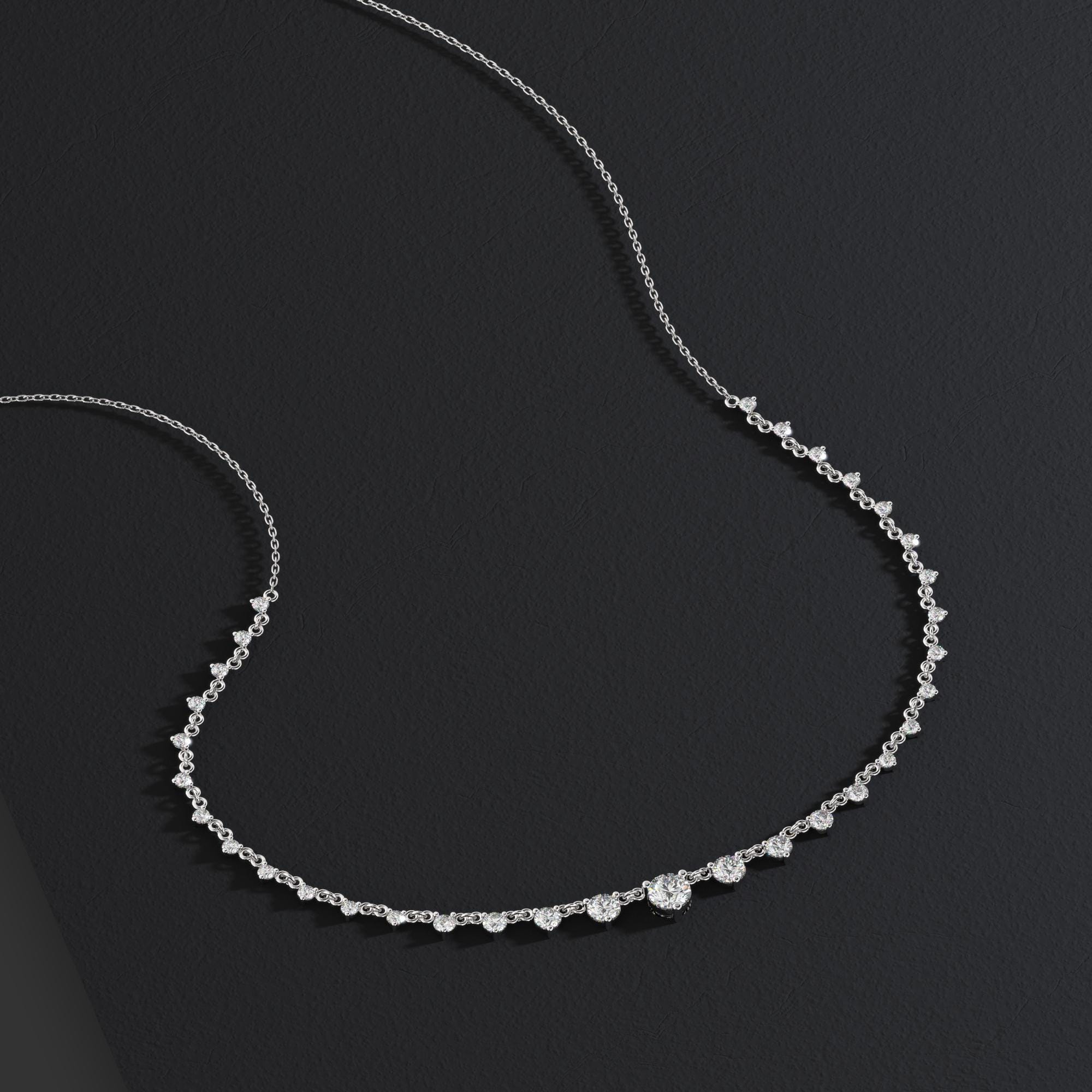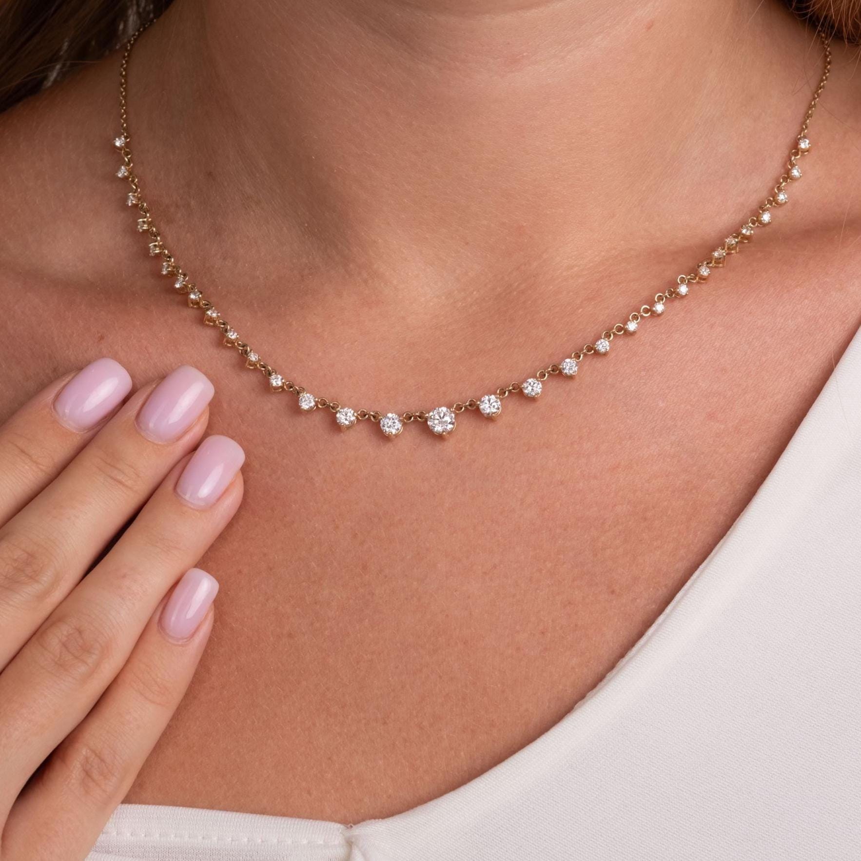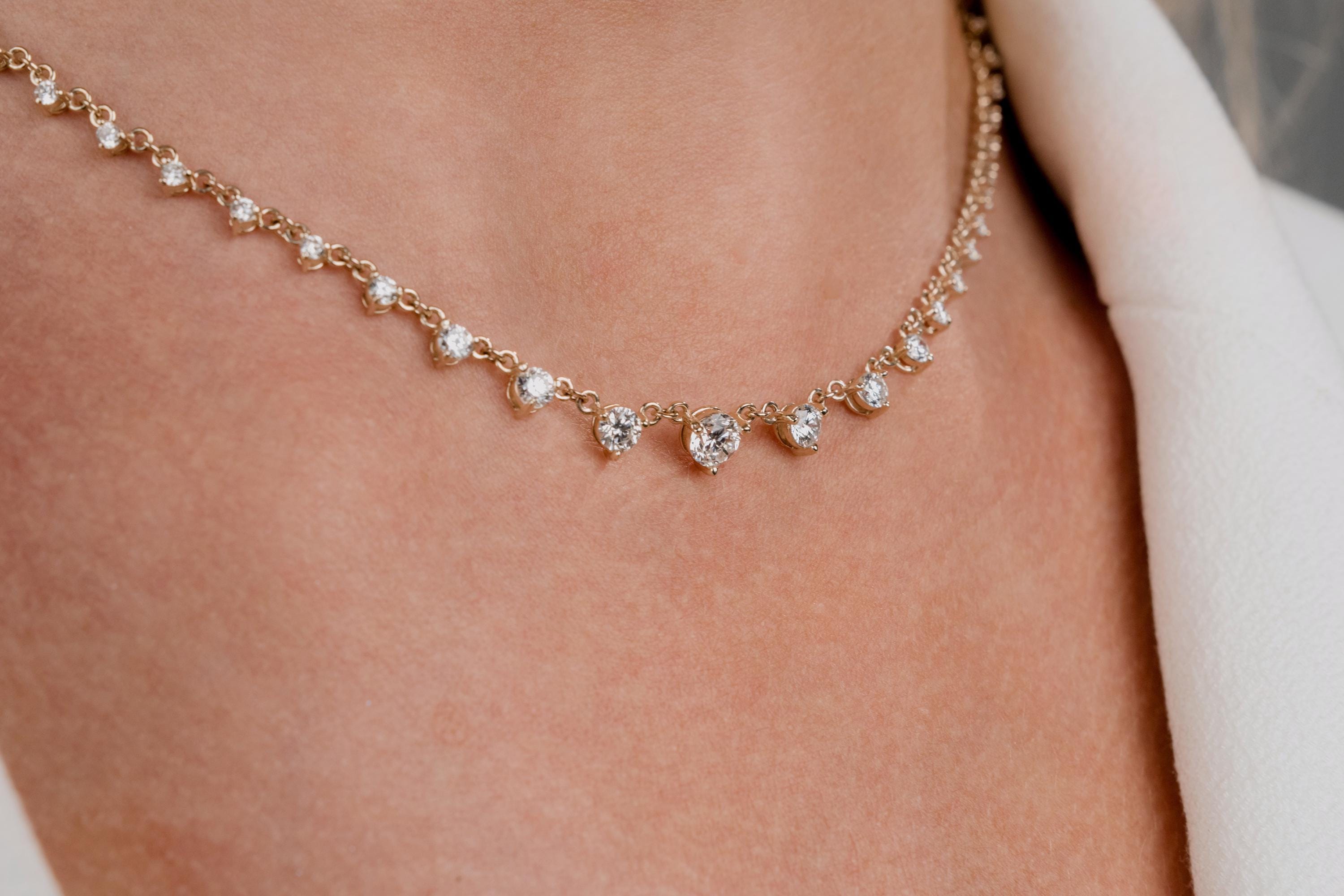2 CT Graduated Diamond Station Necklace / 3 Prong Halfway Segment Necklace / Natural N