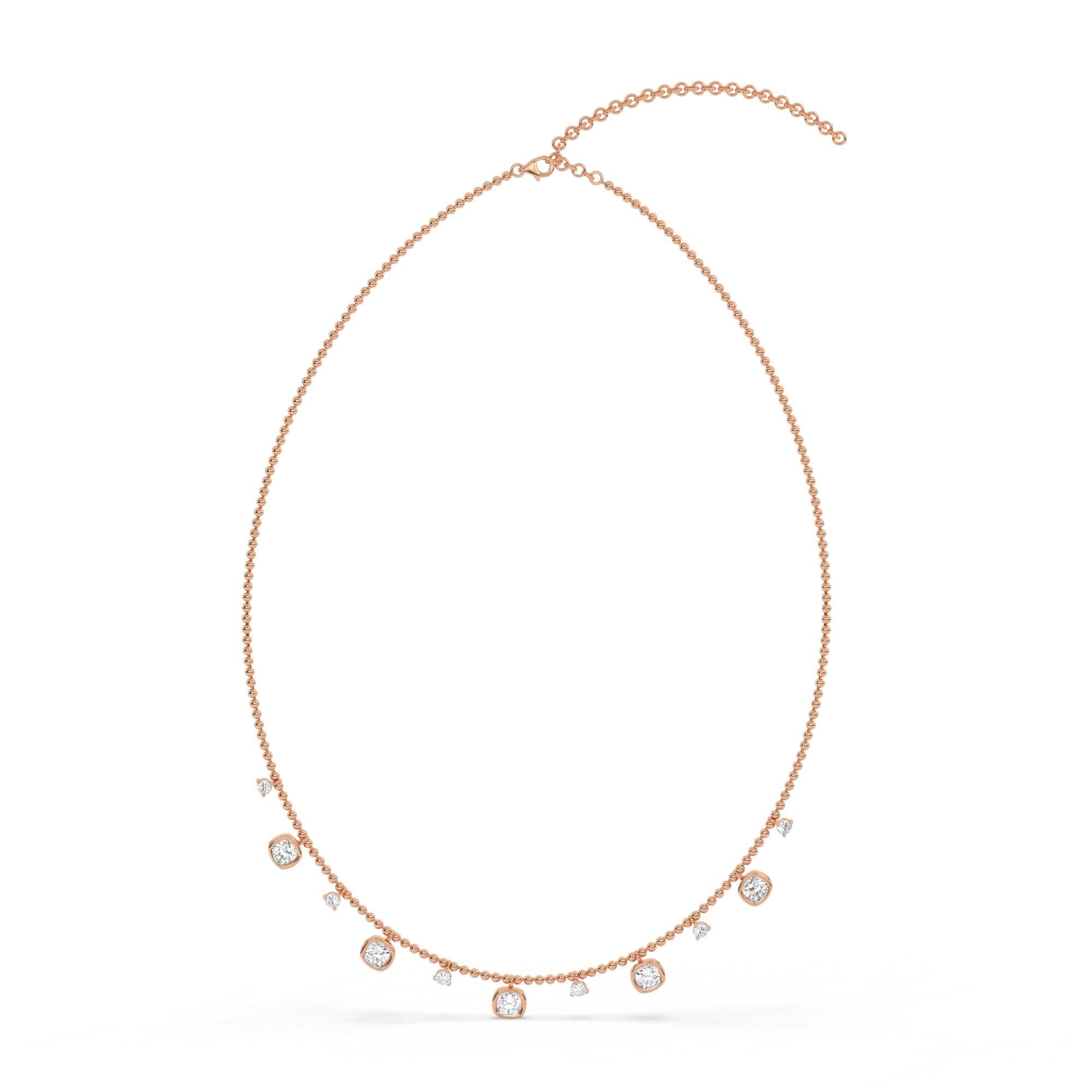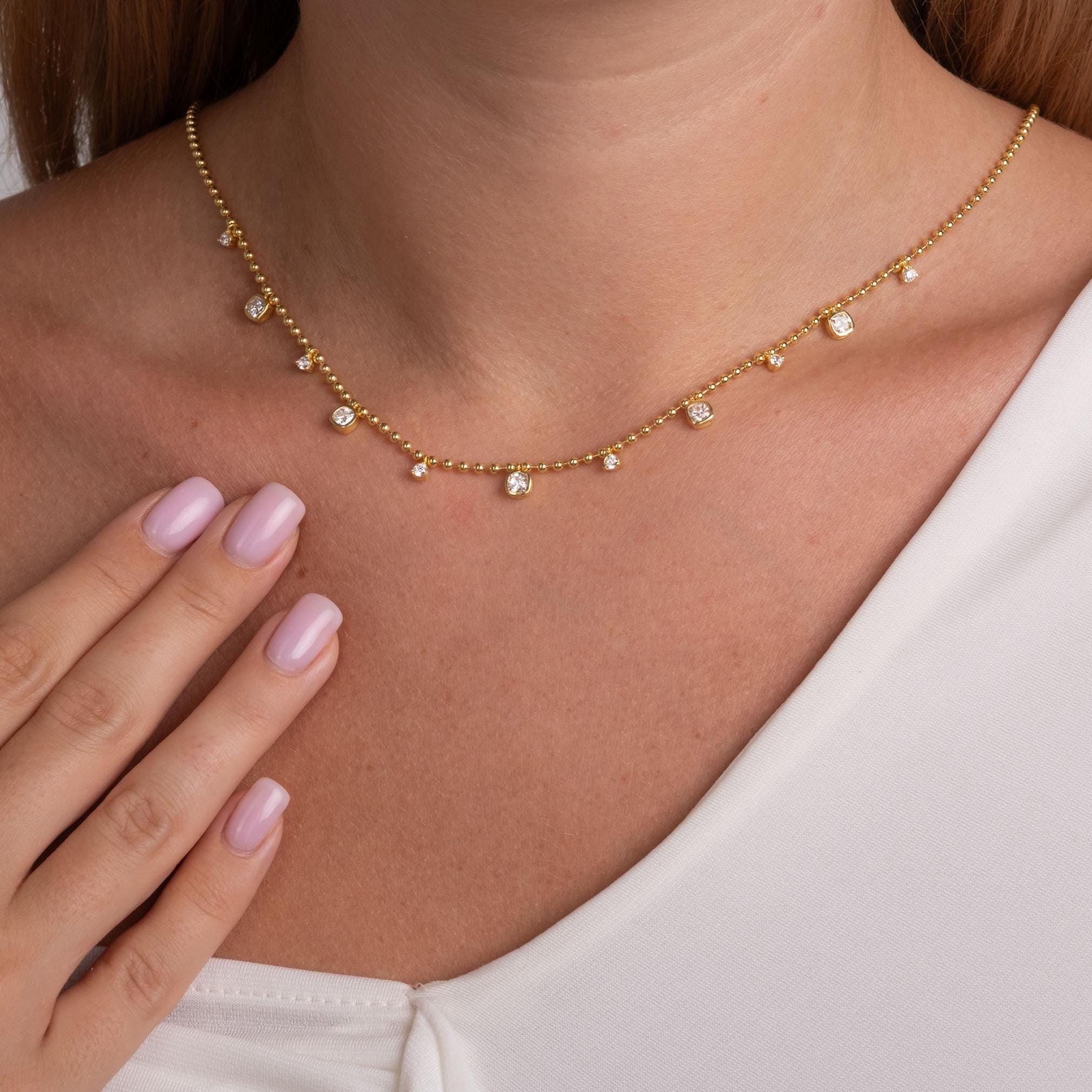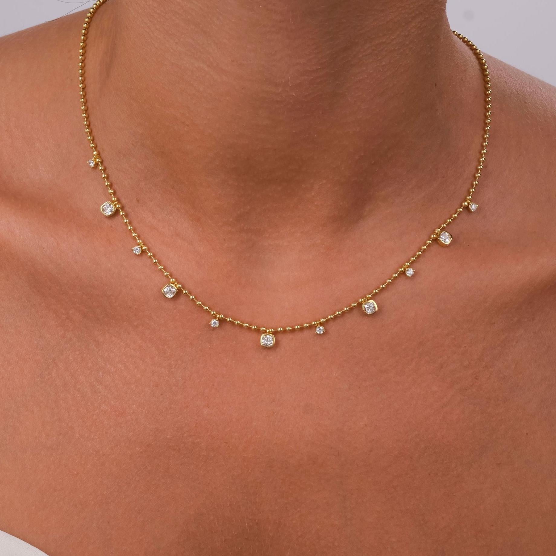 Dainty 14k Gold Cushion Cut Diamond Station Necklace - Ball Chain layering necklace
