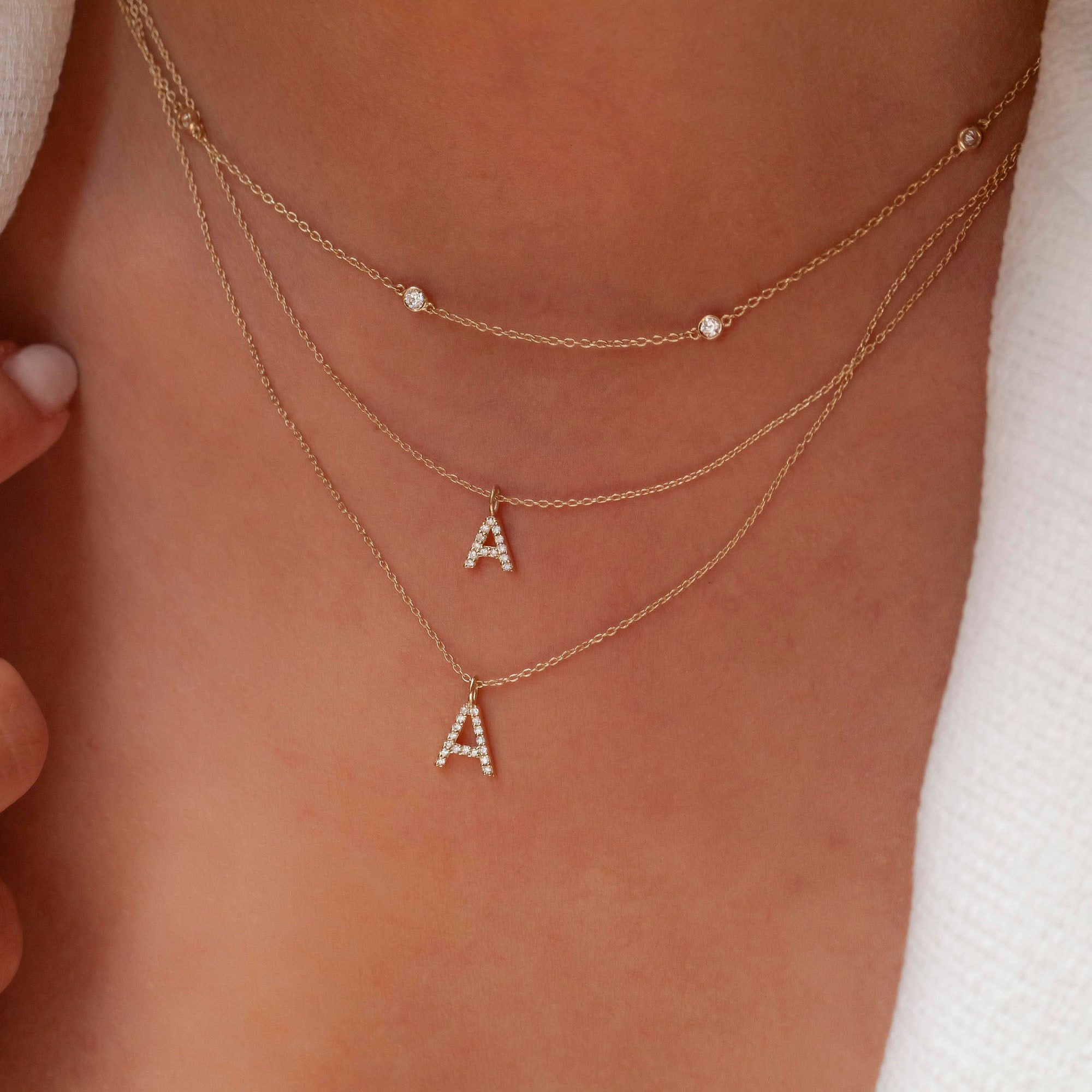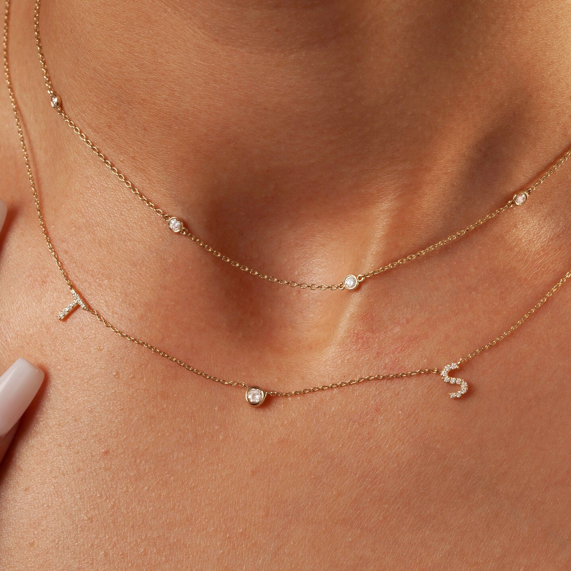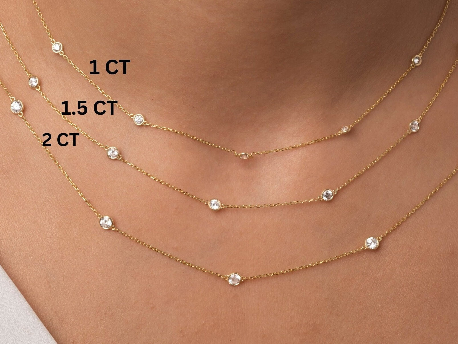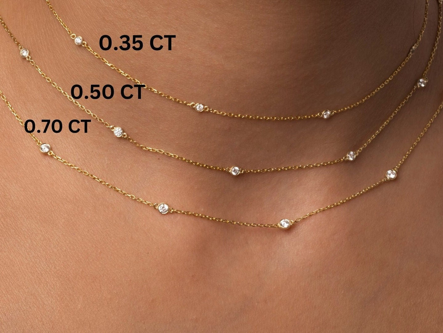Diamond Station Necklace / 14k Gold Bezel Set Diamond By The Yard Necklace / Gift for Wedding Graduation Engagement Birthday