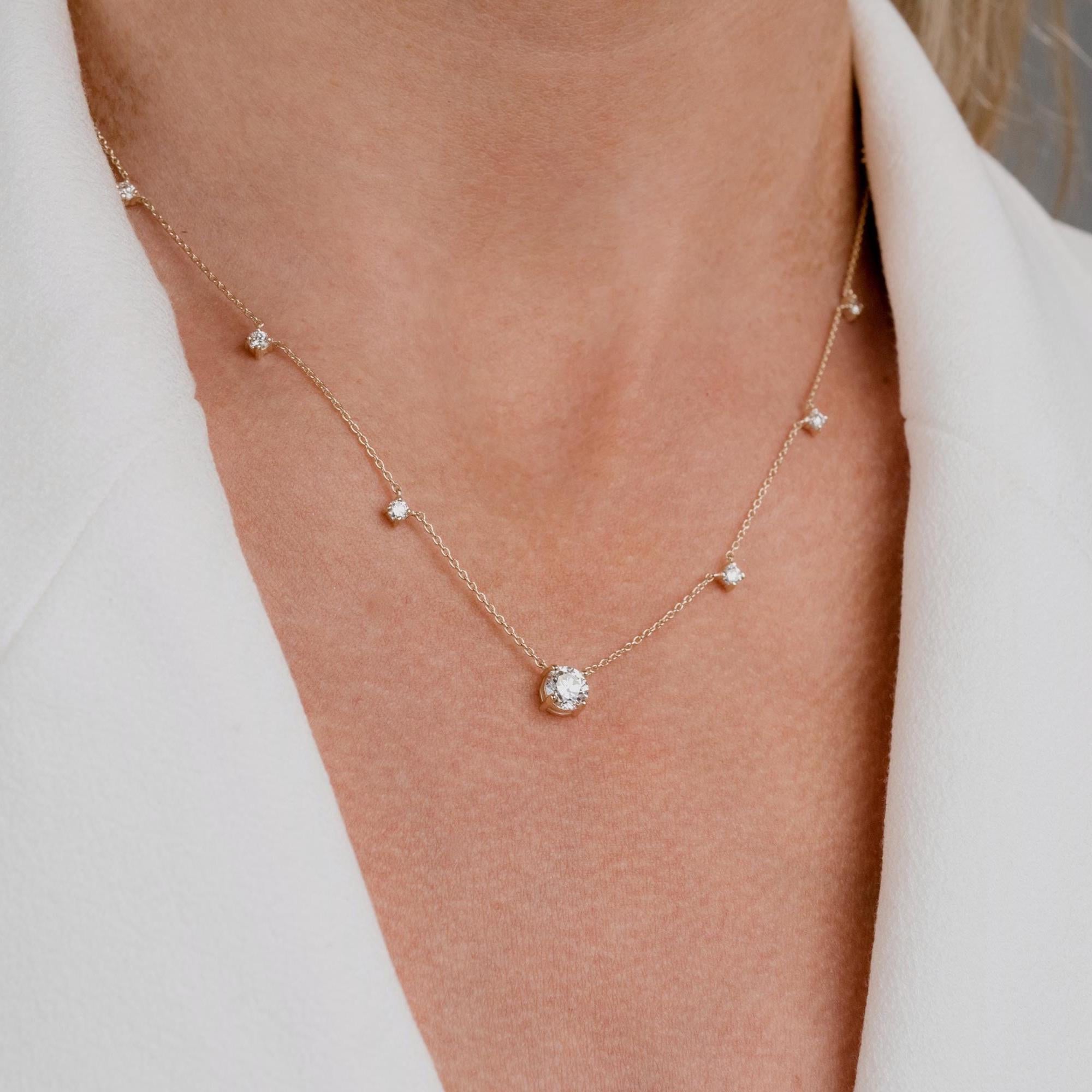 Modern Station Necklace with Statement Center | 14k Gold | Everyday Diamond Necklace | Gift for Wife or Girlfriend / Holiday jewelry gift