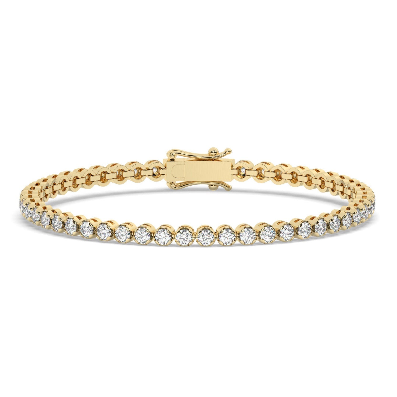 Diamond Buttercup Setting Tennis Bracelet / 14k Gold Crown Illusion Setting Tennis Bracelet / Elegant Crown Setting Tennis Bracelet