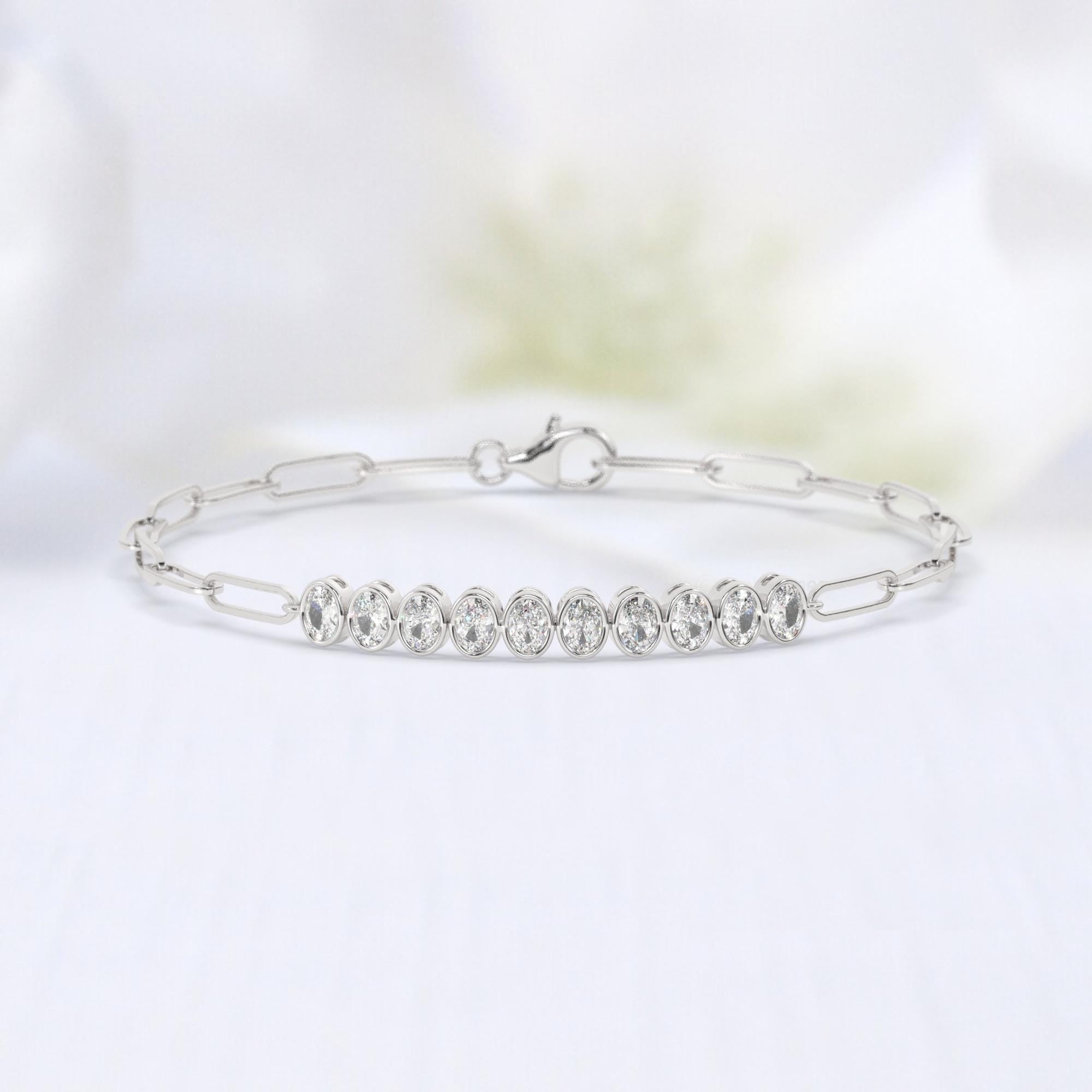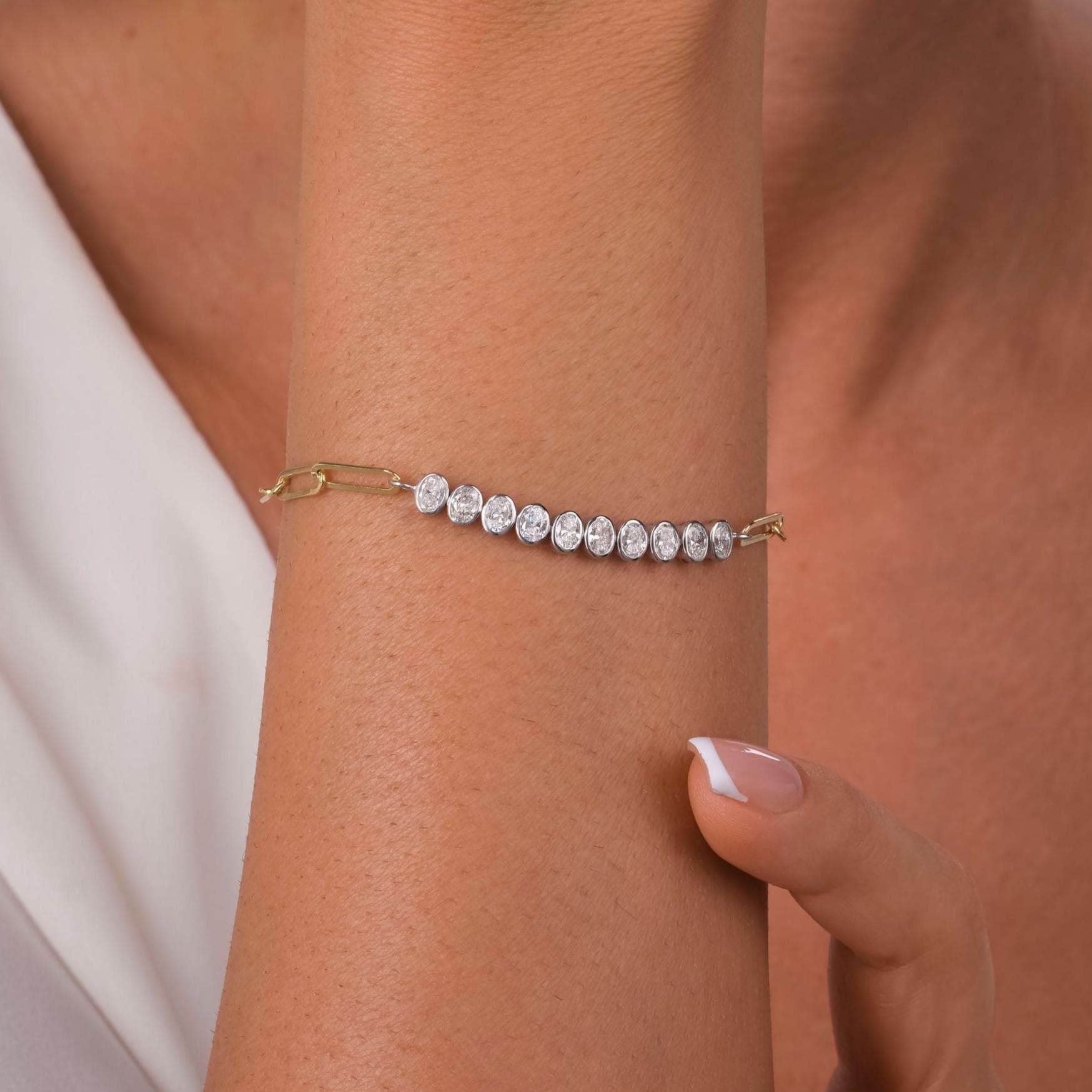 Diamond Paperclip Bracelet / 14k Gold Bezel Setting Oval Shape Diamond Bracelet / Dainty and Elegant Diamond Bracelet
