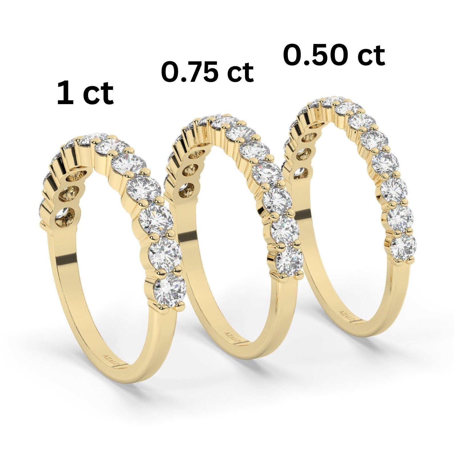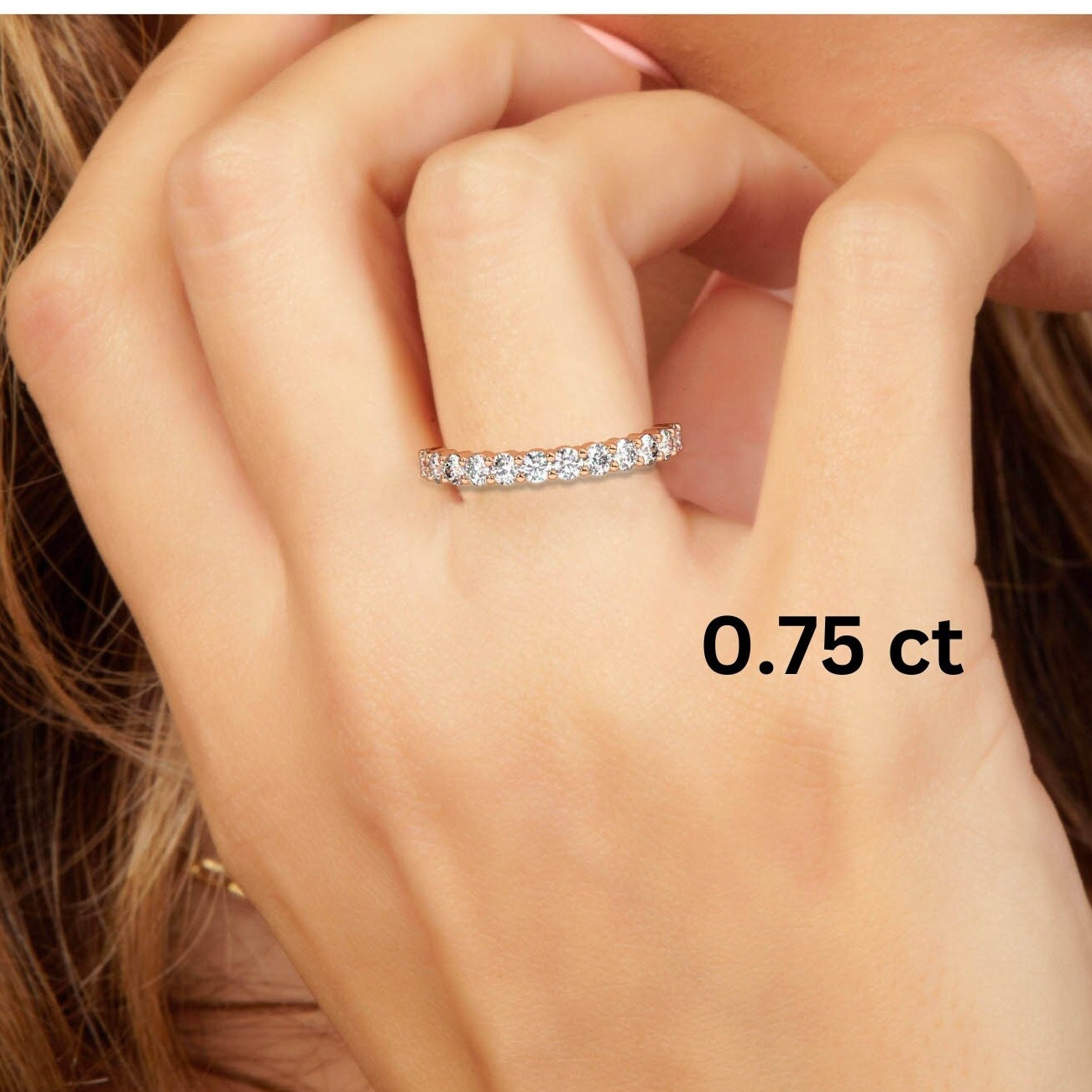 Diamond Half Eternity Wedding Band / 0.50 - 1 CT 14k Gold Double Prong Basket Setting Full Eternity Diamond Wedding Ring