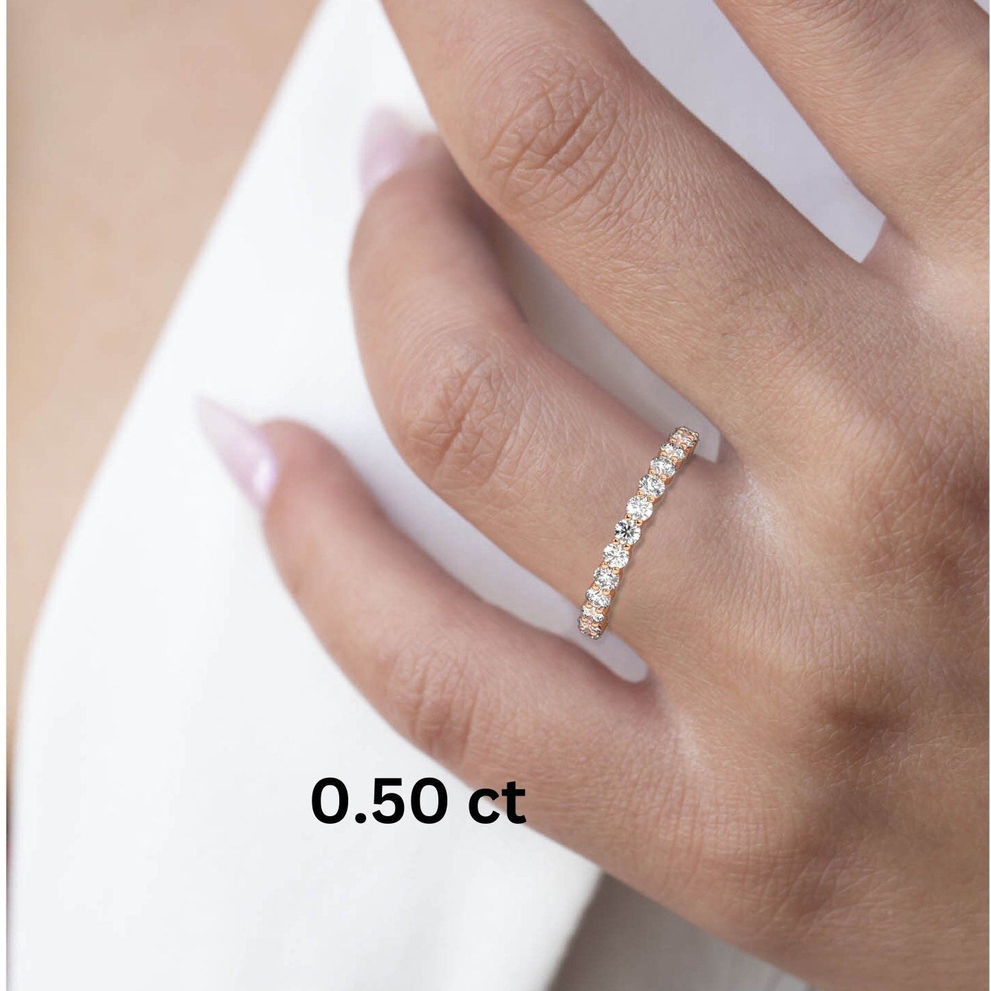 Elevate your style with our Classic Diamond Helf Eternity Eternity Band, a symbol of eternal love and unending elegance. This exquisite ring features a continuous circle of meticulously set diamonds, radiating timeless brilliance that will light up every moment of your life.