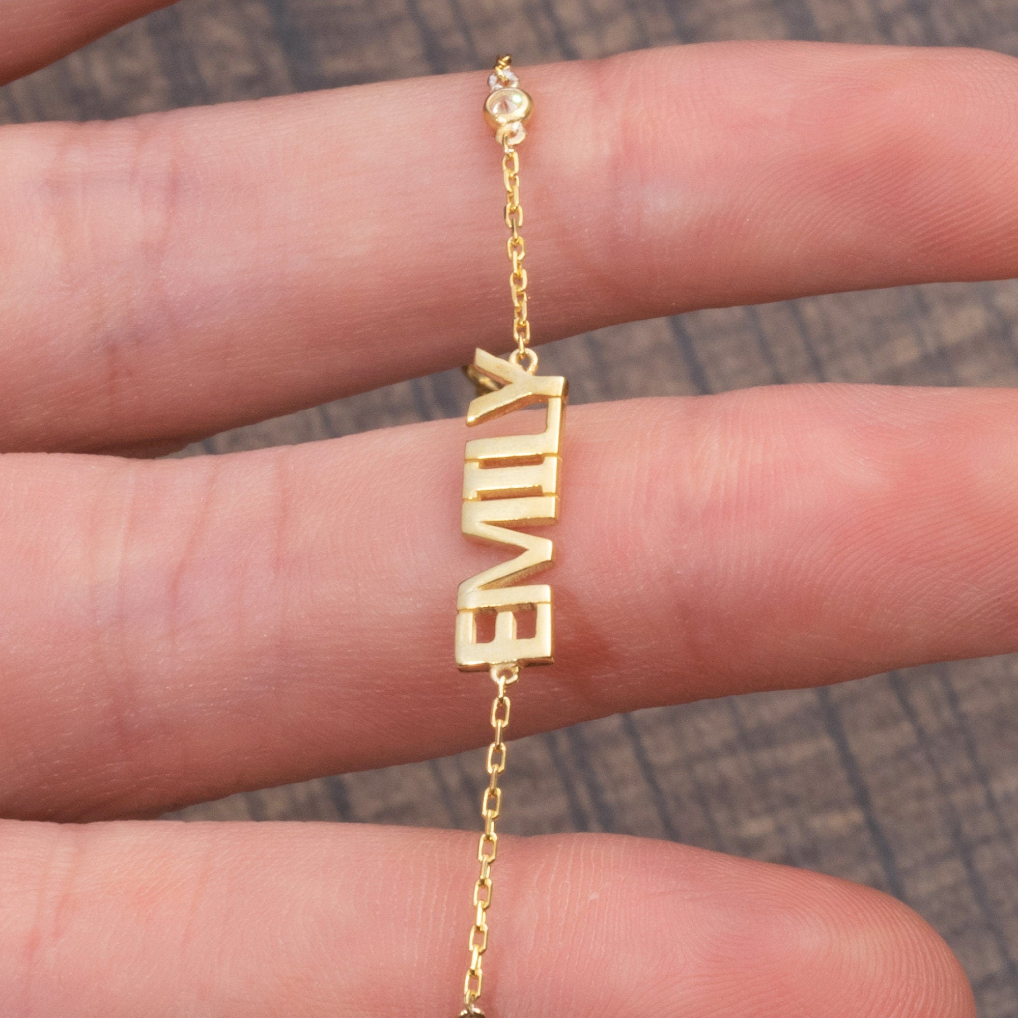 Diamond Name Bracelet / 14k Personalized Diamond Name Bracelet / Personalized Diamond Letter Bracelet / Block Name Bracelet