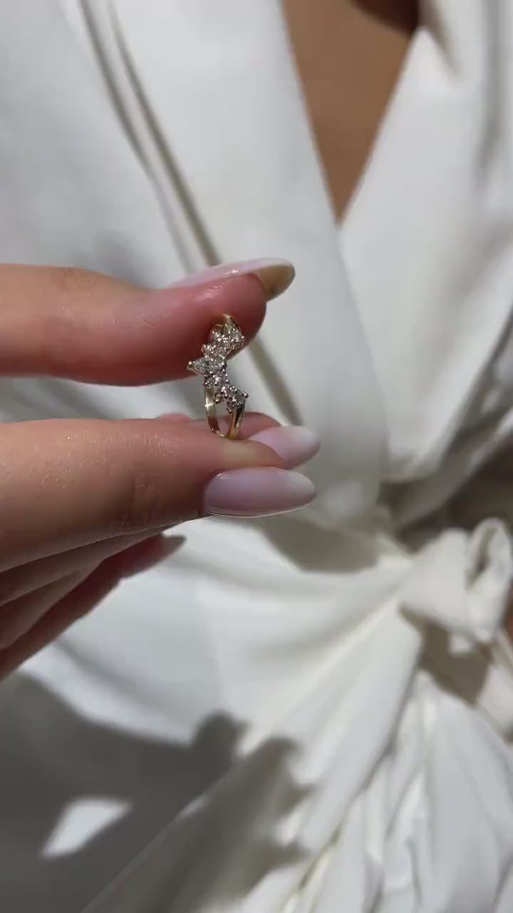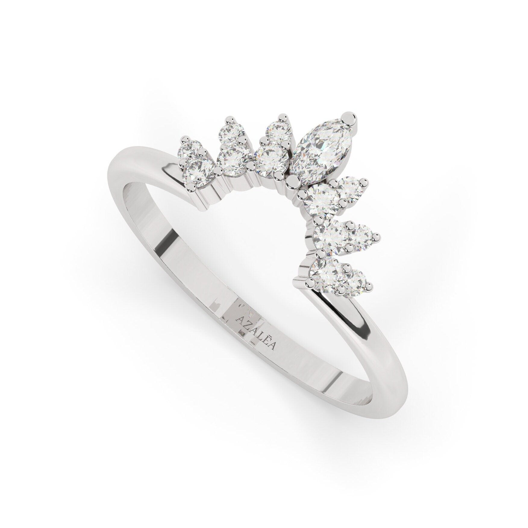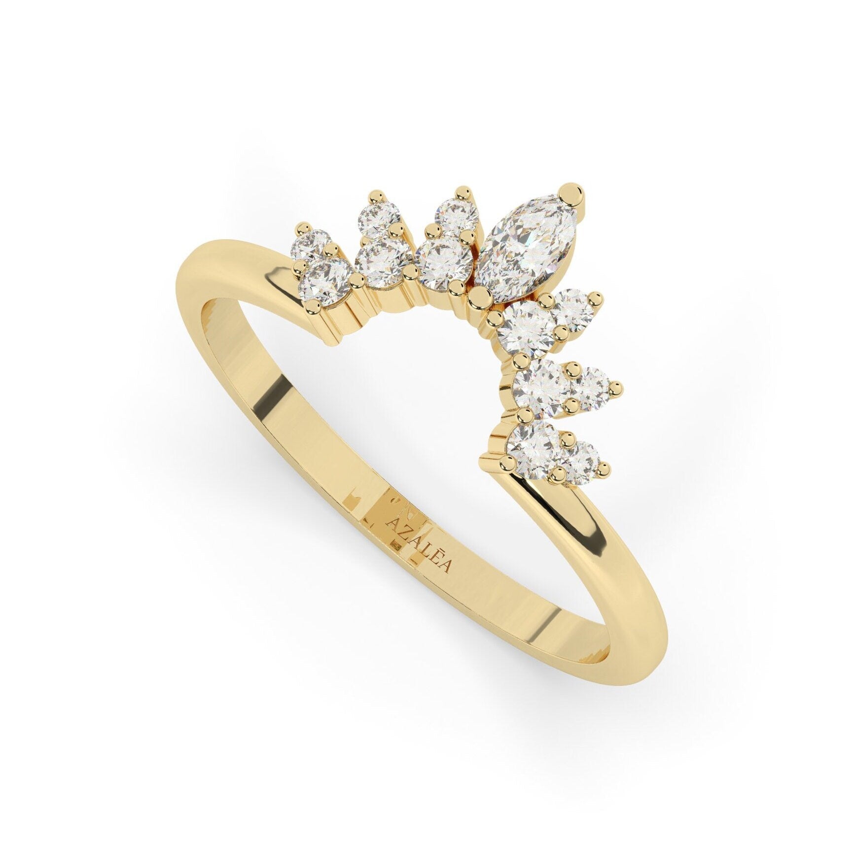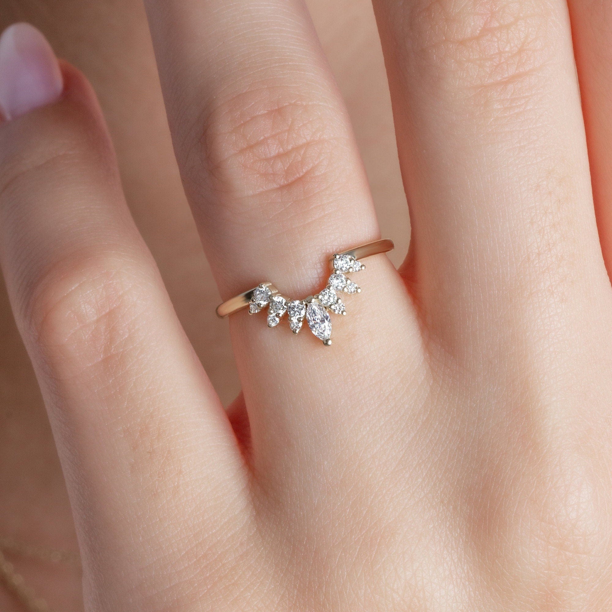 14k Gold Marquise and Round Diamond Ring/ Curved Diamond Wedding Band / Crown Stacking Ring / Gift for her / Lab & Natural Diamond Options