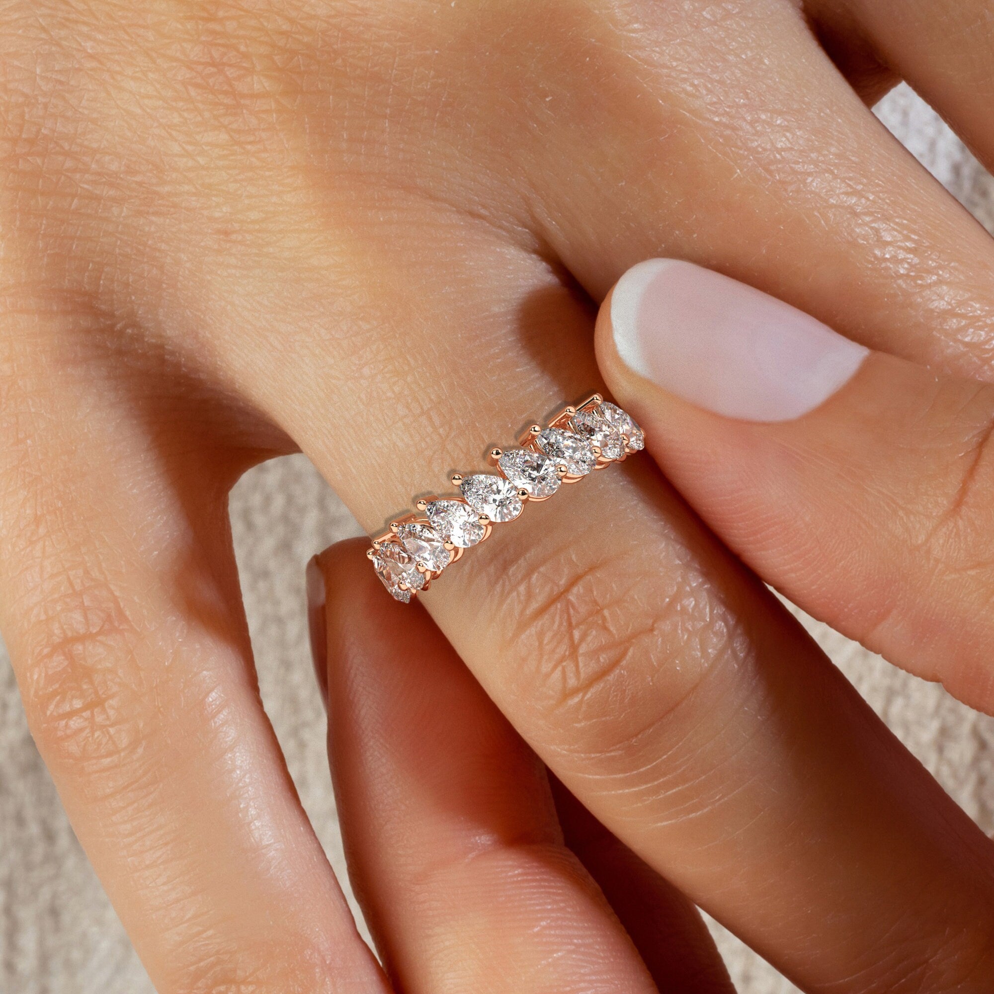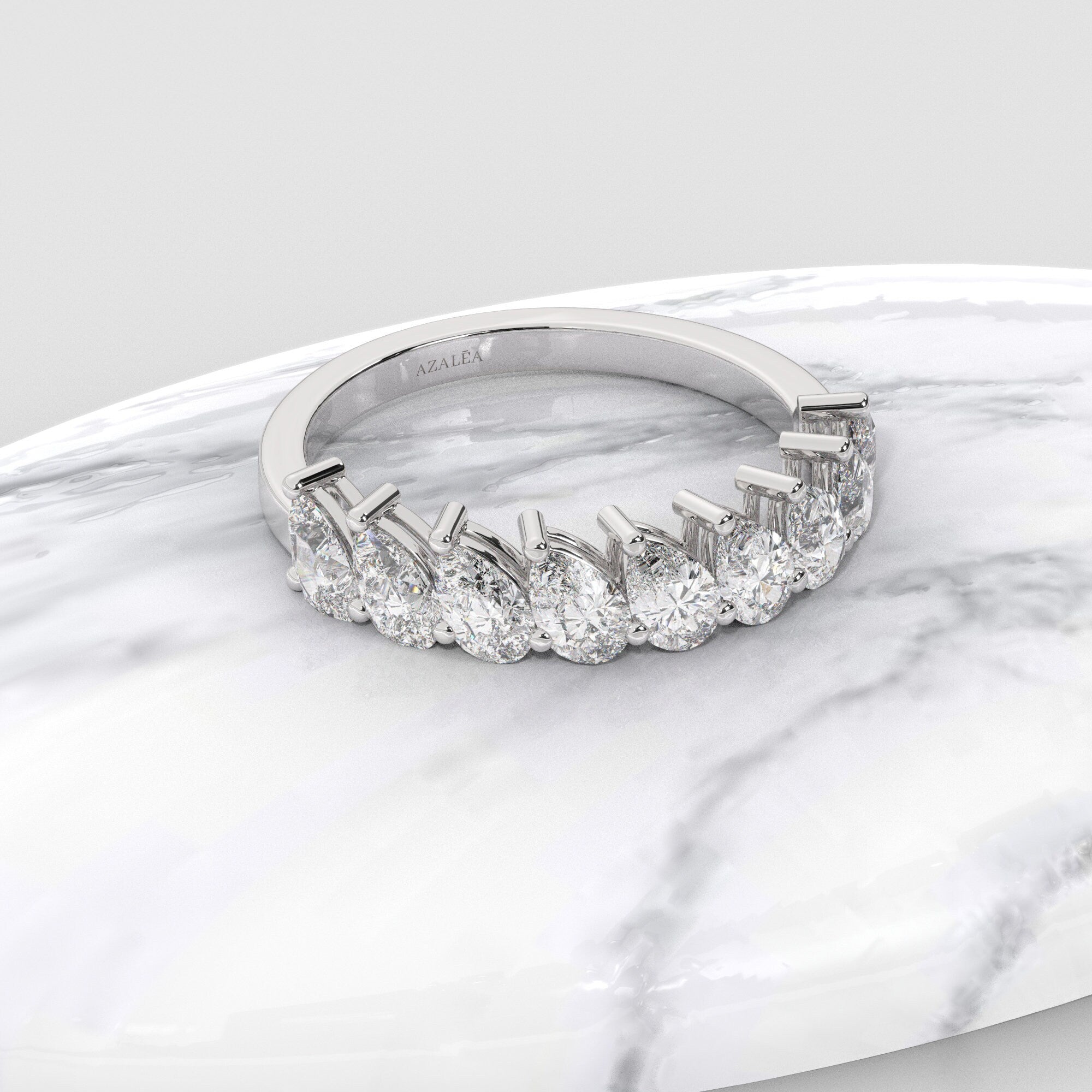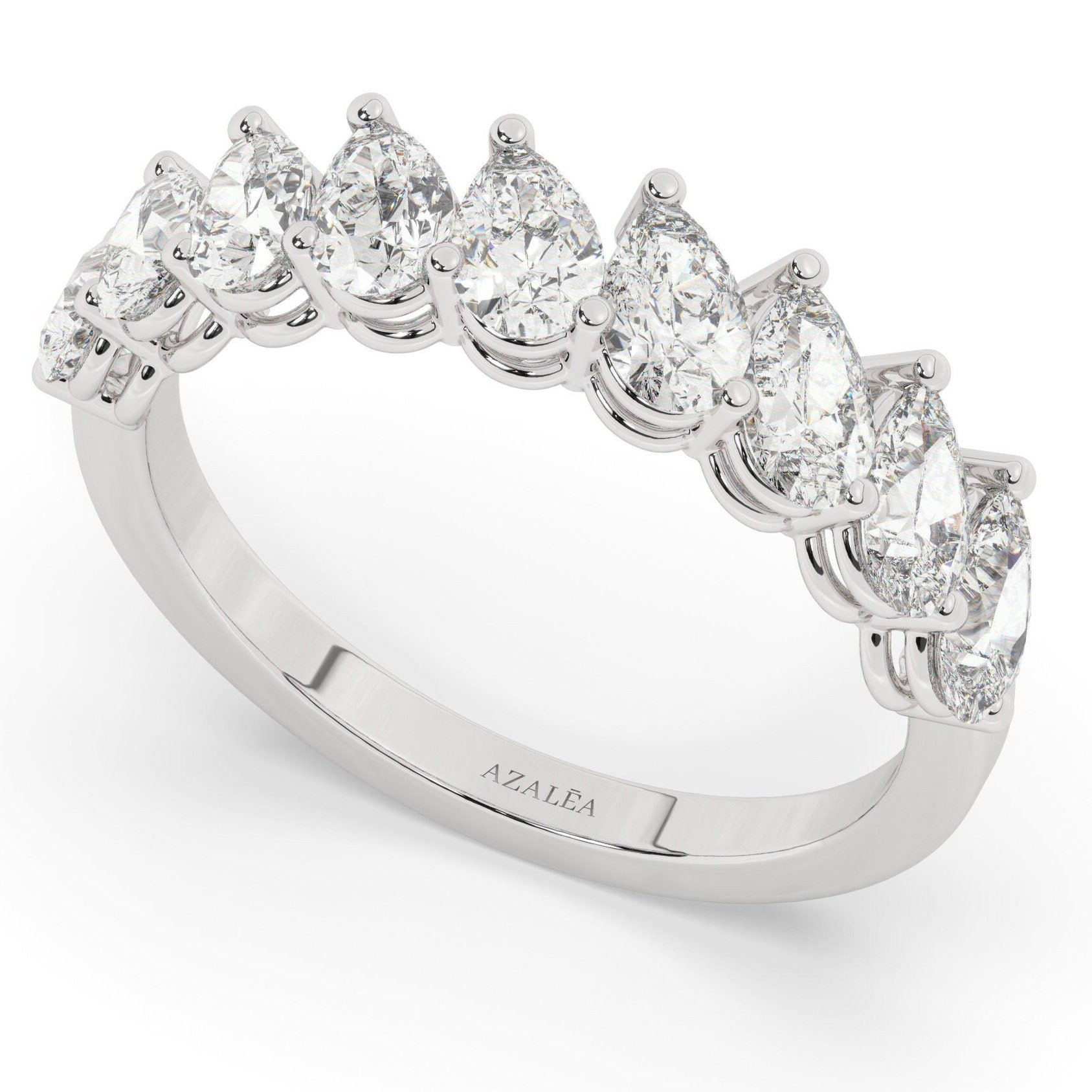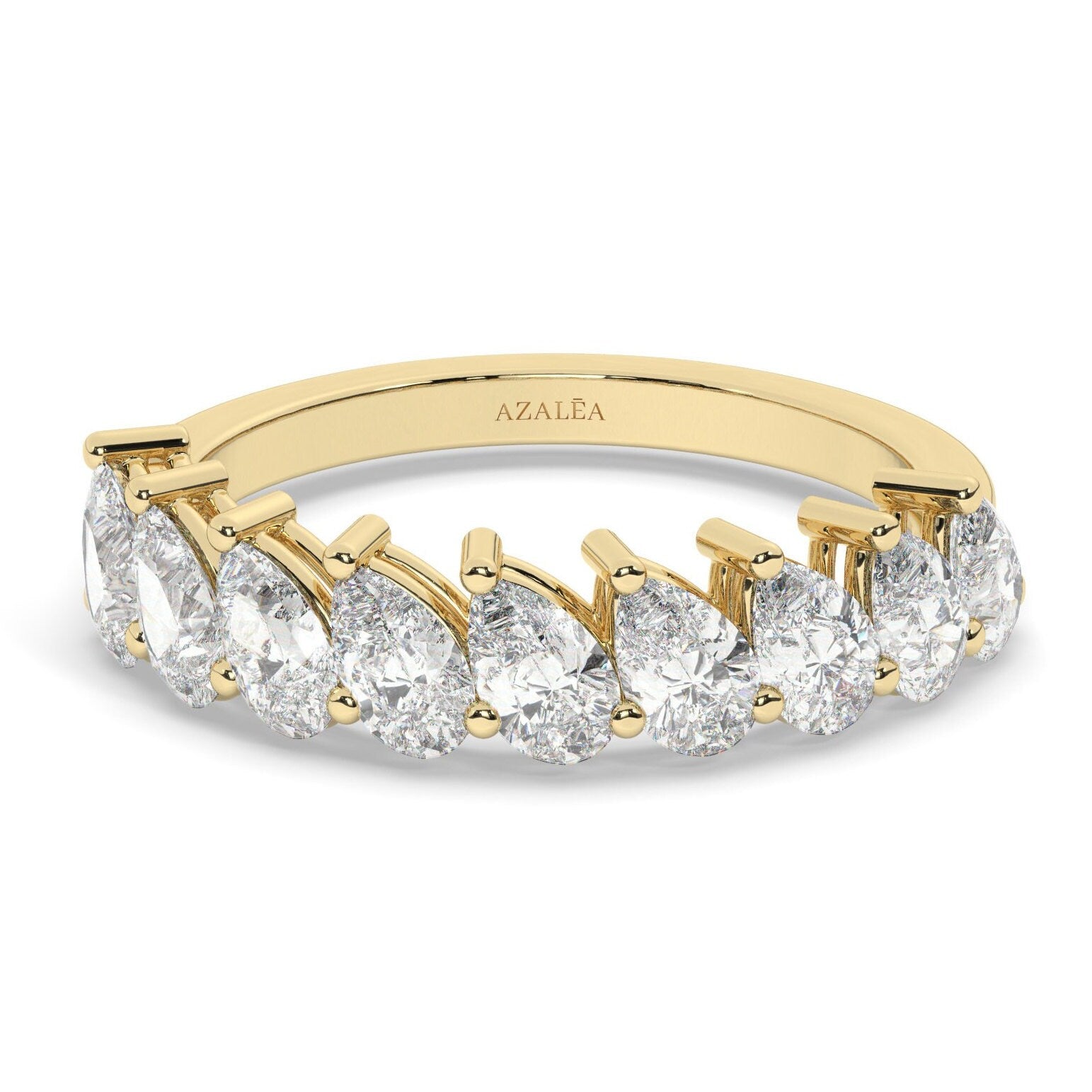 14k Gold Pear Diamond Wedding Band: Tilted Anniversary Ring