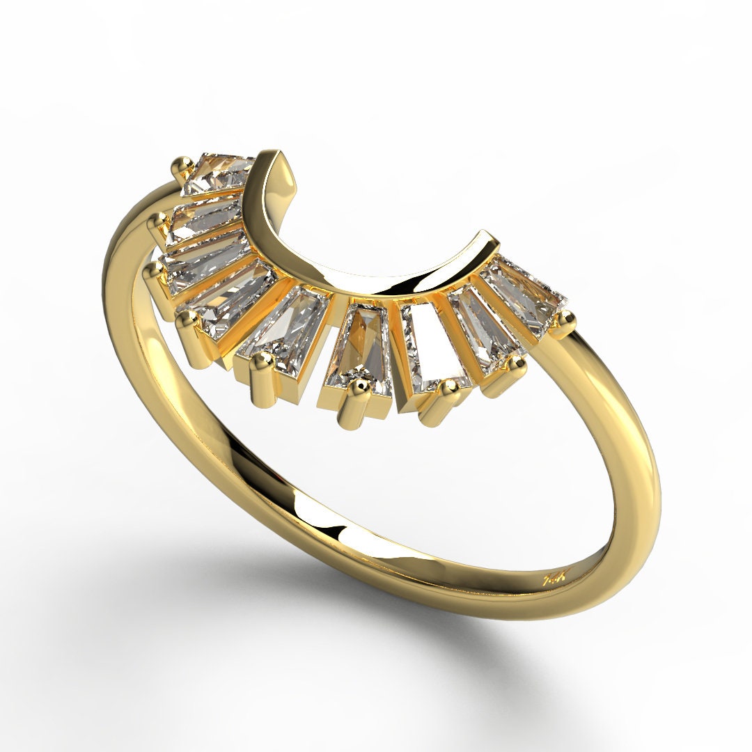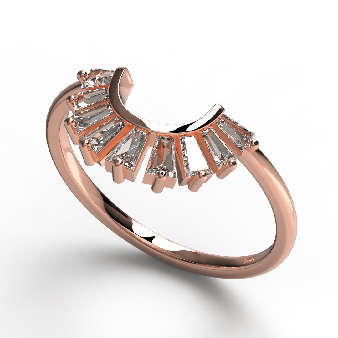 Curved Baguette Diamond Ring / 14k Gold Baguette Diamond Wedding Band / Diamond Stacking Ring / Anniversary Gift / Diamond Gift Idea