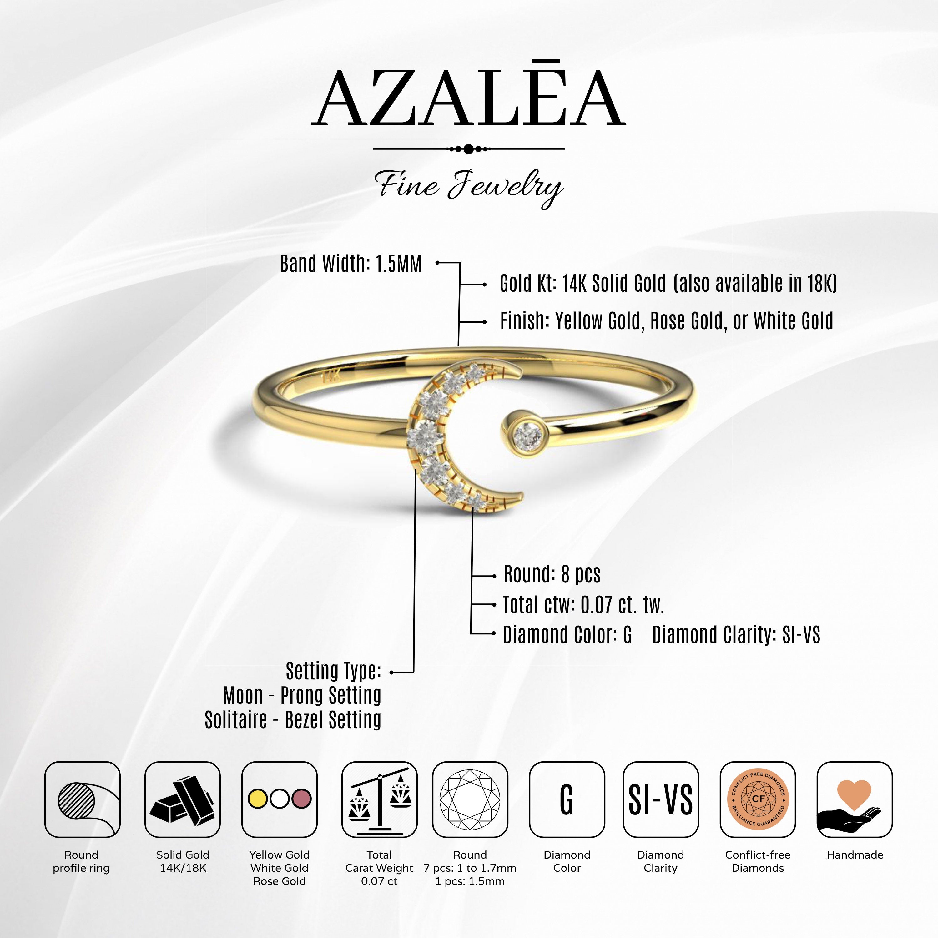 This pave diamond crescent moon cuff ring design is the perfect gift for someone special or yourself. Also pairs well with any stacking band.