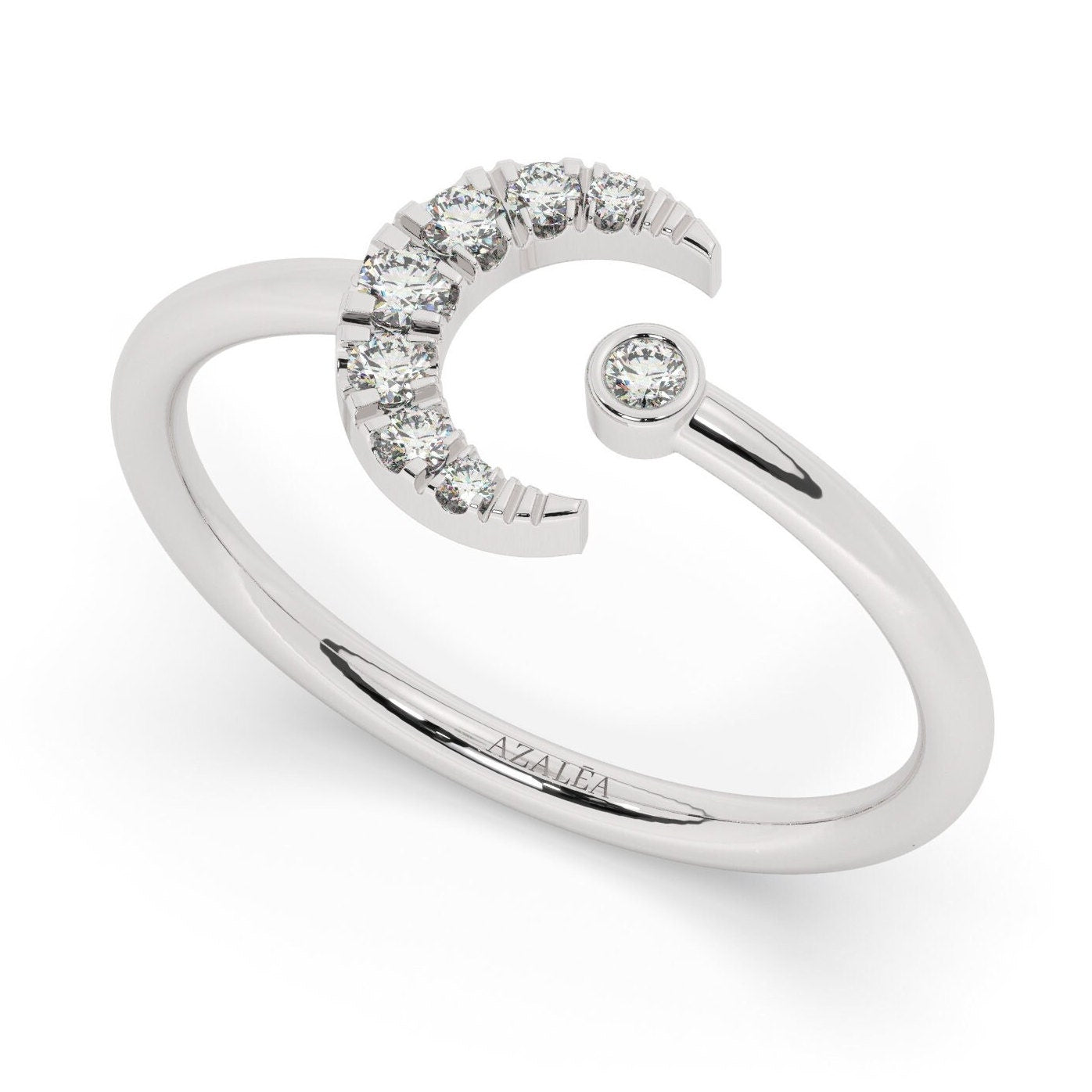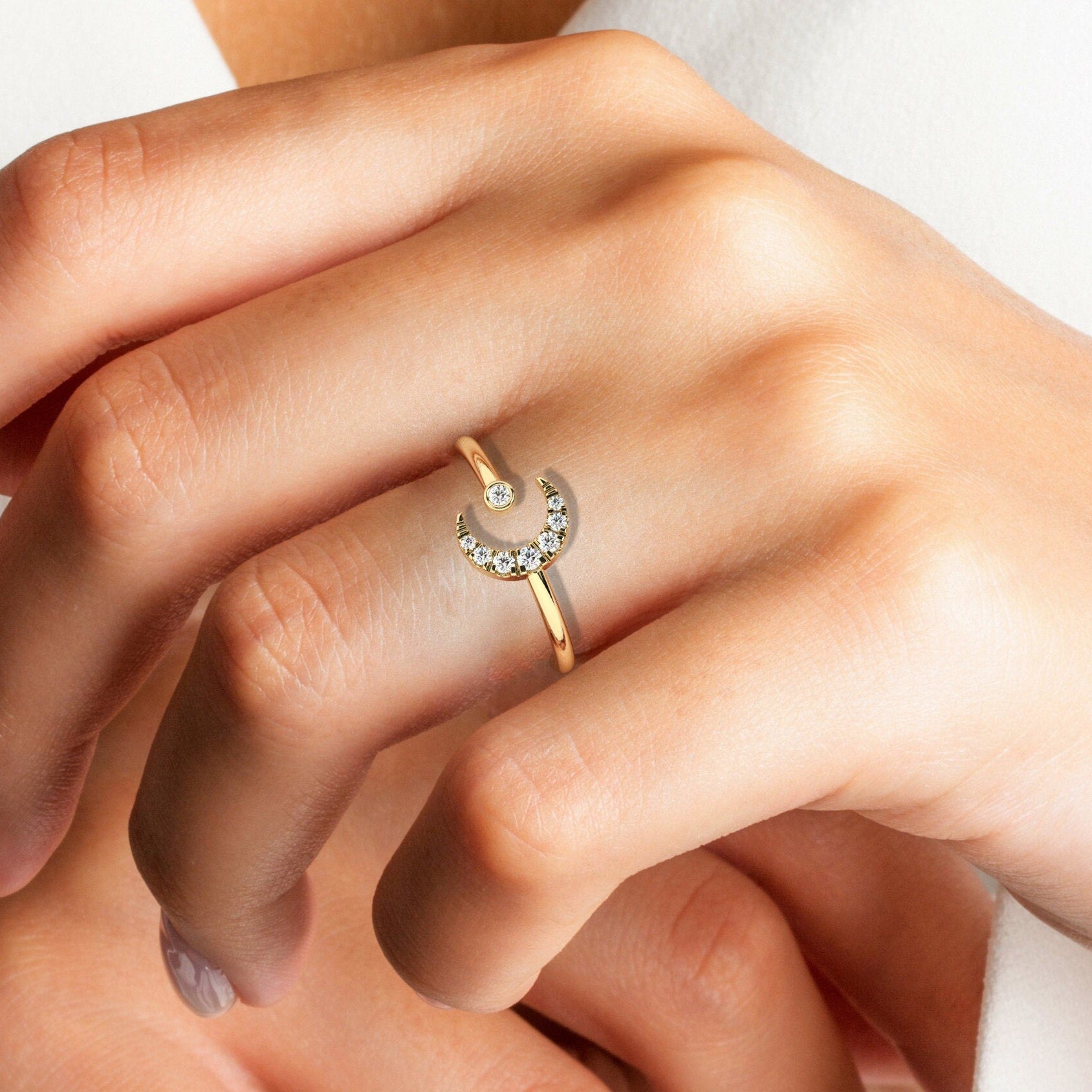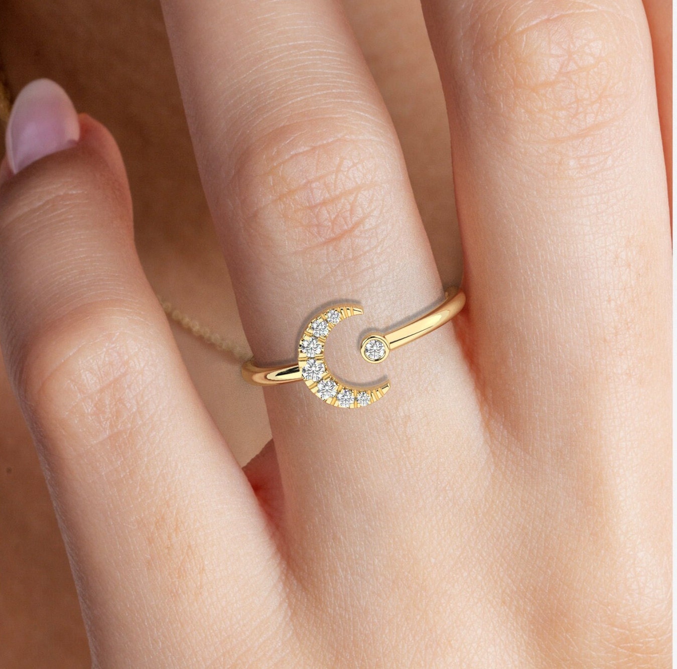 Diamond Moon Cuff Ring / 14k Gold Diamond Moon Ring / Cuff Stacking Ring / Crescent Moon Diamond Ring /Graduation Gift / Birthday Gift