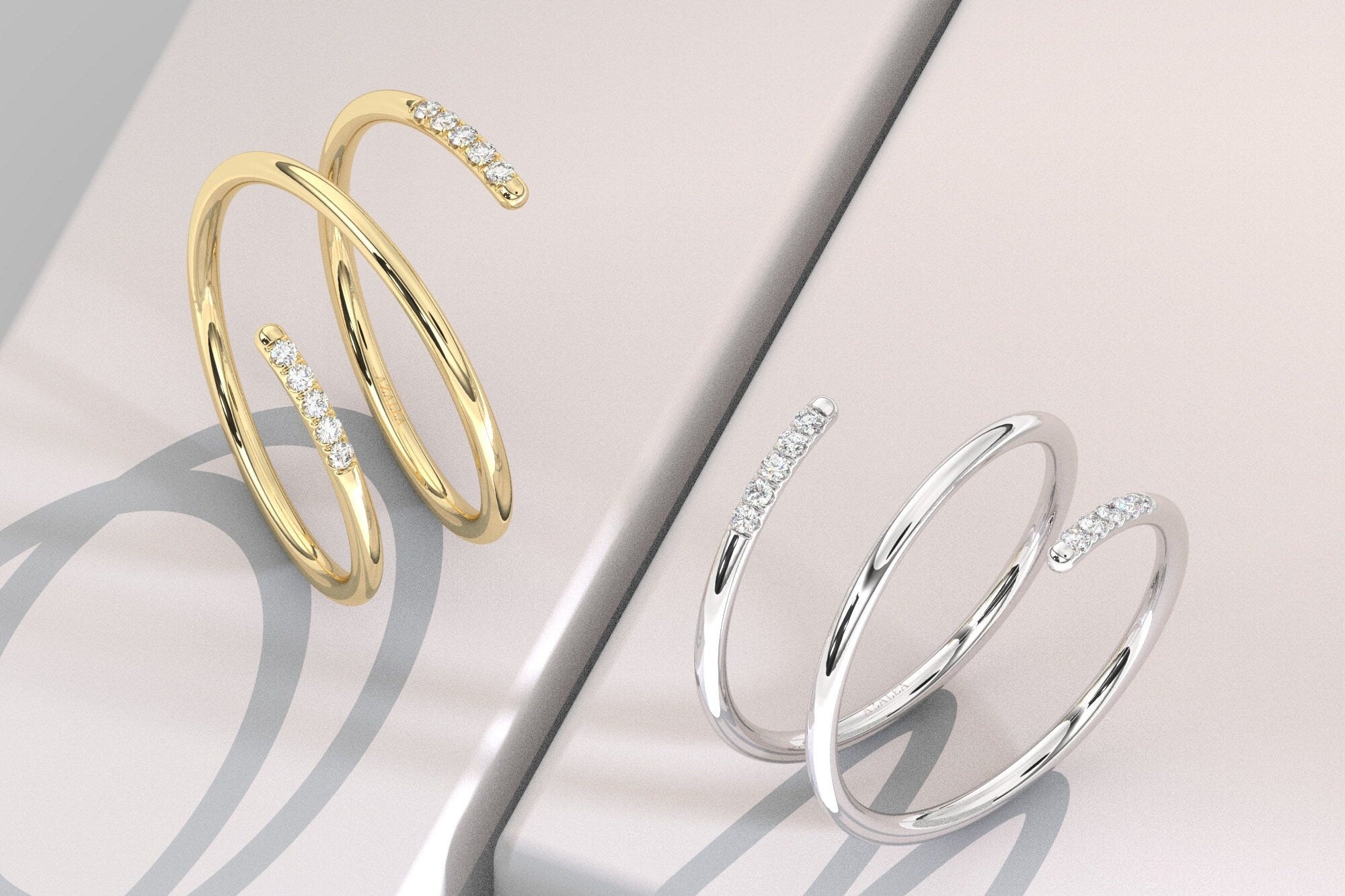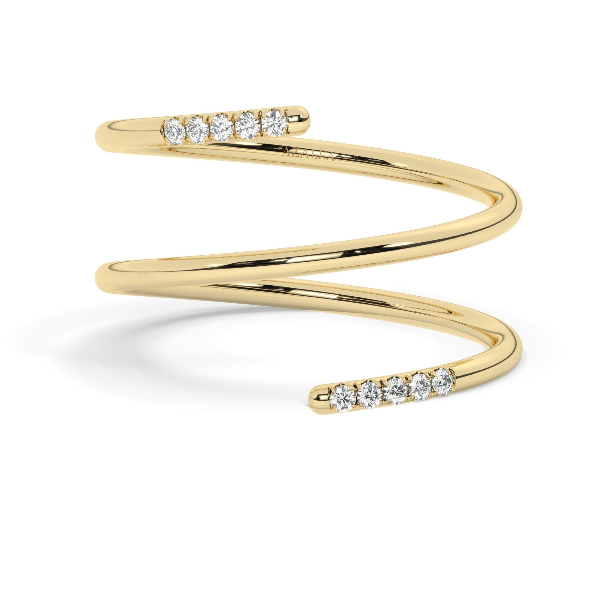 Diamond Spiral Cuff Ring / 14k Gold Spiral Diamond Cuff Ring / Anniversary Ring / Wedding Band / Stacking Ring / Bridal Gift / Birthday Gift