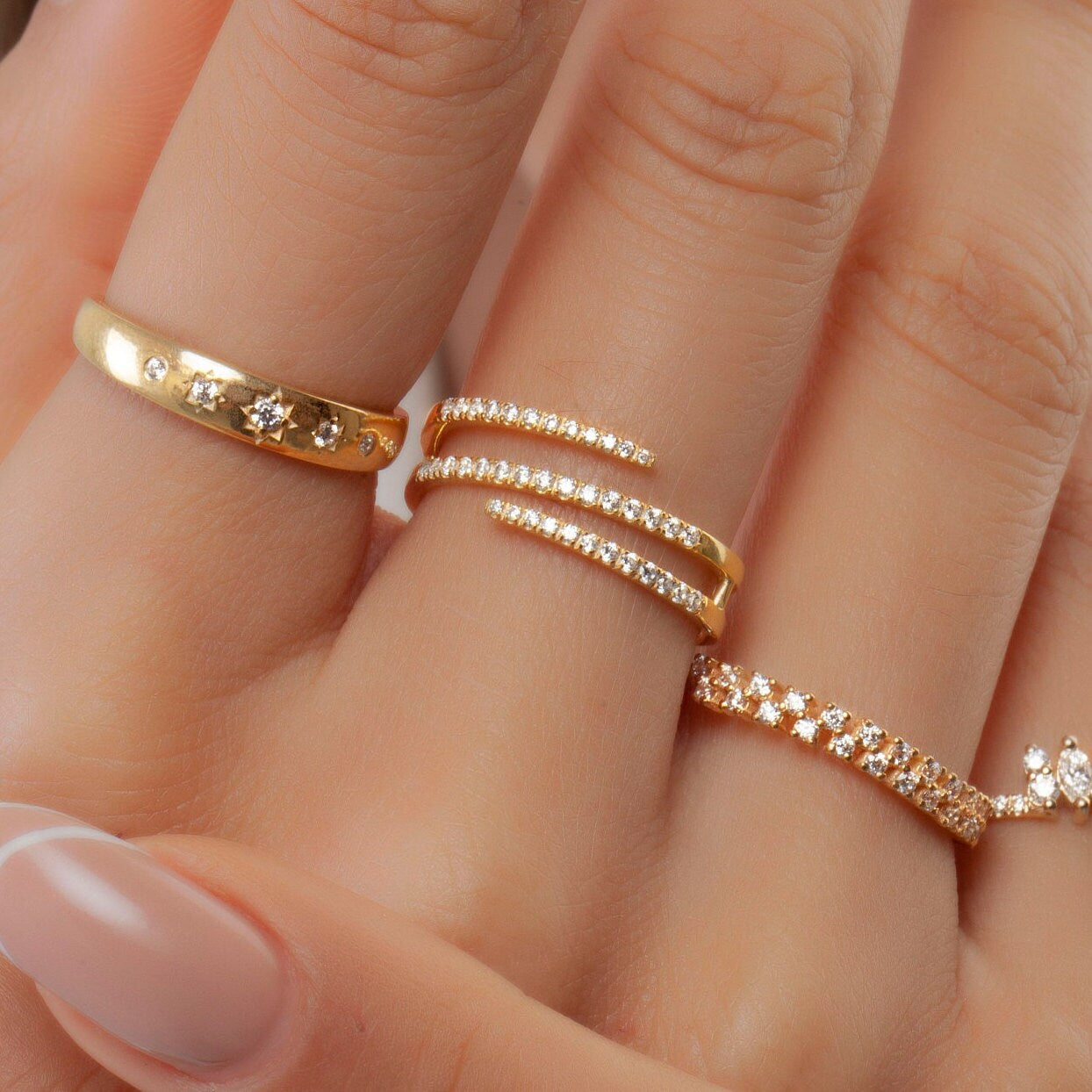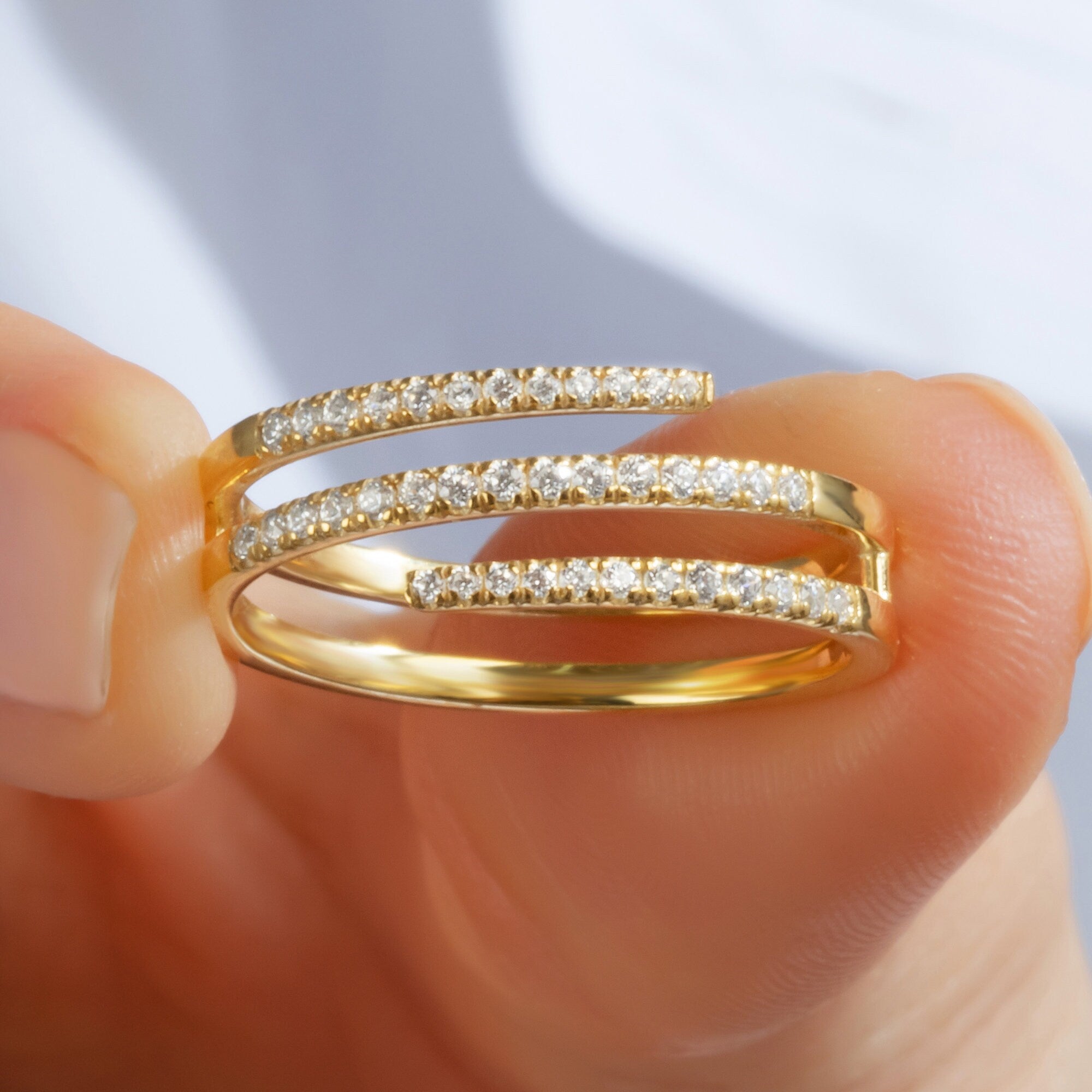 Diamond Spiral Cuff Ring / 14k Gold Spiral Diamond Cuff Ring / Anniversary Ring / Wedding Band / Stacking Ring / Bridal Gift / Birthday Gift