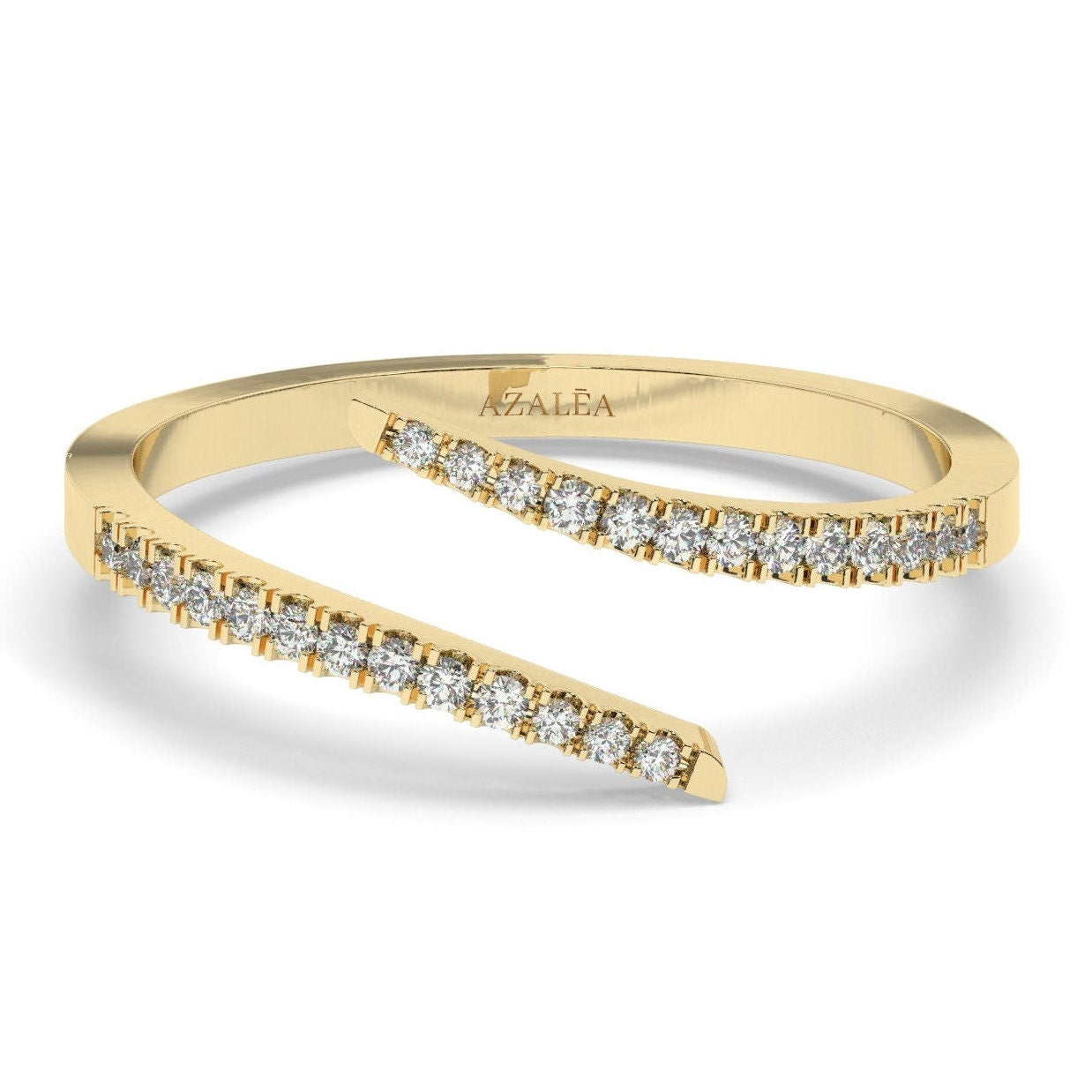 Diamond Spiral Cuff Ring / 14k Gold Spiral Diamond Cuff Ring / Anniversary Ring / Wedding Band / Stacking Ring / Bridal Gift / Birthday Gift