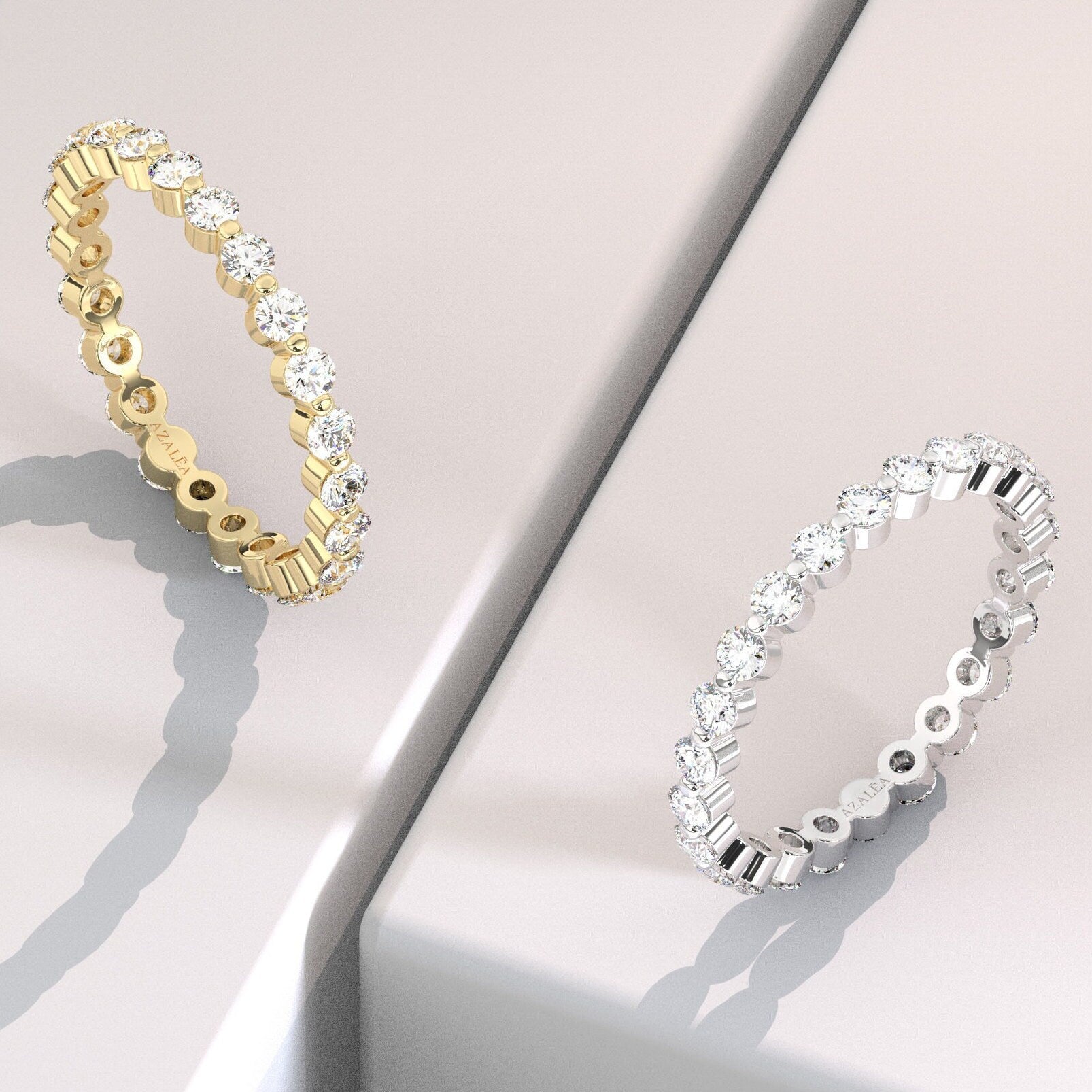 Eternity Wedding Band / 14k Gold Diamond Eternity Wedding Ring / Floating Diamond Eternity Band / Diamond Stacking Ring / Wedding Ring