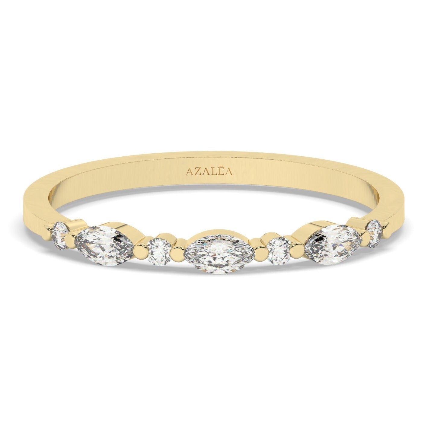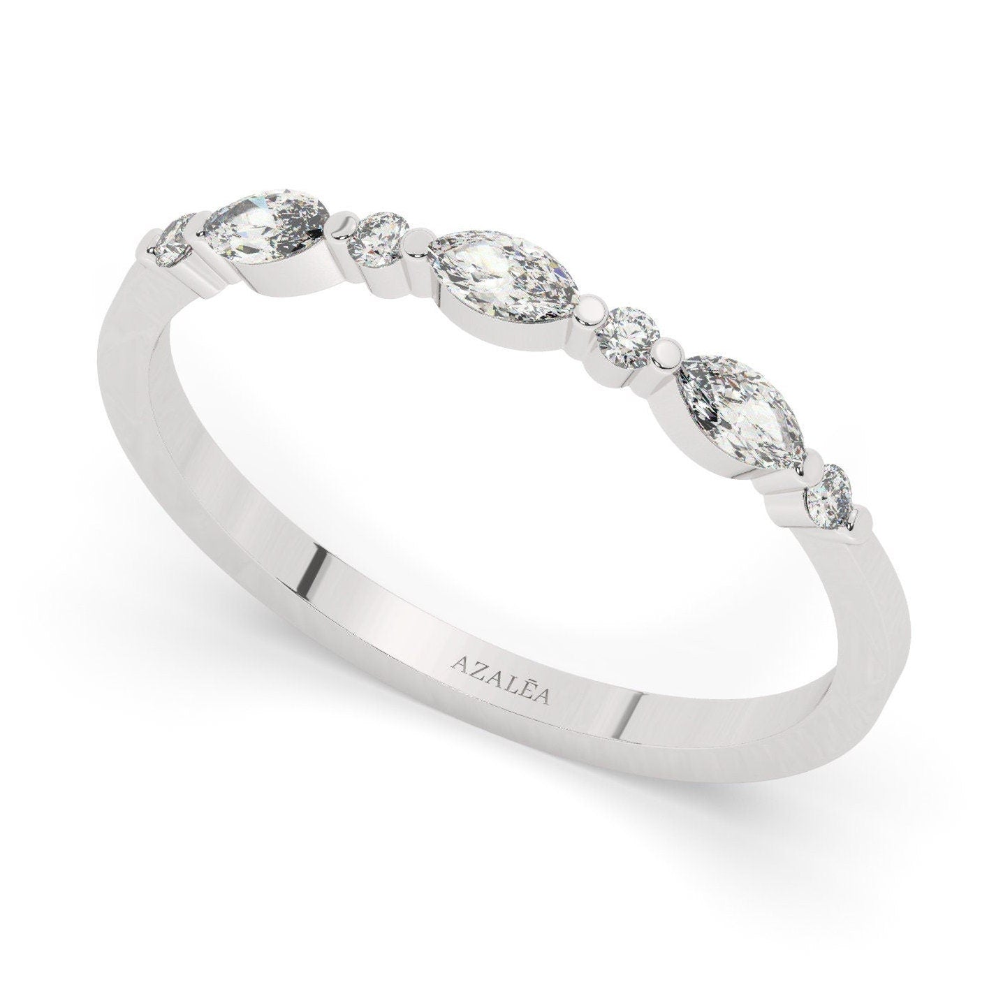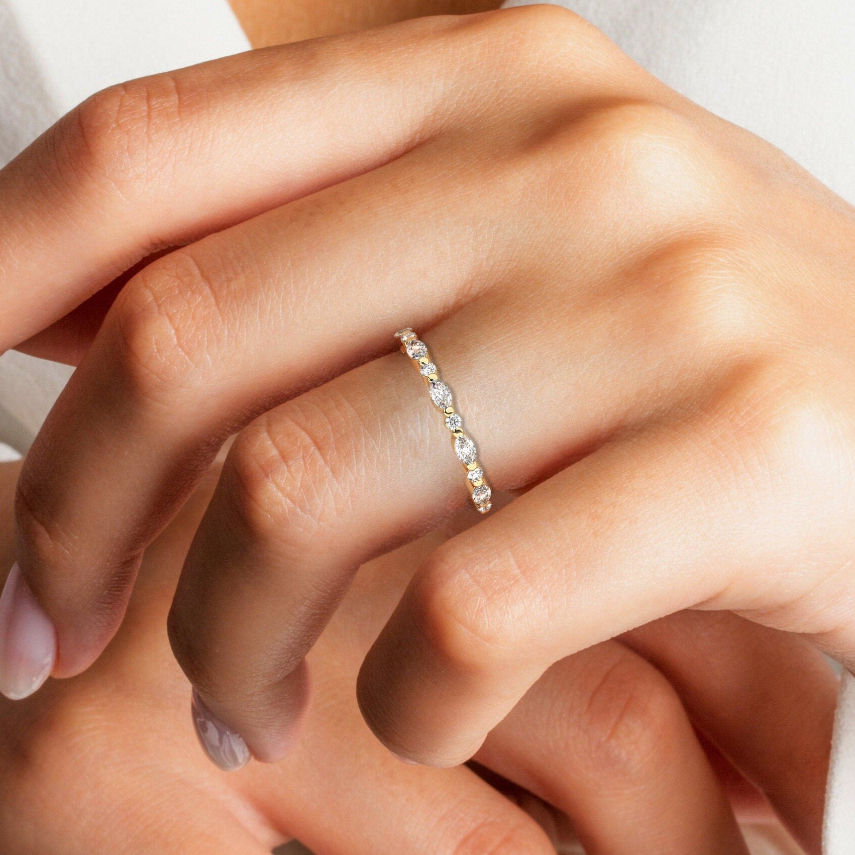 Marquise Diamond Wedding Band / 14k Marquise and Round Diamond Wedding Ring / Wedding Band / Stacking Ring / Diamond Bridal Gift Ideas
