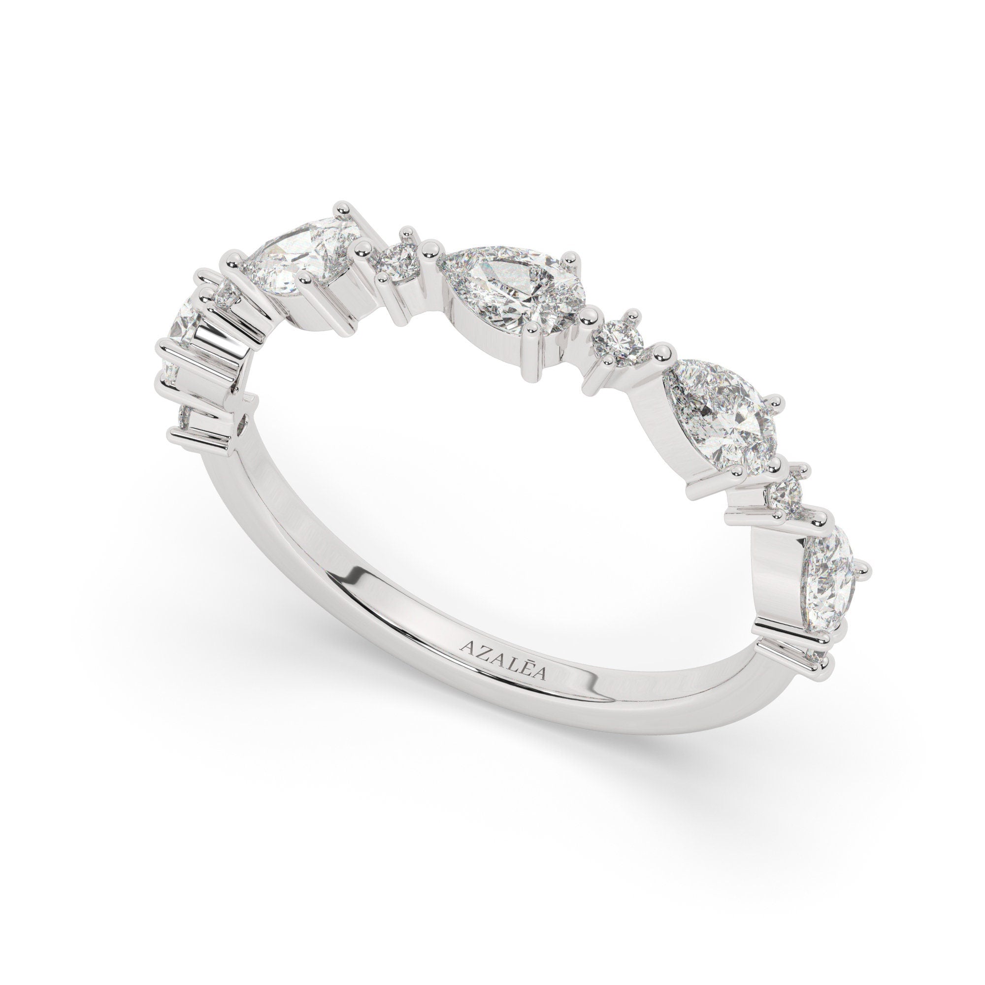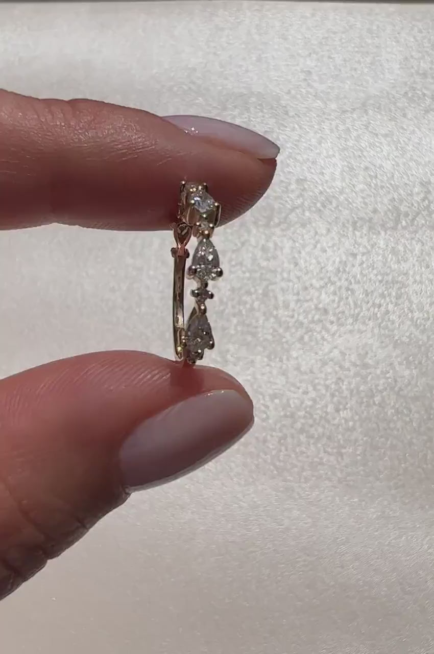 This 14k gold pear diamond wedding band has 6 round and 5 pear diamonds in the center of the band. Perfect as a stacking ring or a wedding band.
