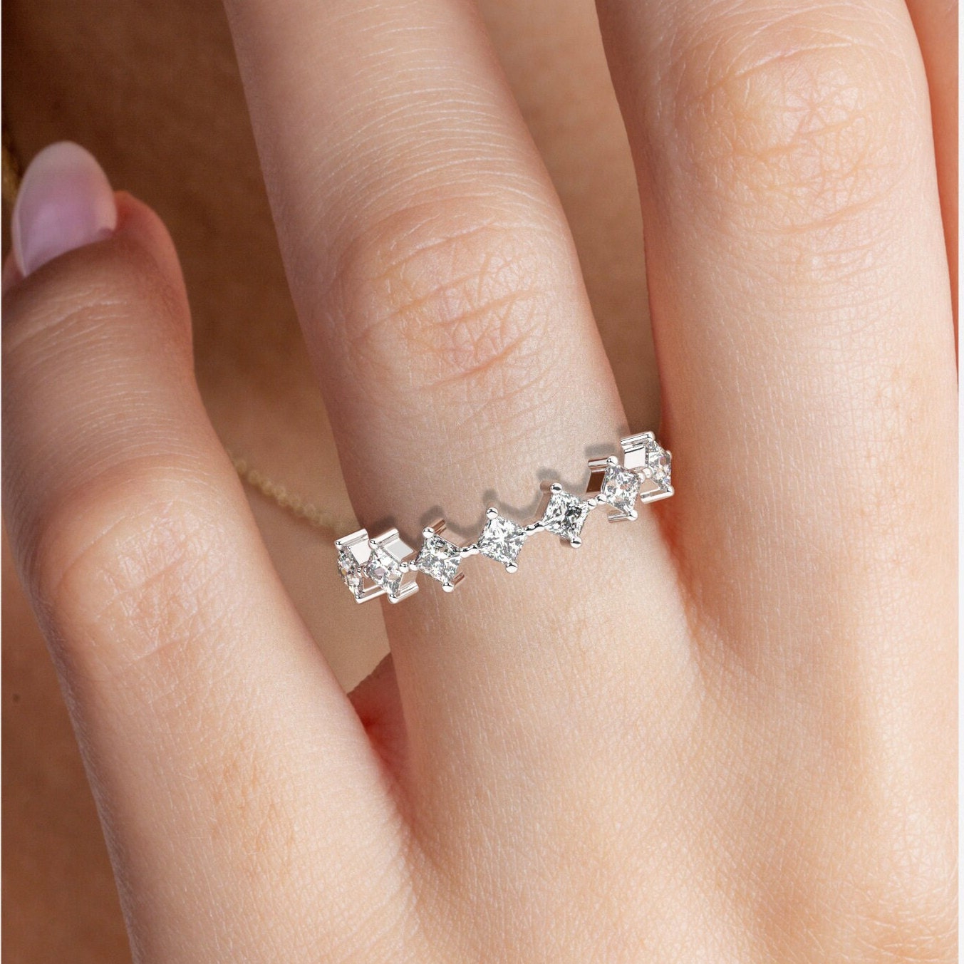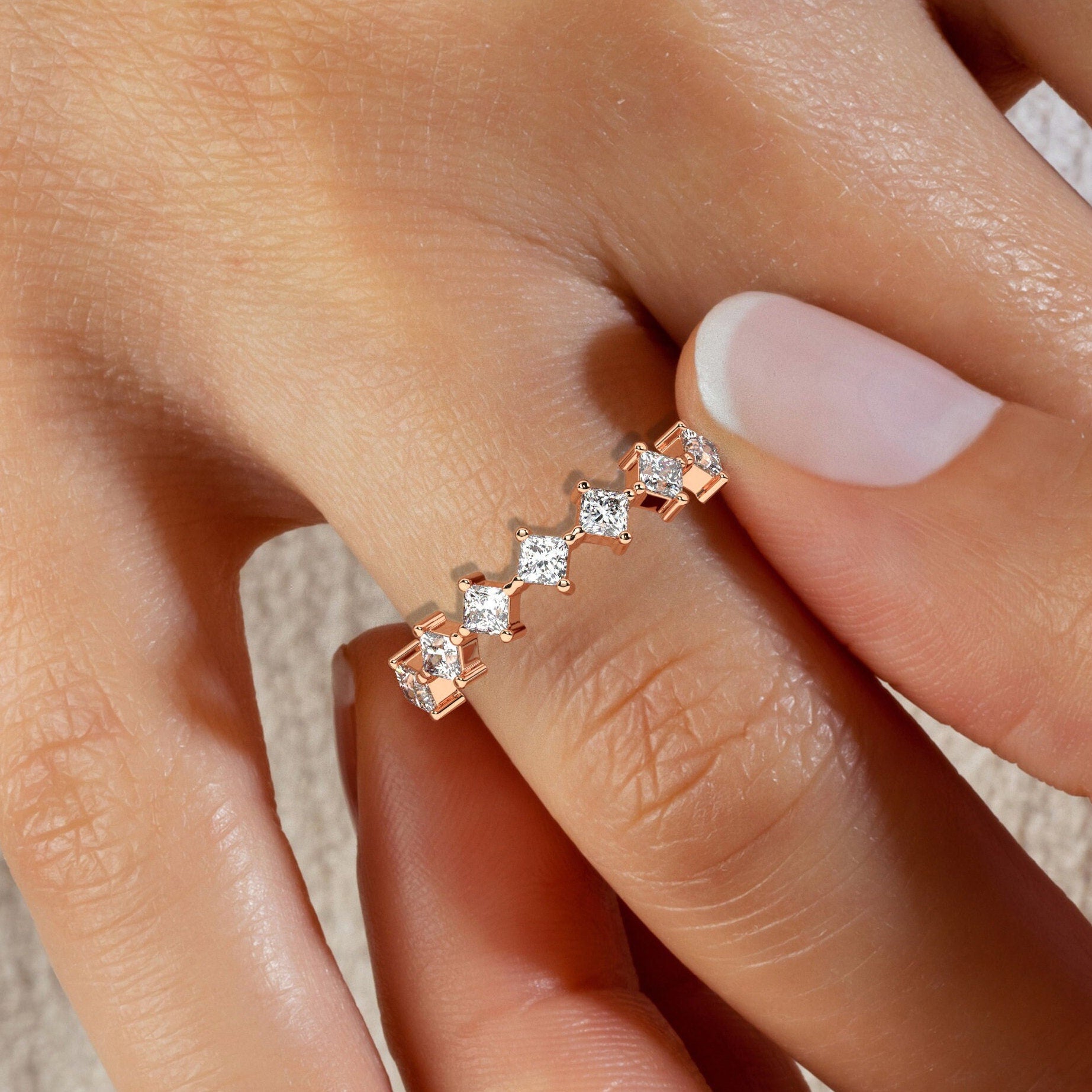 Princess Diamond Wedding Ring / 14k Princess Diamond Prong Set Stacking Ring / Diamond Wedding Band / Graduation Gift / Birthday Gift