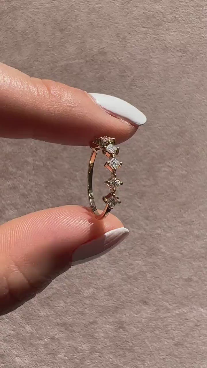 Stone: 7 princess cut natural Diamonds each weighing 0.07 cts