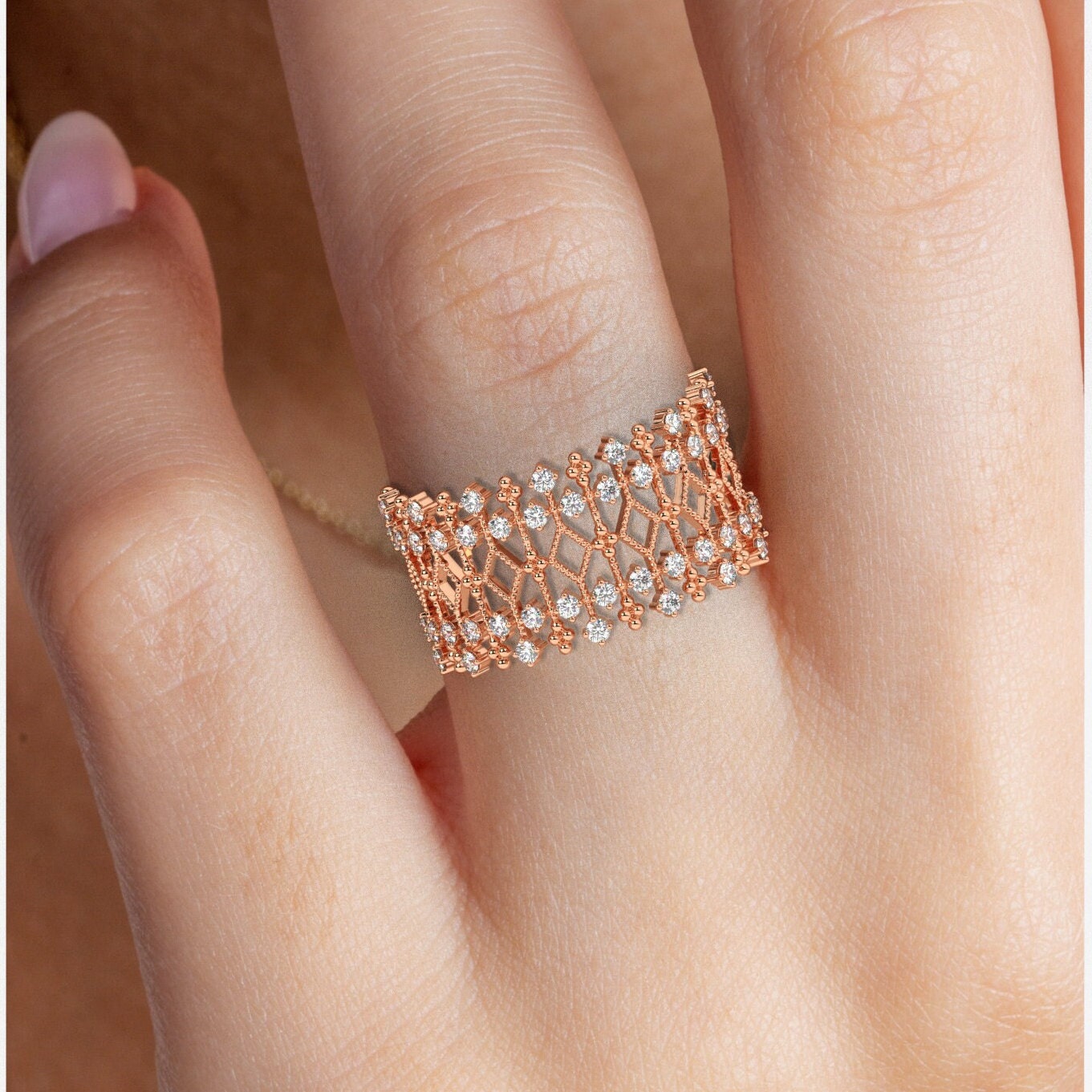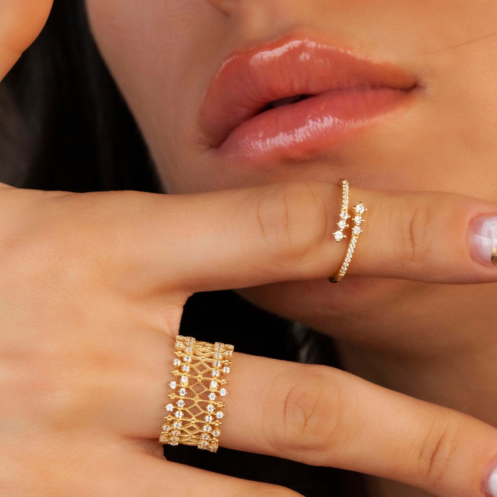 Unique Diamond Statement Ring / 14k Gold and Diamond / Stacking Ring / Diamond Bridal Gift Ideas