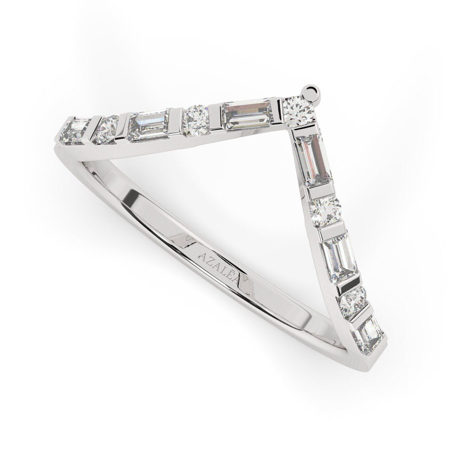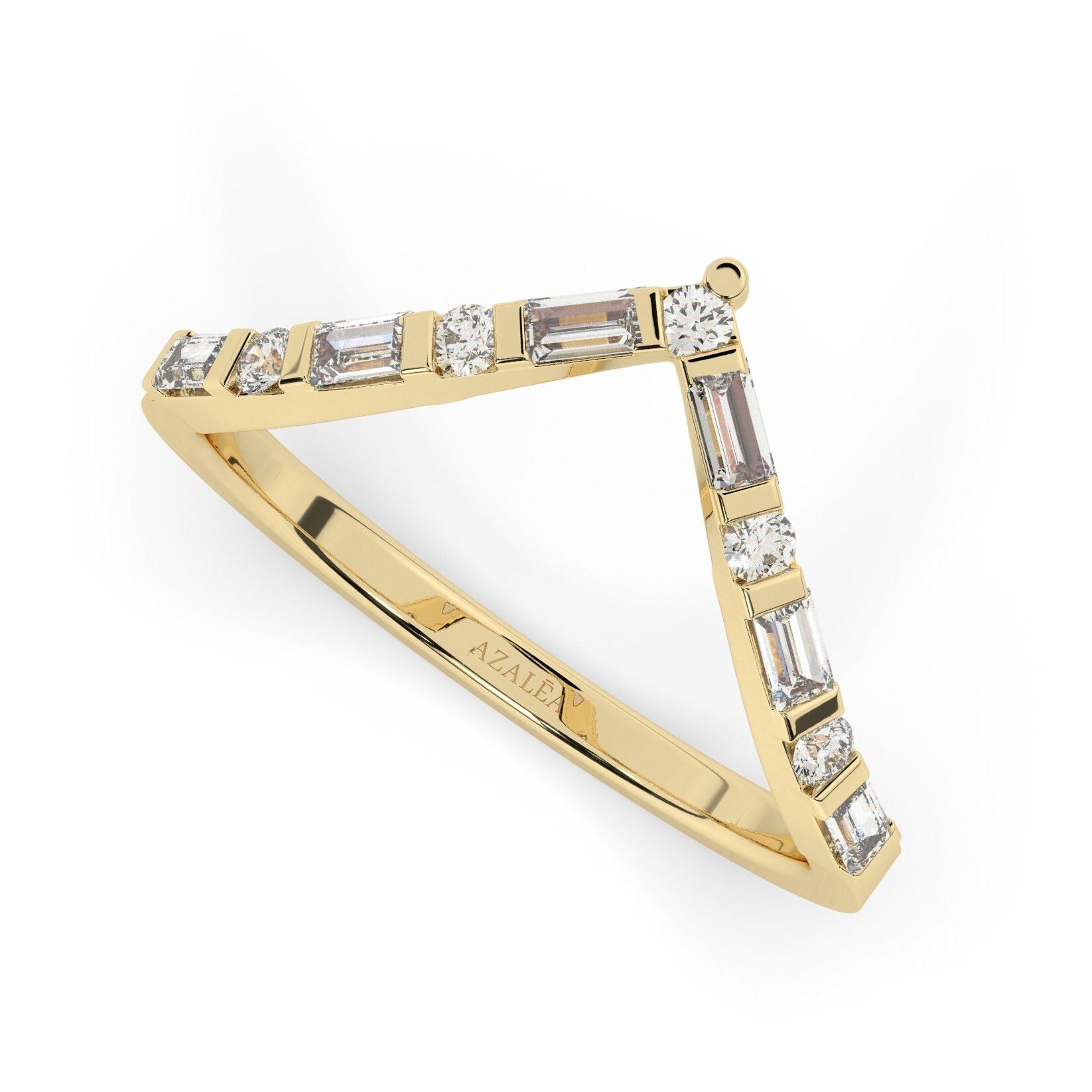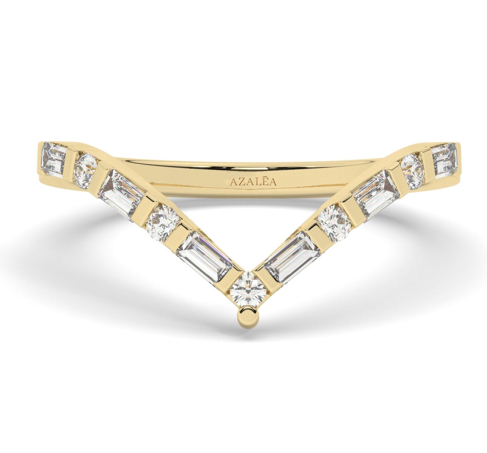 14k Gold Baguette Diamond Chevron Ring/ Curved Baguette Diamond Wedding Band / V Diamond Ring / Anniversary Promise Ring / Gift for Her
