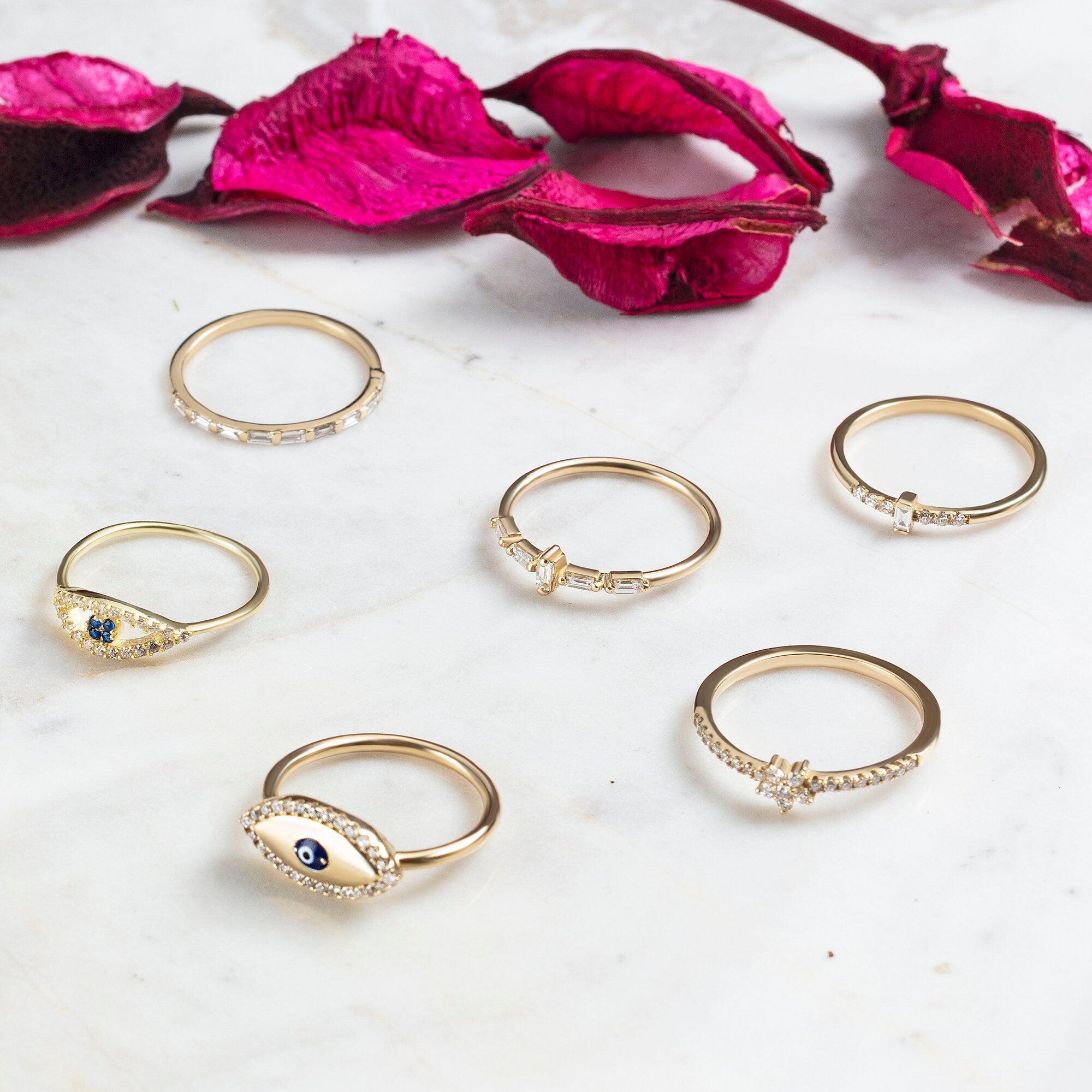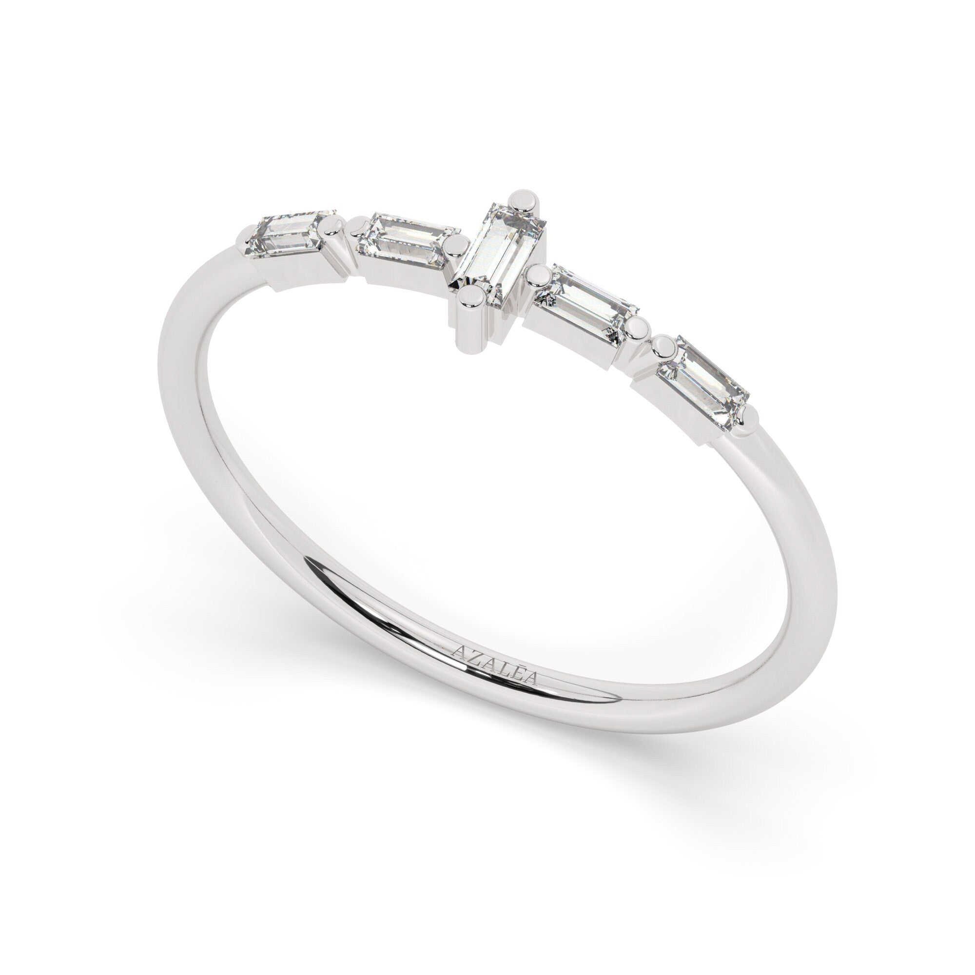 This 14k gold 0.15ct ring has 5 baguette diamonds. Looks great as a solo piece and with stacking rings.