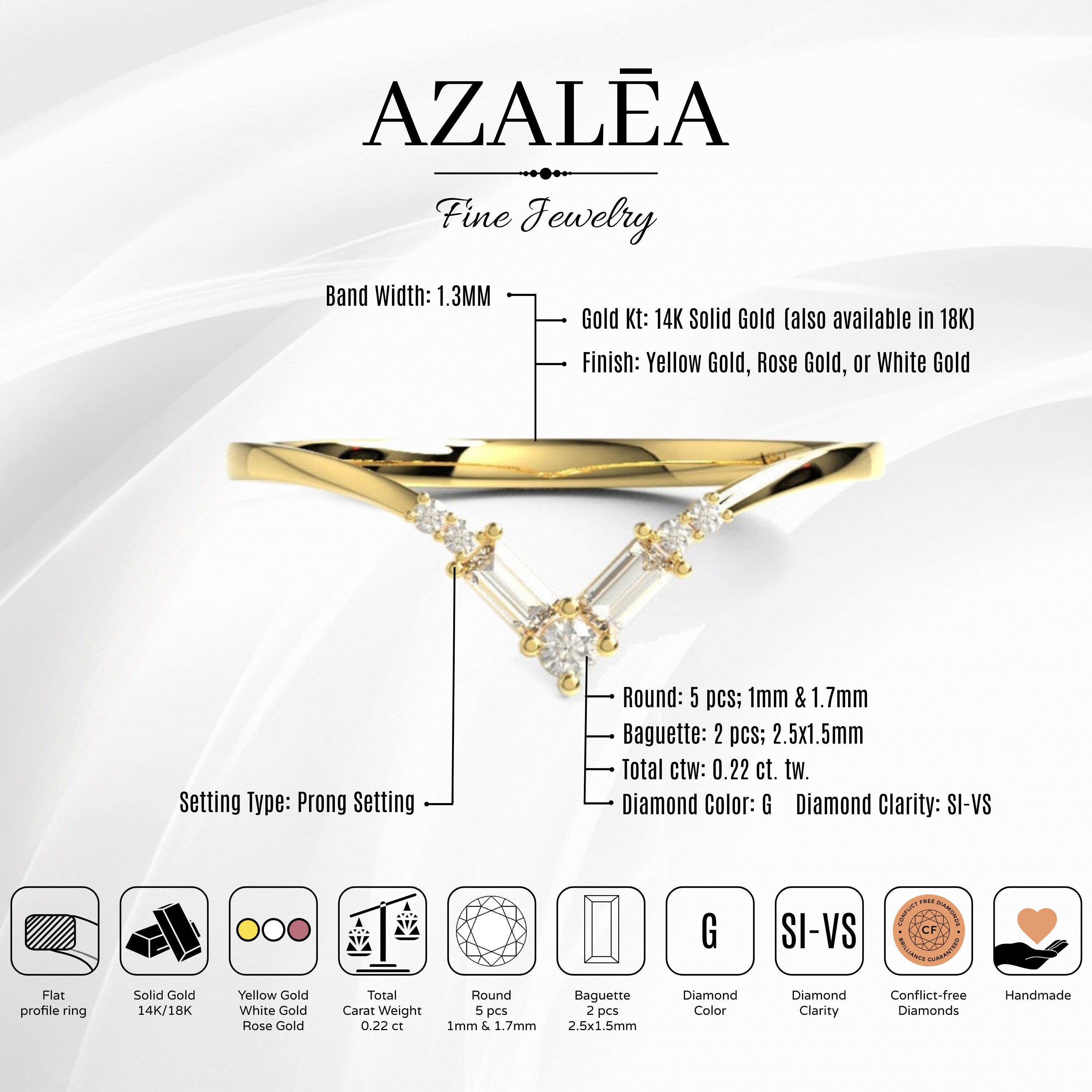 Stones: 5 Round Natural Diamonds 1mm and 1.7mm | 2 Baguette Natural Diamonds 2.5x1.5mm