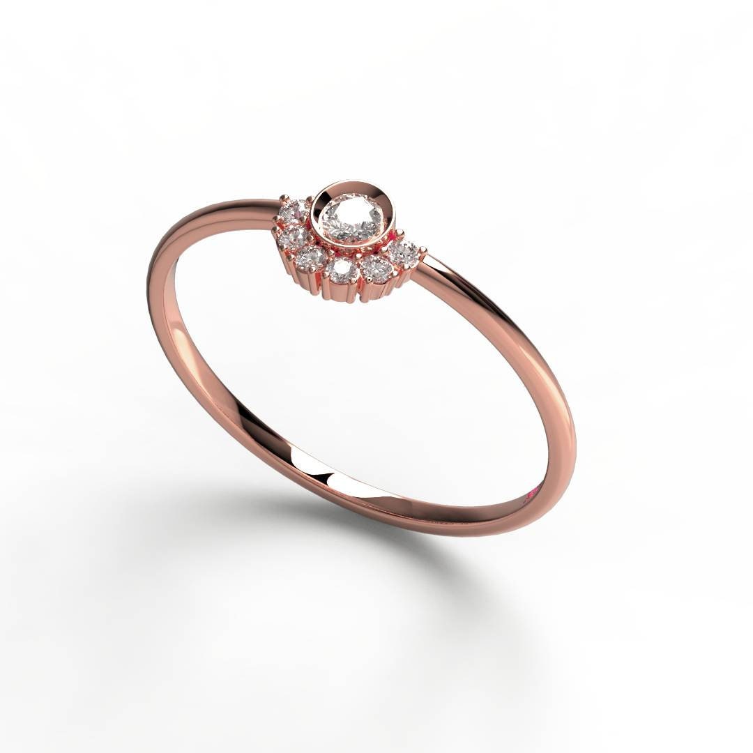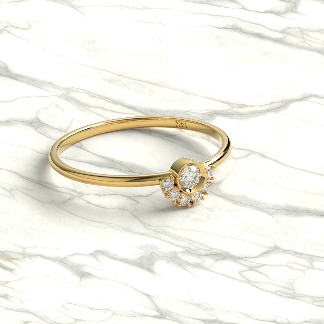 14k Gold Bezel Round Diamond Wedding Band/ Stacking Ring / Engagement Ring/ Crown Diamond Ring / Birthday Anniversary Gift for Her